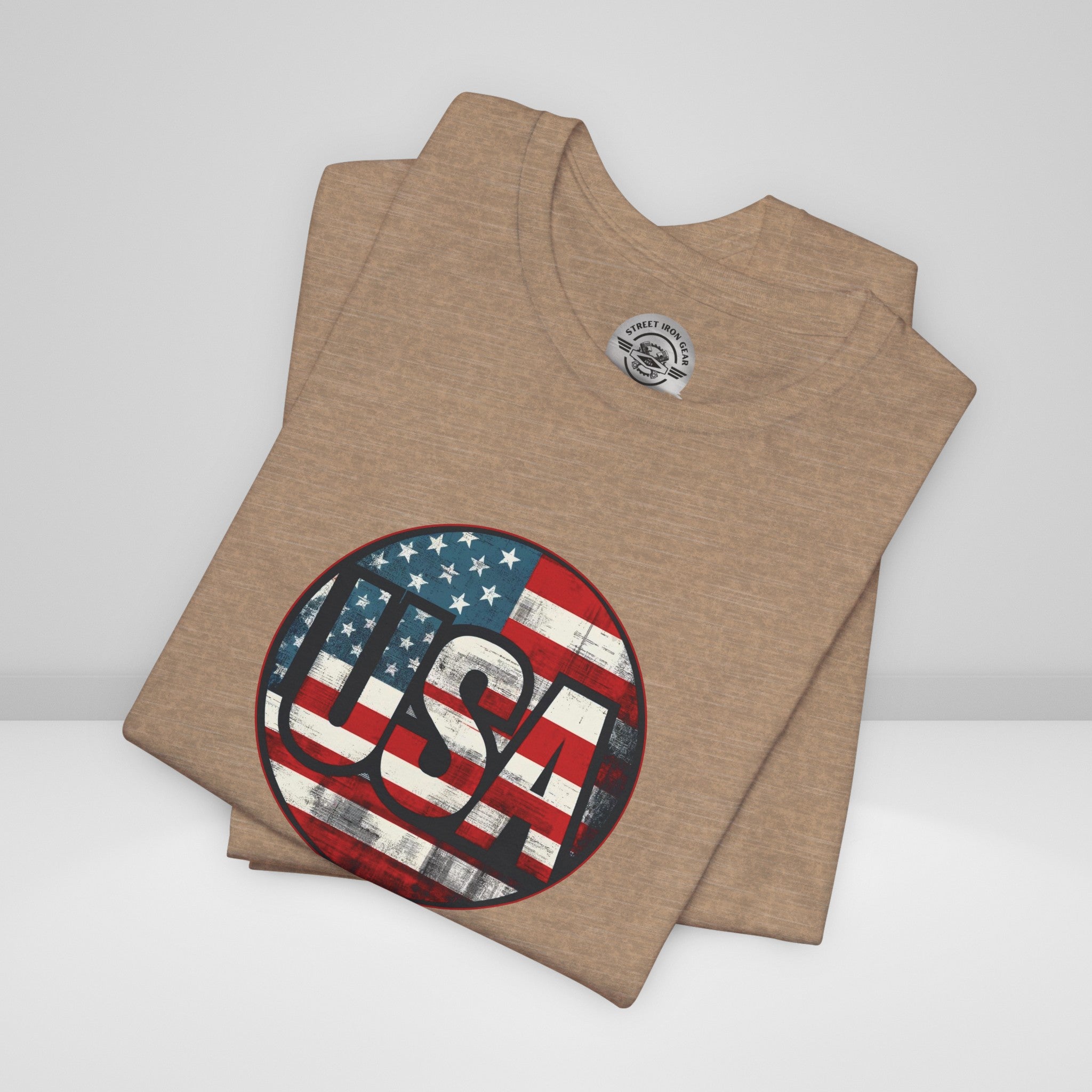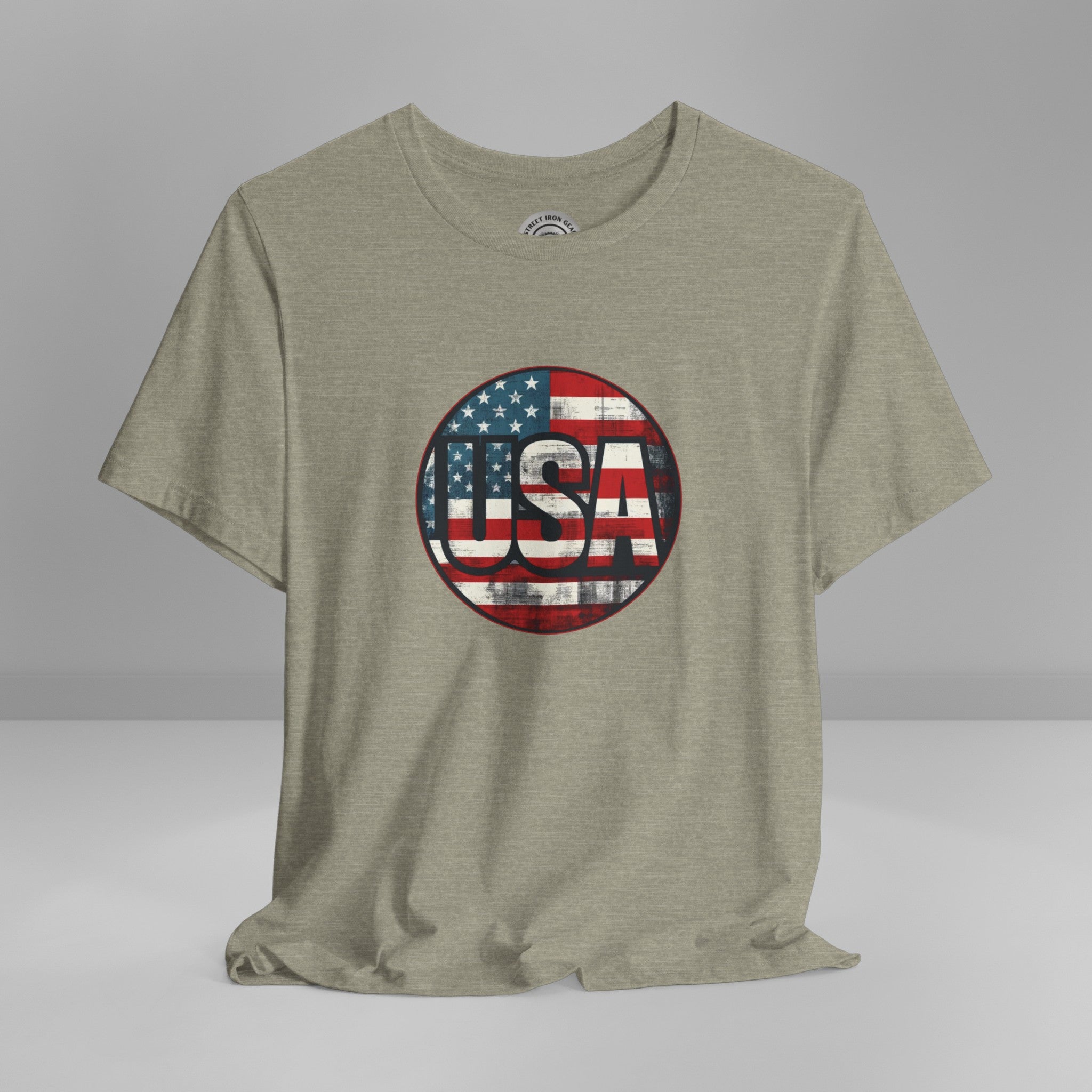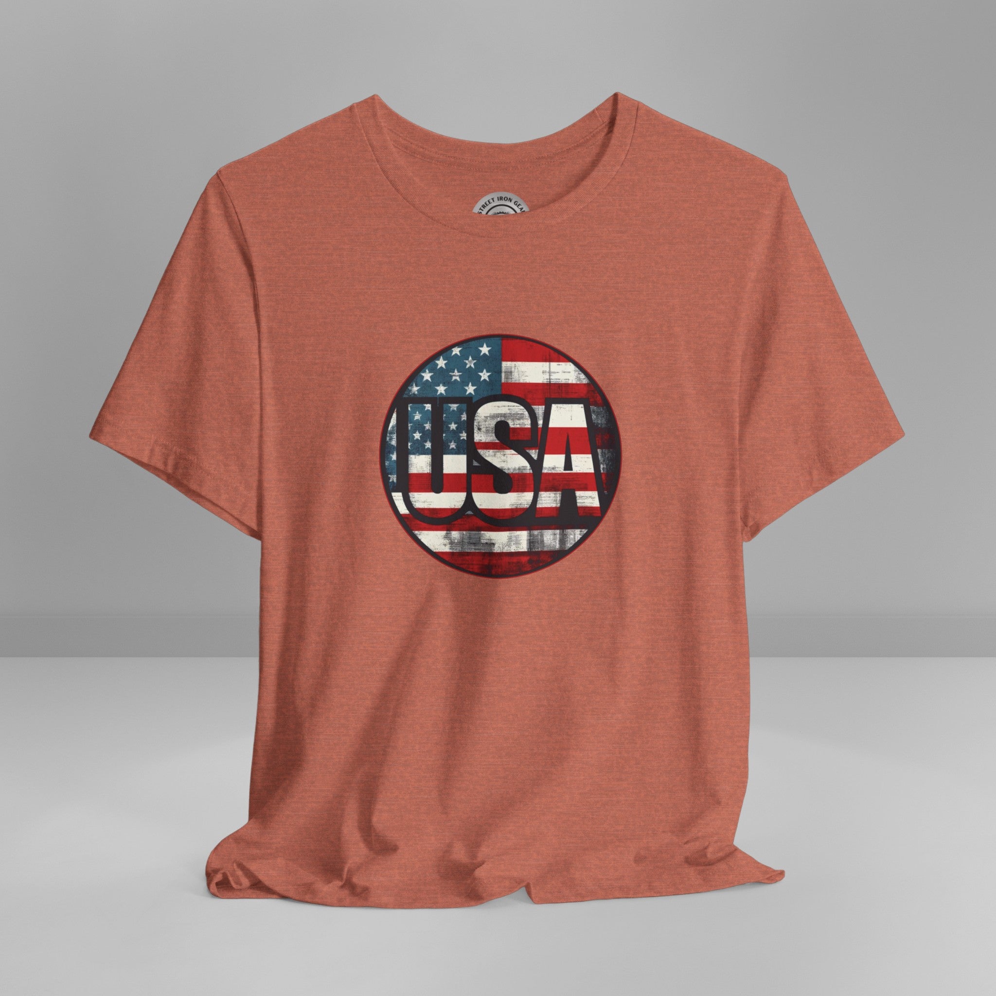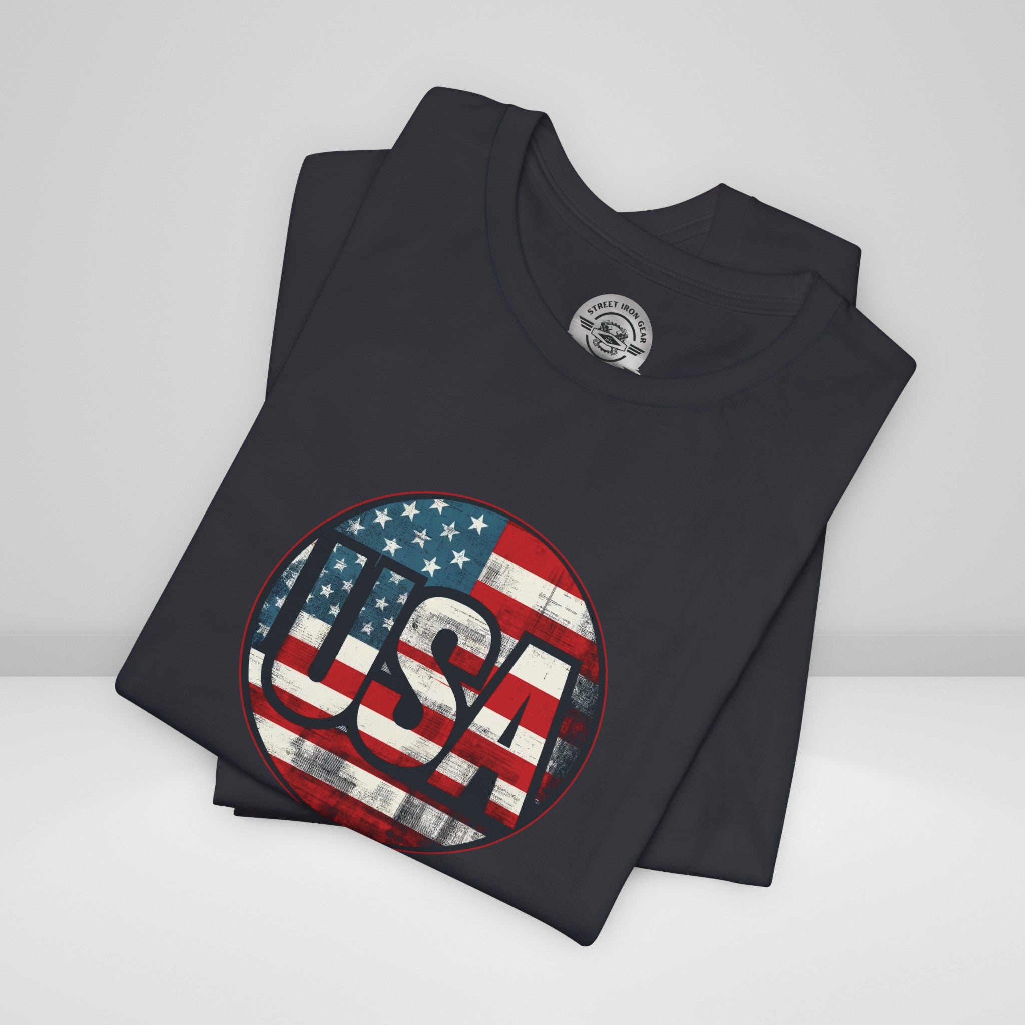 Show your unwavering support with our "American Patriot" T-shirt! This tee proudly features a grunge style American Flag with the bold statement 'USA' making this T-shirt a stylish choice for a true American patriot.