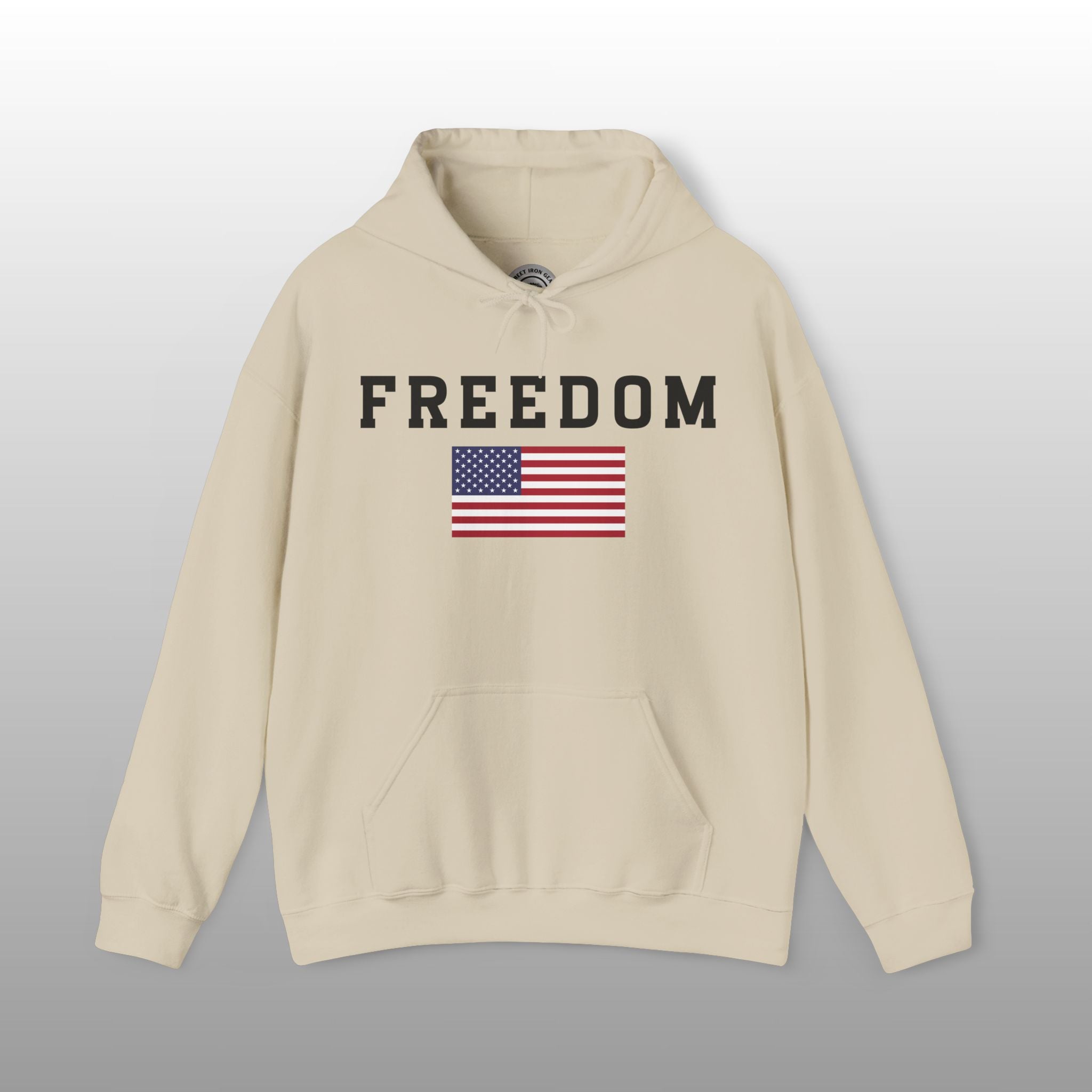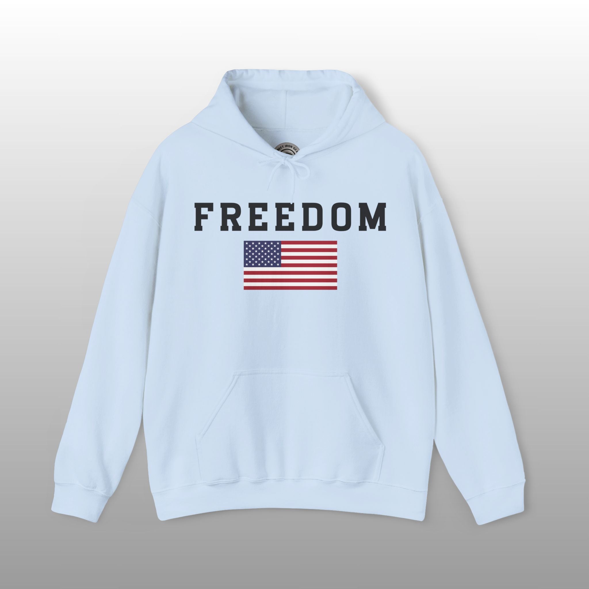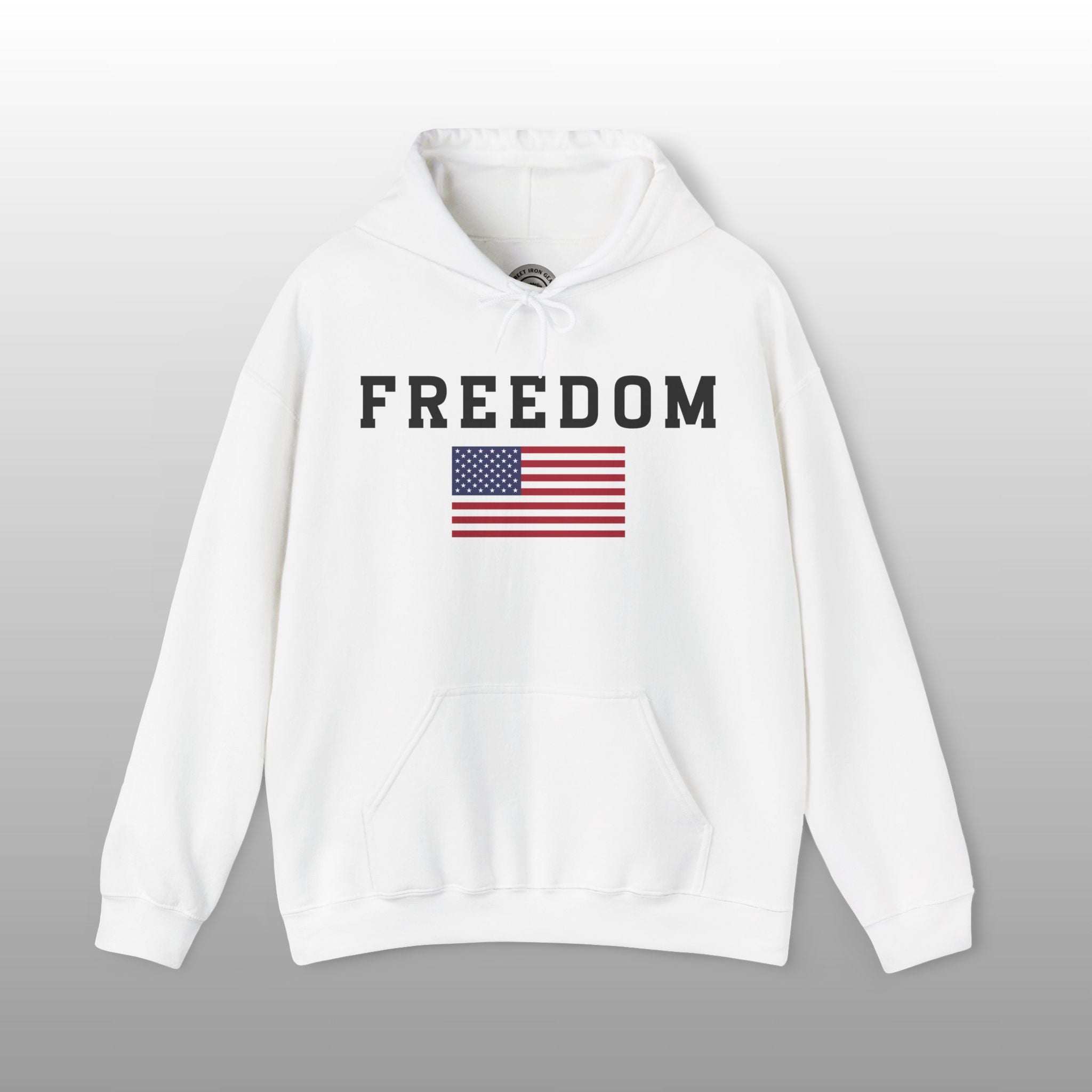 Show your deep American pride with this simple yet powerful hooded pullover sweatshirt, designed for those who value liberty above all else. This ultra-comfortable patriotic hoodie features the bold, unmistakable word "FREEDOM" spelled out in large block letters across the chest, with a classic representation of the US Flag centered right below it. Made from a warm, high-quality fleece, this pullover is perfect for layering on cooler days, celebrating national holidays like the Fourth of July and Veterans Day, or simply making a statement every day. It's an ideal unisex patriotic gift for men and women who are proud American patriots and want to wear their values on their sleeve, making it a highly searchable piece of USA apparel and pro-America clothing.