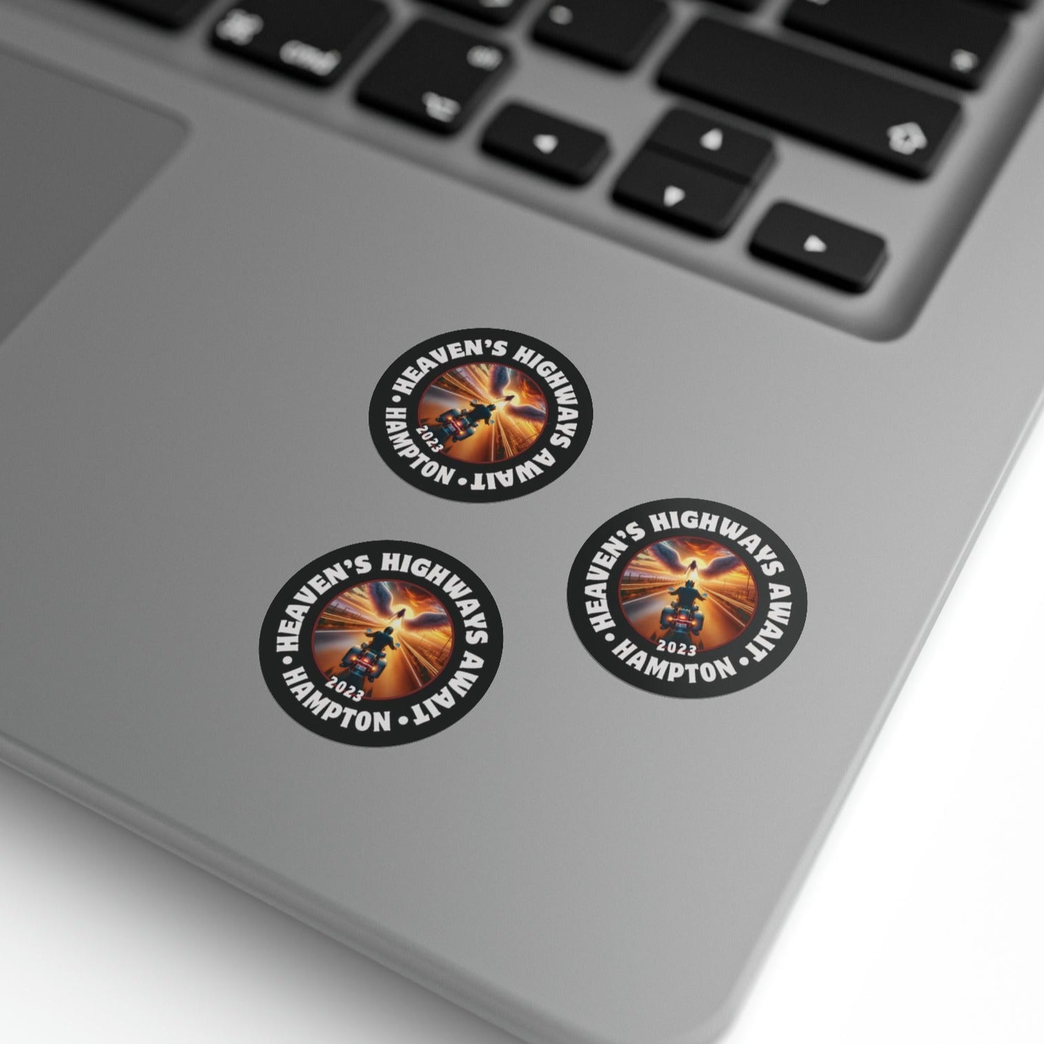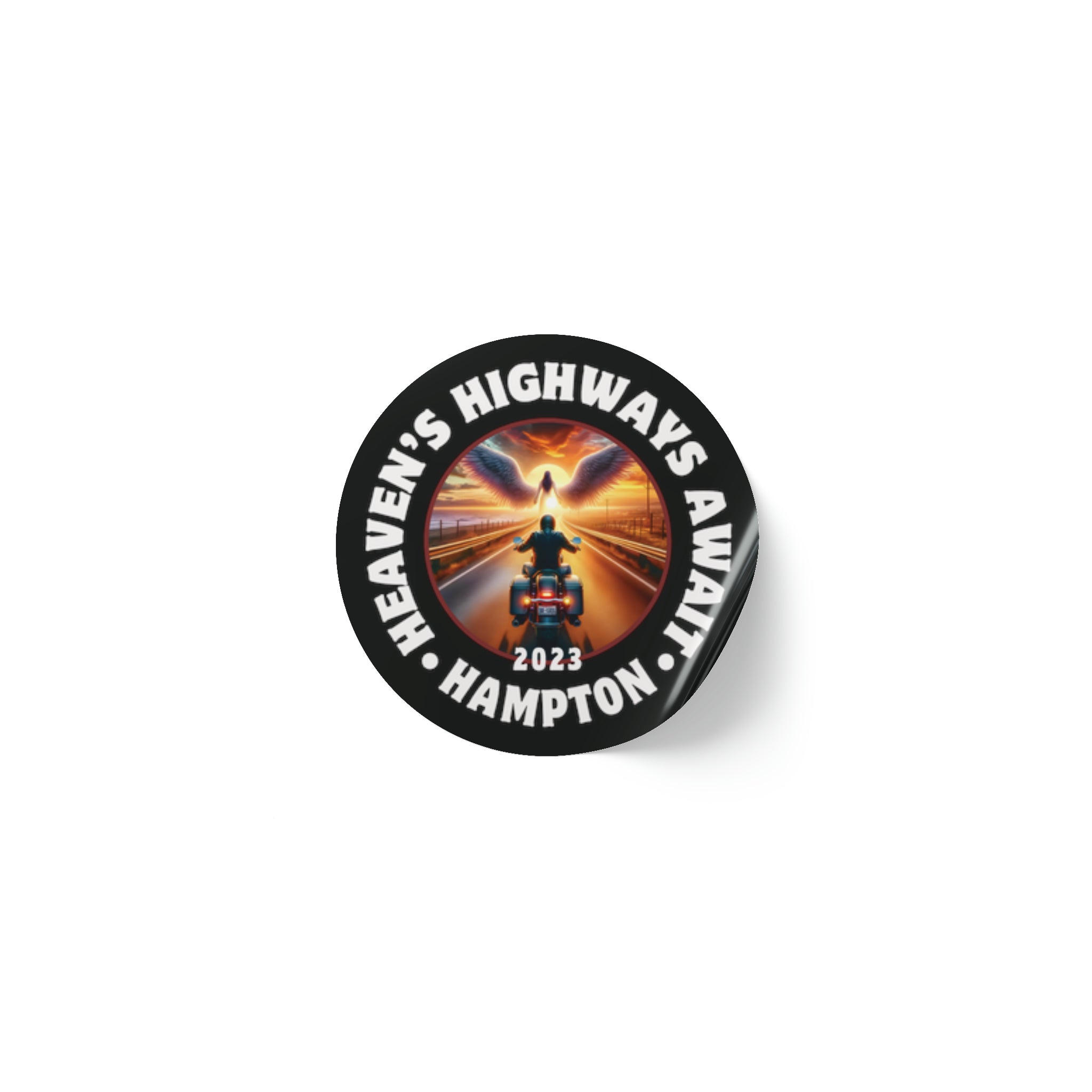 This custom-designed sticker /decal roll, perfect for biker memorials or poker run events, showcasing a biker riding his cruiser into the sunset towards an angel, symbolizing freedom and remembrance. It offers personalization with areas for a bespoke quote, the recipients' names, and an important date, making each piece a unique and meaningful tribute. Ideal for motorcycle clubs aiming to resell at large gatherings, this magnetic bottle opener serves as a significant fundraising item, providing a way to support impacted families while commemorating the spirit of the ride and the bonds within the biker community.