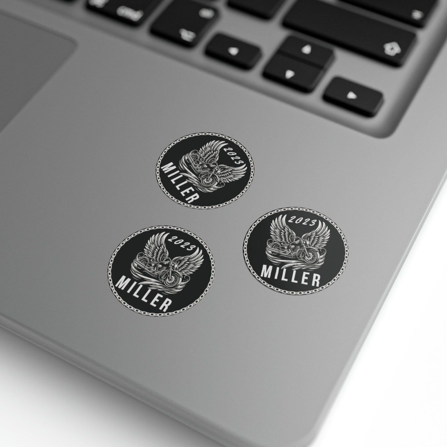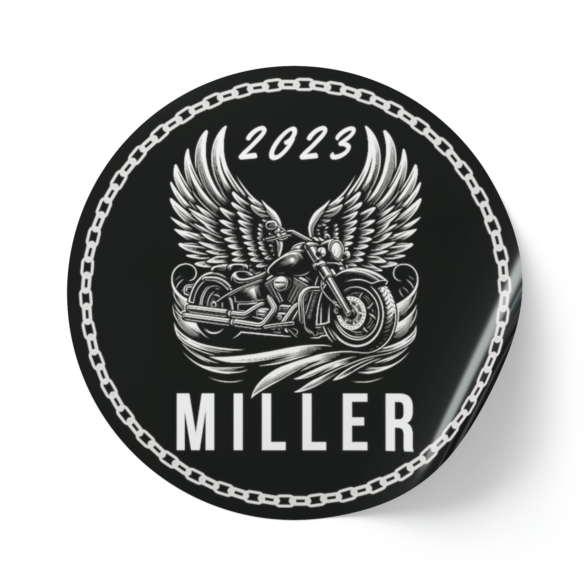 This custom-designed sticker /decal roll, perfect for biker memorials or poker run events, features an elegant black and white graphic of a traditional cruiser motorcycle embraced by angel wings, symbolizing freedom and remembrance. It offers personalization with areas for a bespoke quote, the recipients' names, and an important date, making each piece a unique and meaningful tribute. Ideal for motorcycle clubs aiming to resell at large gatherings, this magnetic bottle opener serves as a significant fundraising item, providing a way to support impacted families while commemorating the spirit of the ride and the bonds within the biker community.