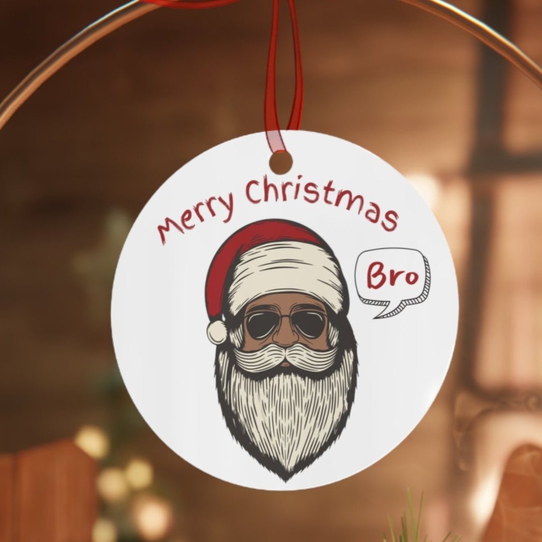 Add a touch of fun and vintage charm to your holiday decor with our custom-designed Christmas ornament featuring Santa wearing sunglasses and the playful text, "Merry Christmas Bro." Perfect for bringing a cool, retro vibe to your Christmas tree, this ornament makes a great gift for friends, family, or any holiday enthusiast who loves a twist on classic Christmas decor. Crafted with care, this unique ornament will become a favorite piece for years to come.