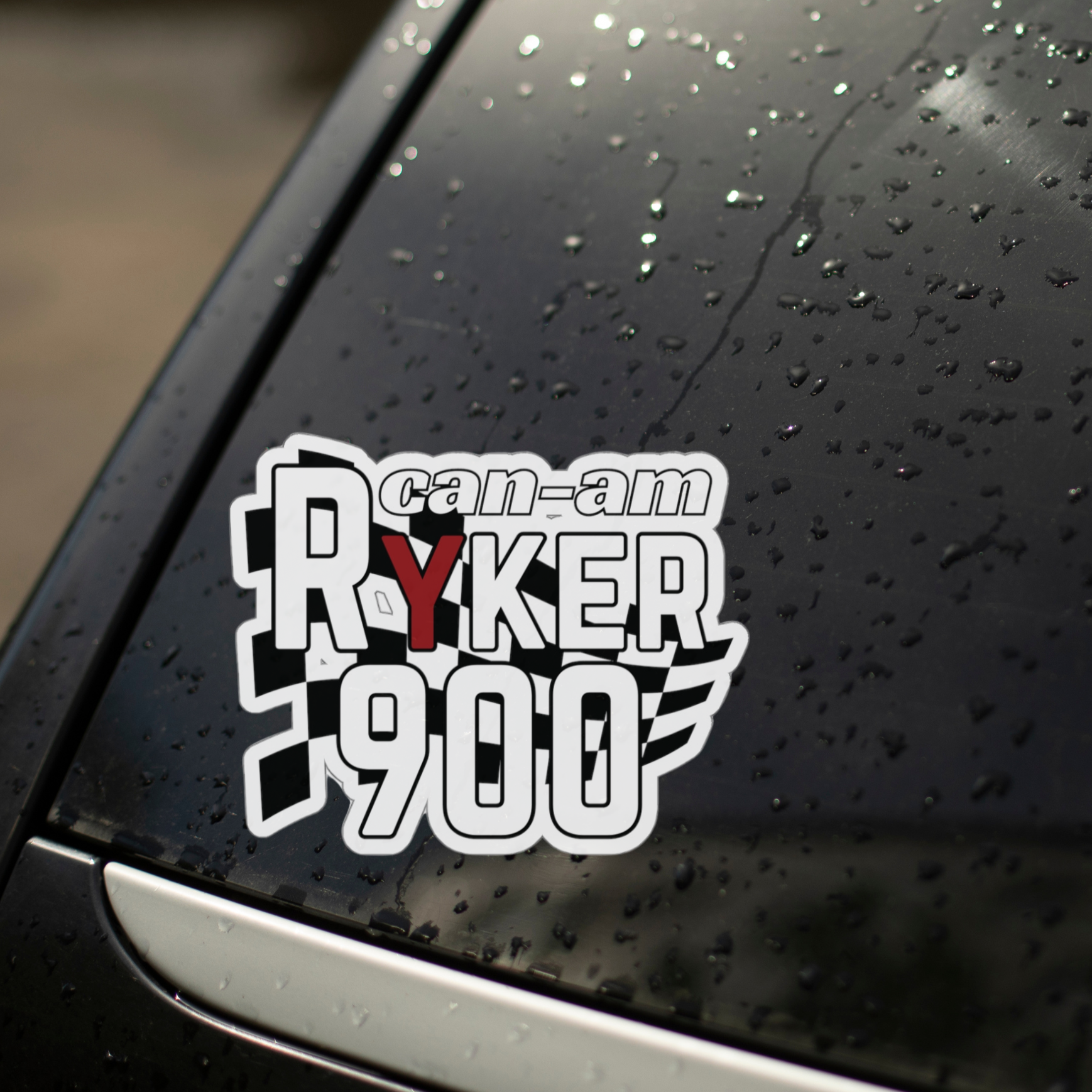Show off your passion with our Can-Am Ryker motorcycle-themed kiss cut decal featuring "Can-Am Ryker 900" and a rally flag in the background. Available in several sizes, this versatile decal is perfect for creative applications on your helmet, motorcycle fender, or car window. Enhance your ride with this high-quality decal, designed to attract attention and celebrate your love for the Can-Am Ryker 900.