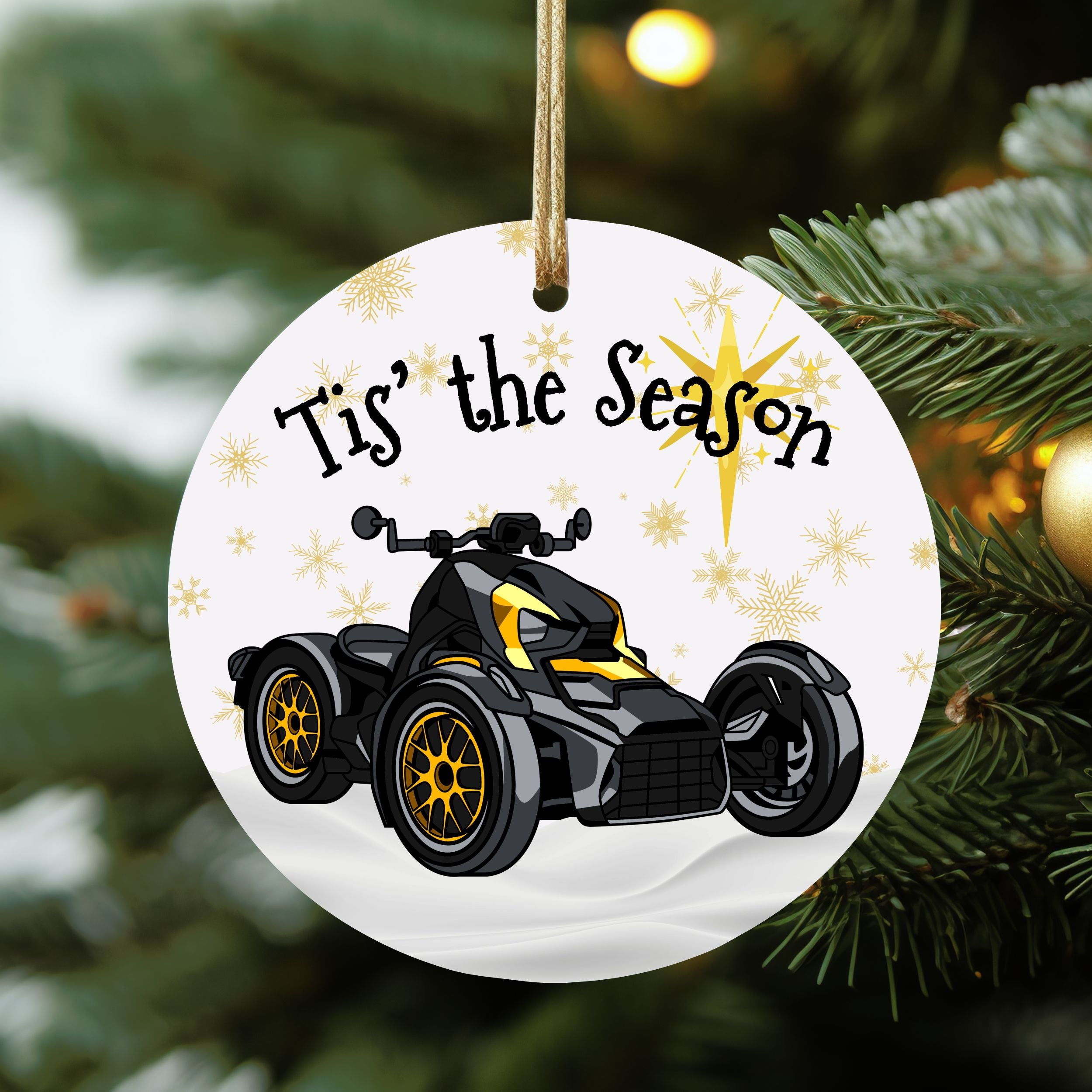Celebrate the season with our unique Can-Am Ryker Christmas ornament, featuring the sleek Black and Yellow ST model and the festive phrase "Tis' the Season." Perfect for Can-Am enthusiasts, this ornament adds a personalized touch of adventure to your holiday decor. Crafted with attention to detail, it makes a fantastic gift or collectible keepsake for Ryker riders who want to bring their passion to the tree.