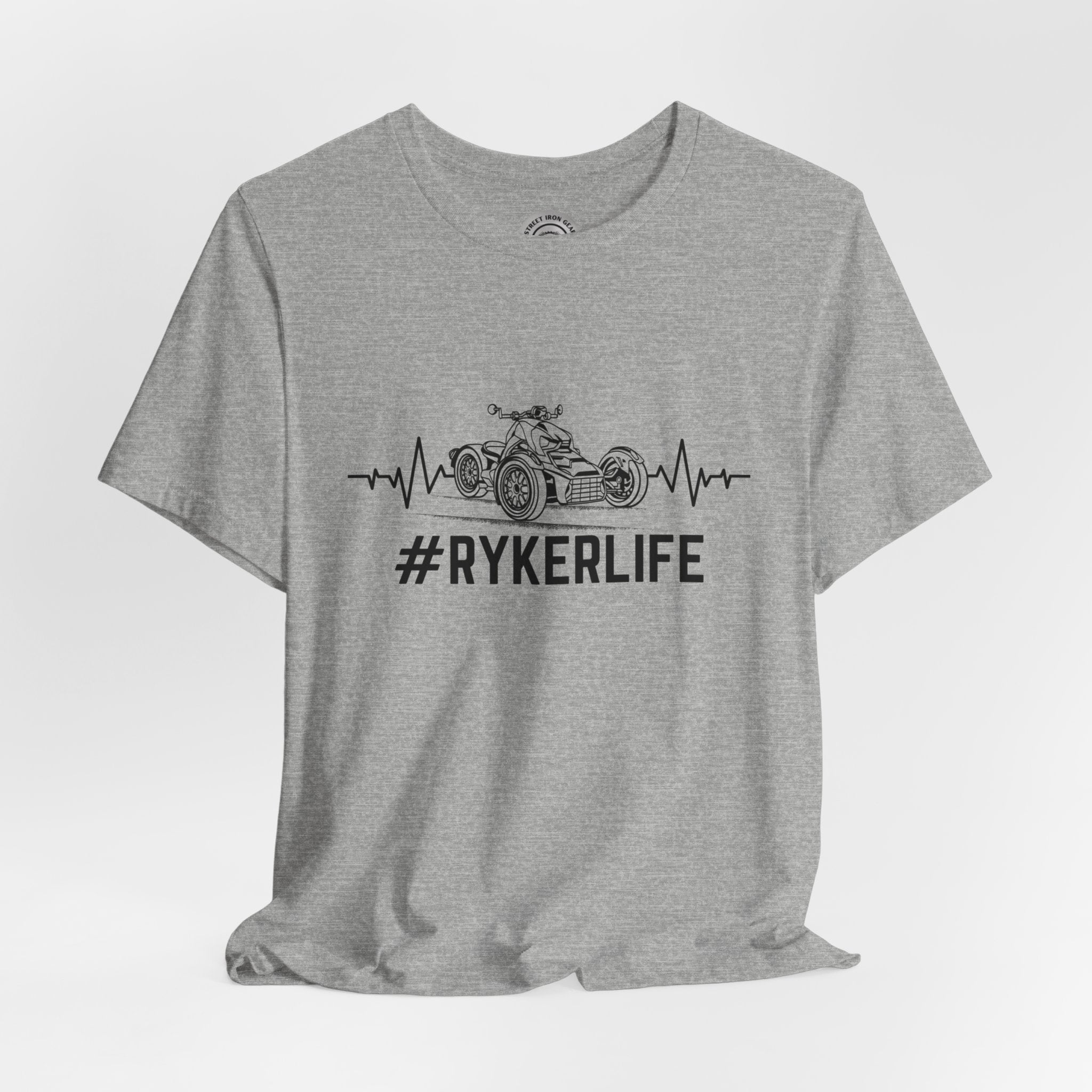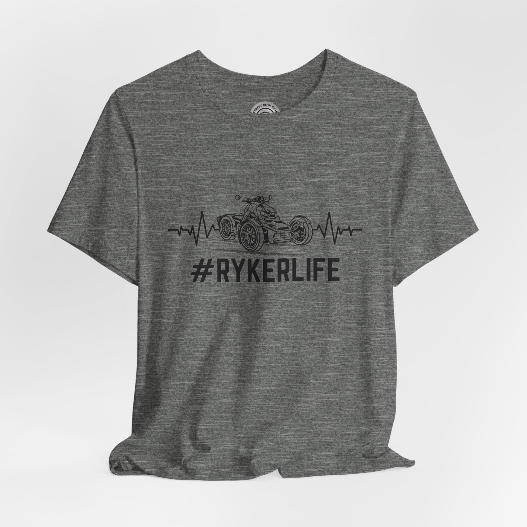 Celebrate your passion with the Can-Am Ryker Culture T-Shirt, featuring a bold '#RYKERLIFE' and a striking Can-Am Ryker graphic intertwined with a life line. Perfect for riders and enthusiasts, this high-quality tee captures the spirit of adventure and the thrill of the open road. Wear your love for the Can-Am Ryker proudly and join the community of dedicated riders who live life to the fullest.