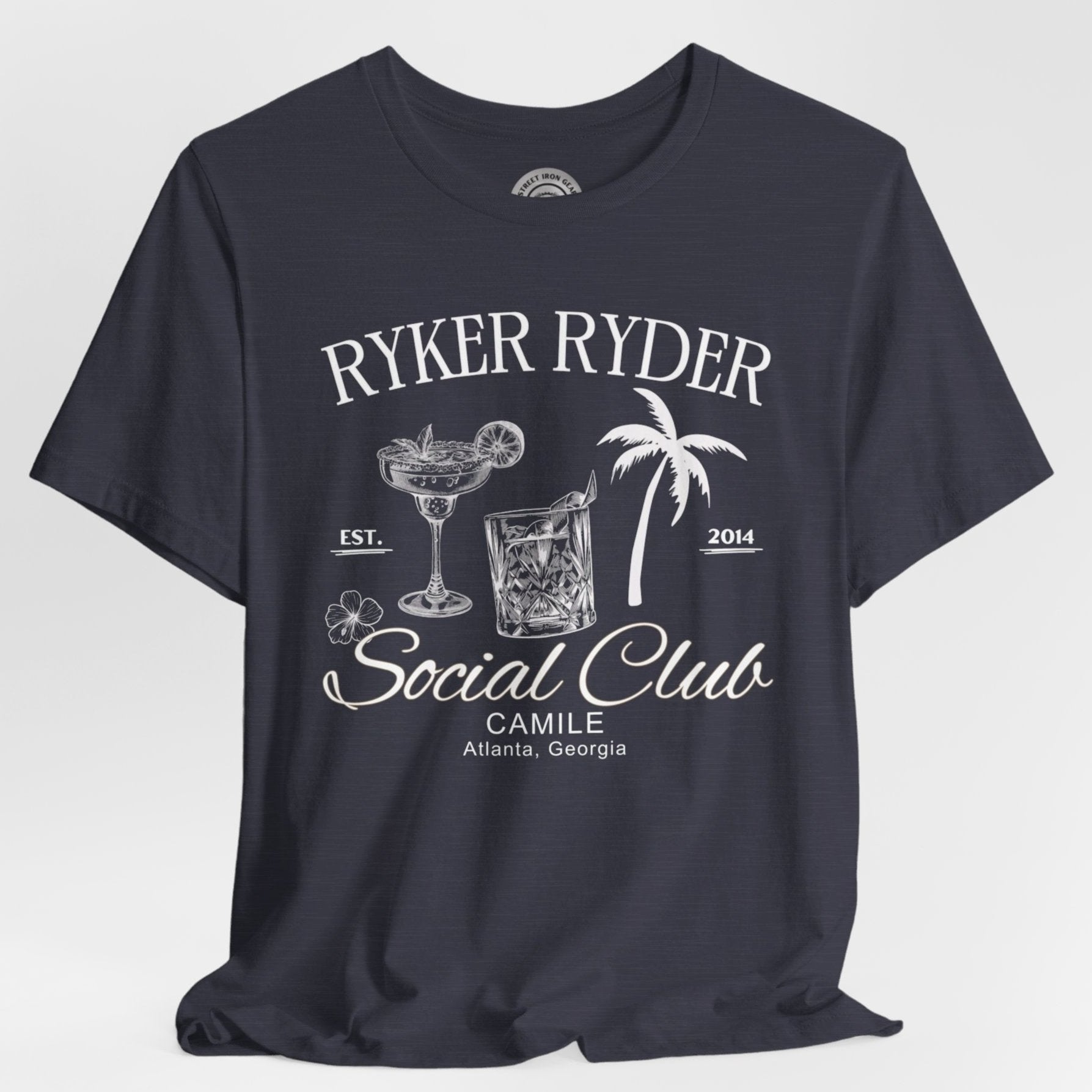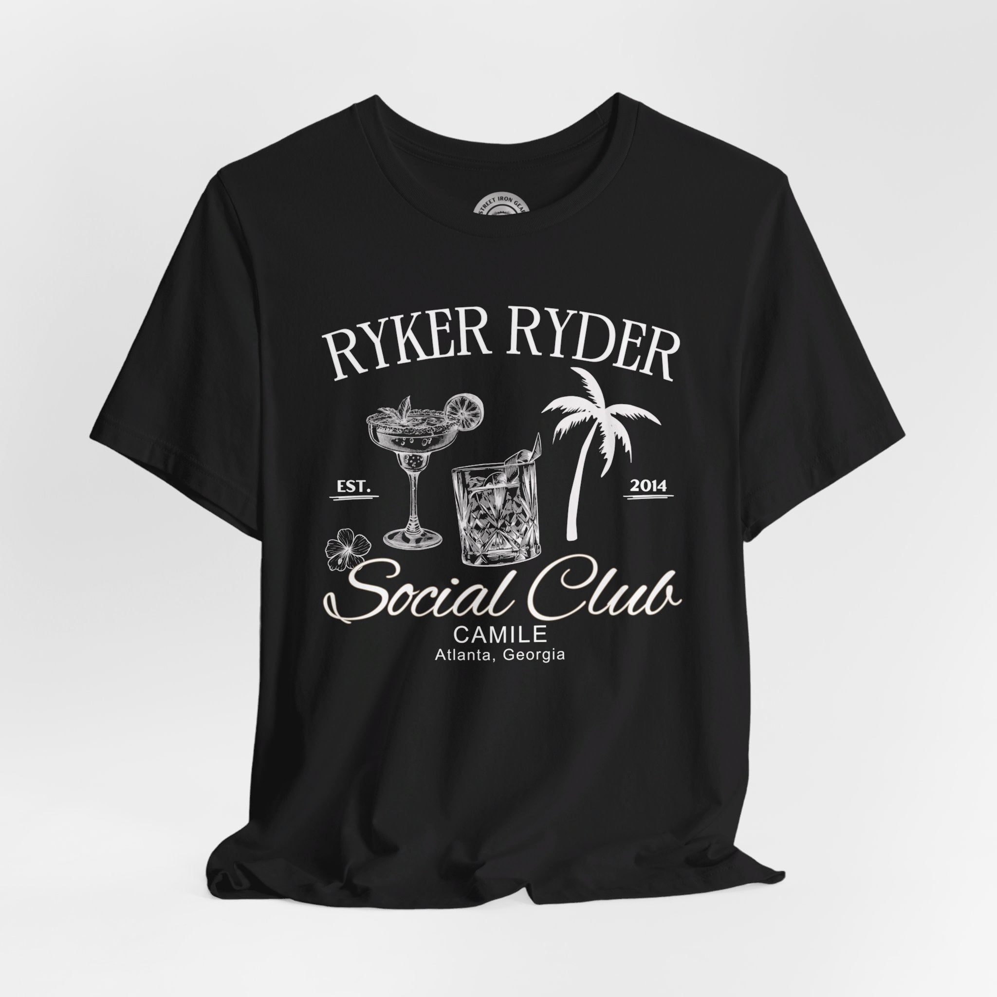 Elevate your ride with our customizable Can-Am Ryker Ryders T-shirt, featuring elegant line drawings of fancy cocktails and palm trees. Perfect for individual riders or local Can-Am Ryker groups, you can personalize it with your name and location to make it uniquely yours. Celebrate your love for the open road in style with this exclusive design from StreetIronGear.com!