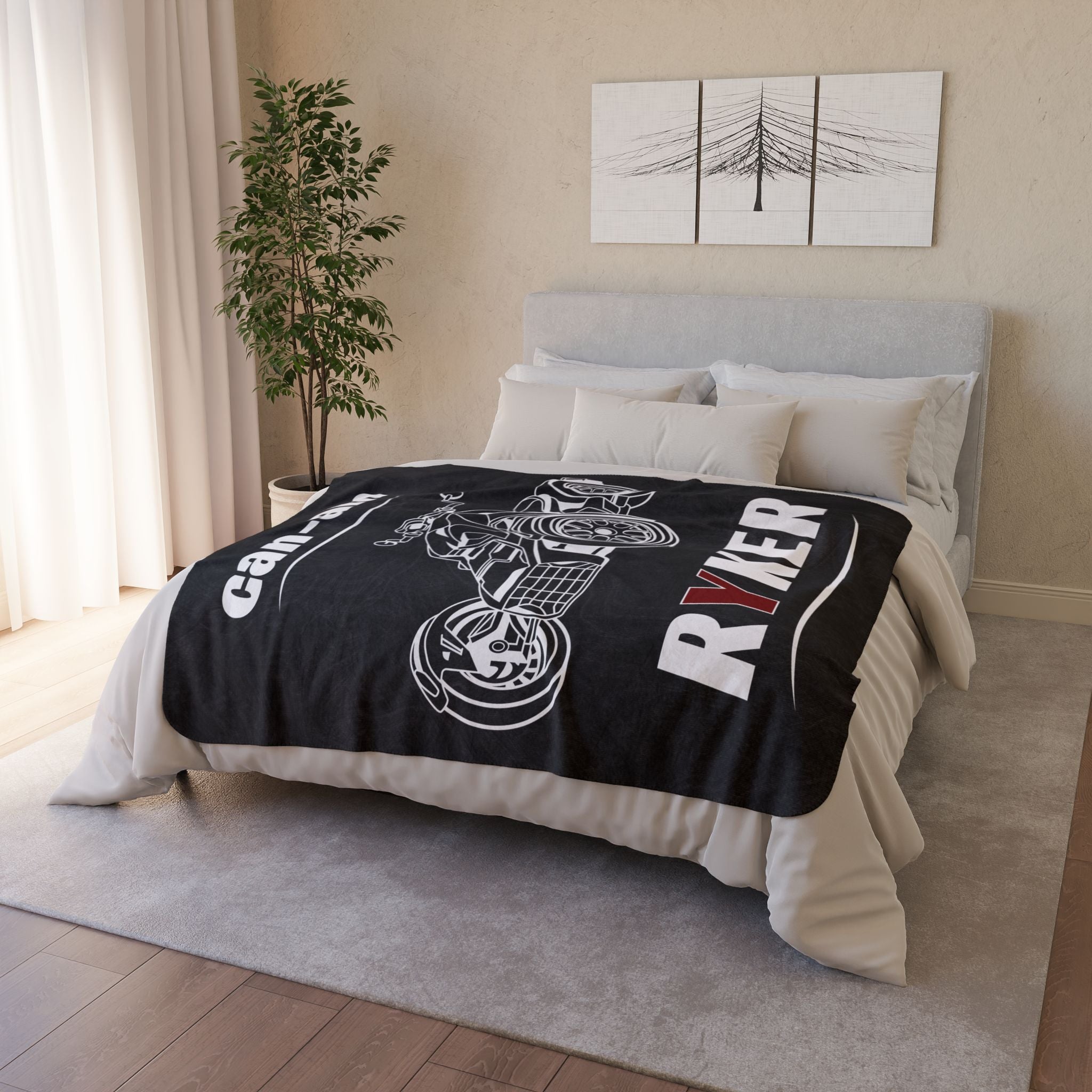 Wrap yourself in warmth and style with our midnight-colored Can-Am Ryker Sherpa Fleece Blanket. Featuring a sleek monochrome Ryker graphic and the bold text "Can-Am Ryker" in white and red, this premium blanket is perfect for Ryker enthusiasts. Whether you're cozying up at home or adding a stylish touch to your outdoor adventures, this soft and durable fleece blanket is a must-have. Ideal for gifting, it’s perfect for those who love the thrill of the open road.