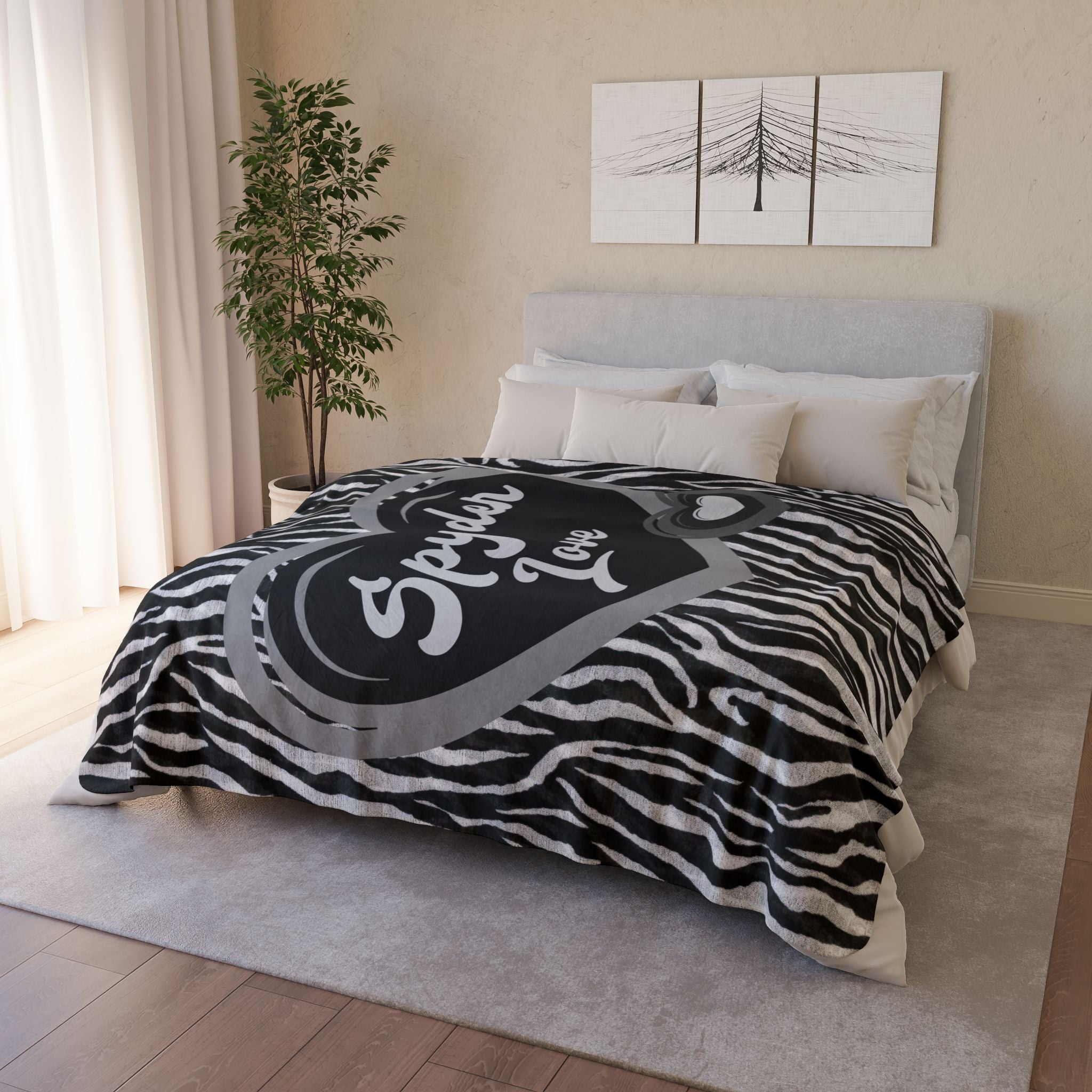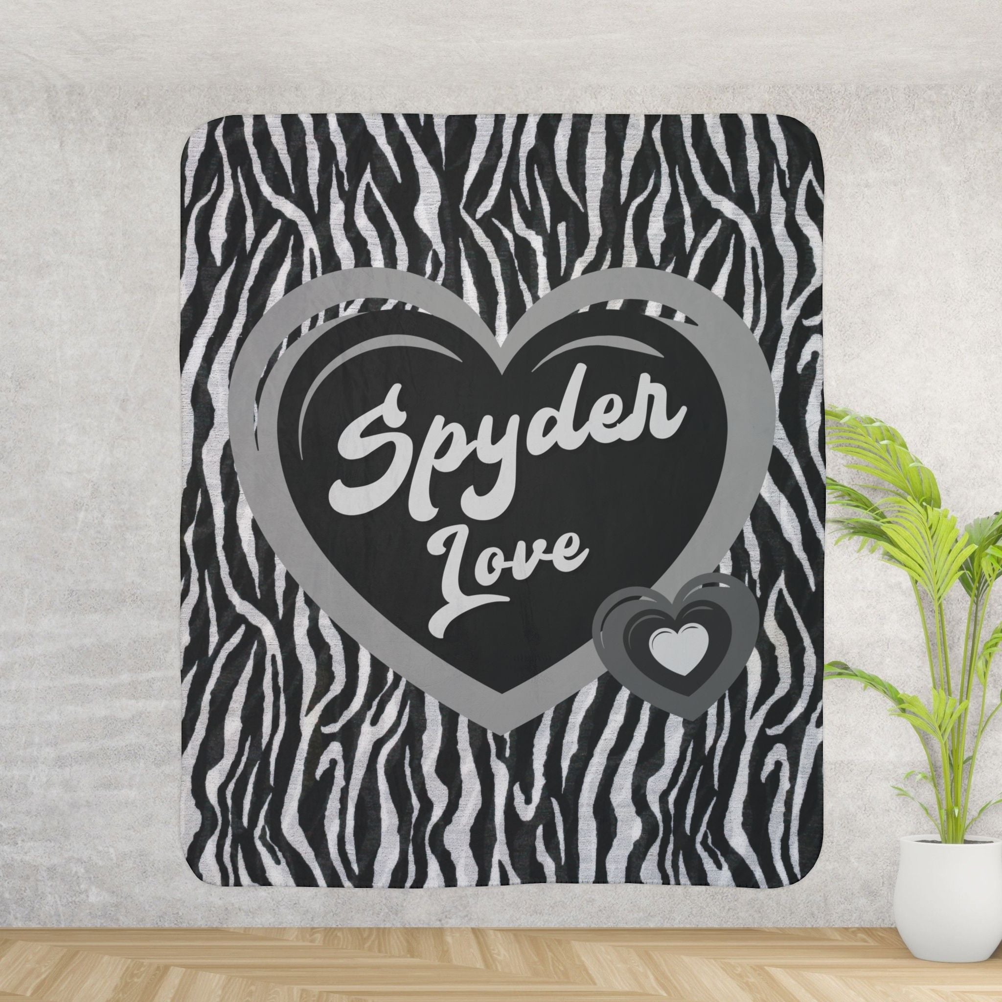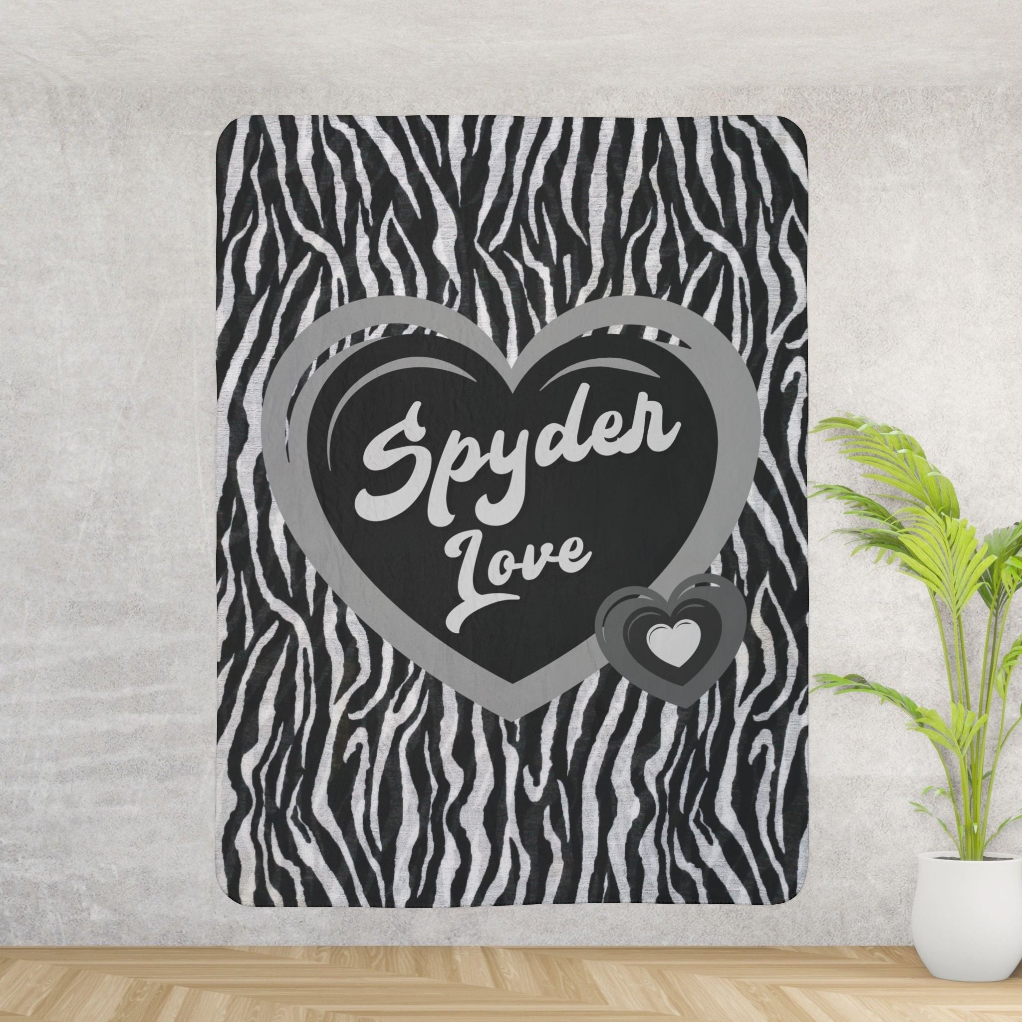 Wrap yourself in comfort and style with our Can-Am Spyder themed plush Sherpa blanket, perfect for any Spyder enthusiast. Featuring a trendy zebra print background with a series of hearts, this luxurious blanket showcases the text "Spyder Love" beautifully encased in the center heart. Ideal for cozying up at home or taking on road trips, this soft and warm blanket makes a thoughtful gift for Can-Am Spyder lovers.