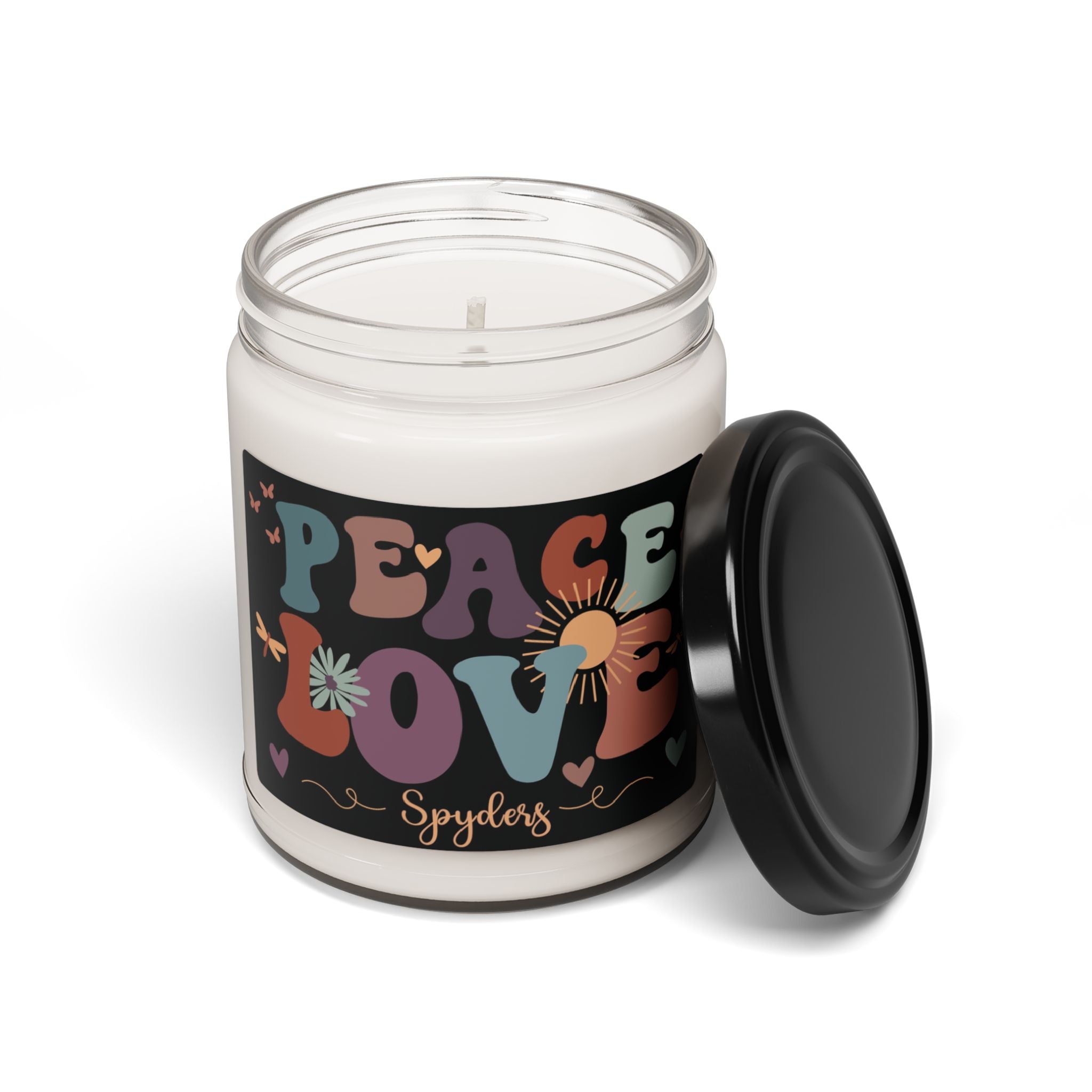 Light up your space with our Can-Am Spyder themed soy candle, featuring a retro boho design that reads "Peace, Love, and Spyders" in vintage and script fonts. With its vibrant, retro color palette, this candle adds a touch of style to any room while celebrating your love for Spyders. Made from natural soy wax, it burns cleaner and longer than petroleum-based candles, making it an eco-friendly choice for Spyder enthusiasts.