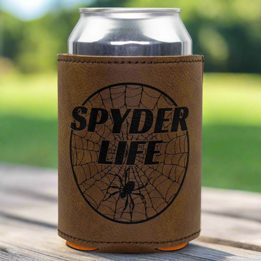 Stay cool in style with our custom-designed Can-Am Spyder themed Faux Leather Can Cooler! Featuring a bold spider on a spider web graphic and the text "Spyder Life," this can cooler is perfect for any Can-Am enthusiast. Available in multiple colors, it’s ideal for keeping your beverages chilled while showing off your love for the open road. Durable, stylish, and a must-have for Spyder fans, this can cooler makes a great gift or accessory for rallies and rides.