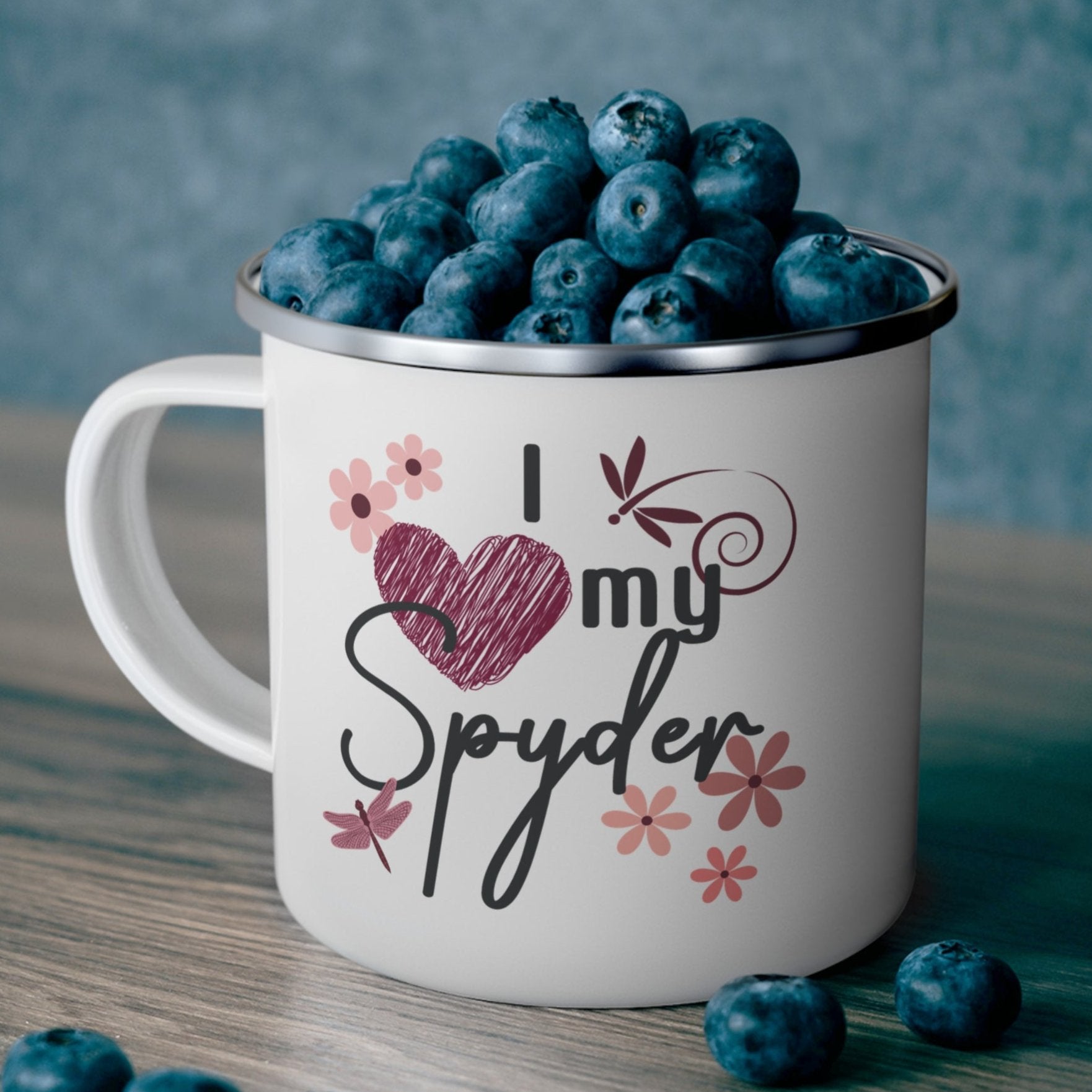 Experience the perfect blend of style and adventure with our Can-Am Spyder themed enamel camping mug! This charming mug features a boho and cottagecore design that beautifully showcases the phrase "I ❤️ My Spyder" in vibrant, colorful script. Crafted from durable enamel, it's lightweight yet sturdy—ideal for camping trips, outdoor gatherings, or cozy evenings at home. Whether you're sipping your morning coffee before a ride or enjoying a hot chocolate by the campfire, this mug is a must-have accessory for any Spyder enthusiast.