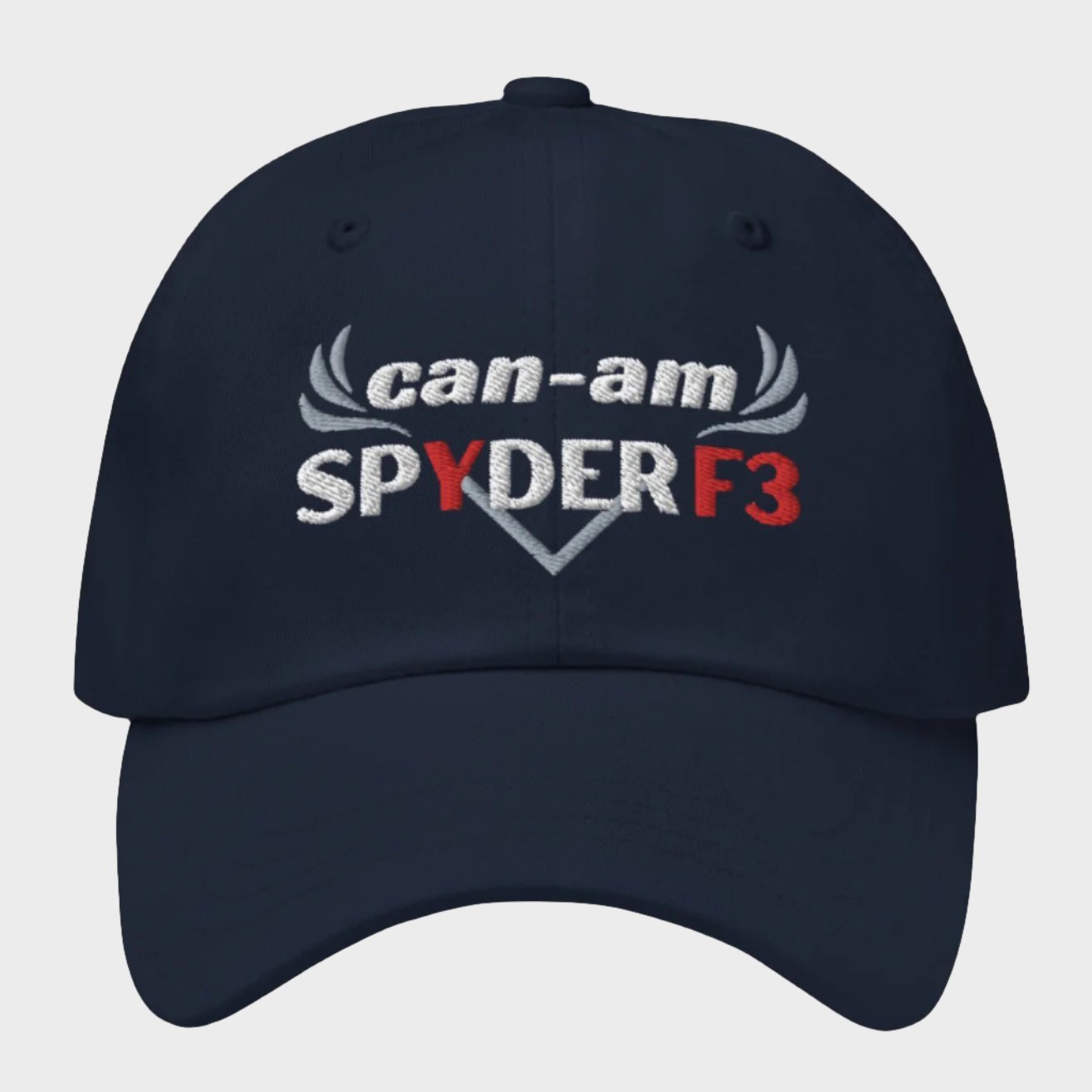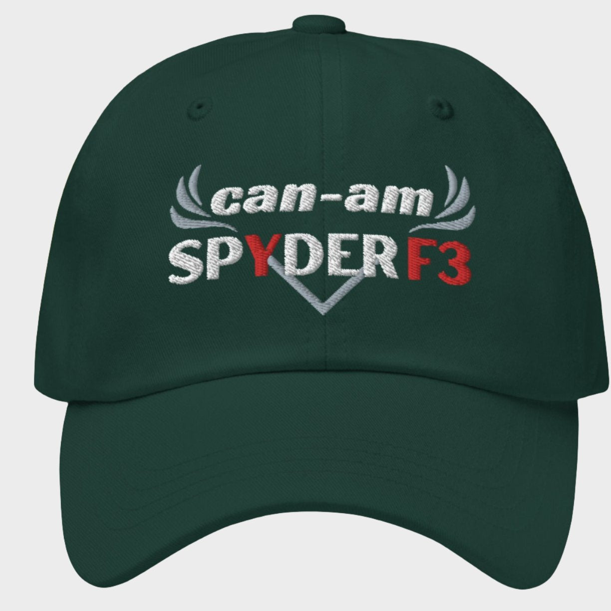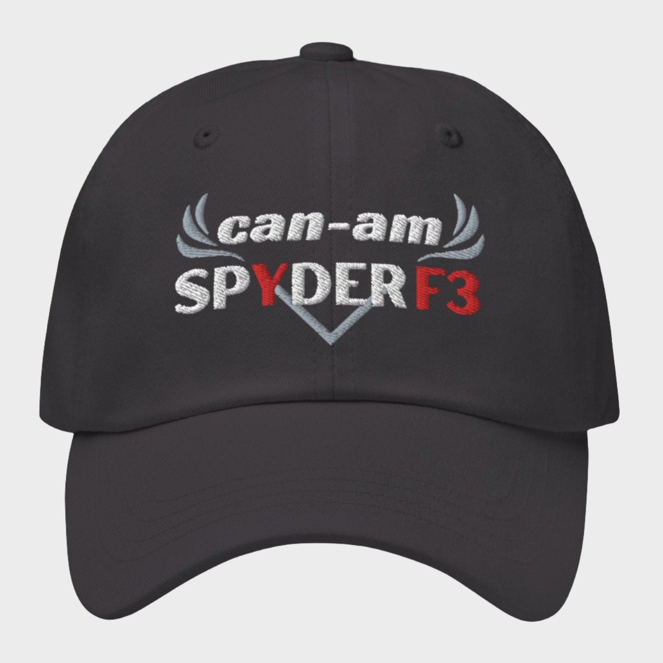 Enhance your style with this embroidered red, white, and black Can-Am Spyder F3 Dad Hat, showcasing a colorful design with "Can-Am Spyder F3" text. Great gift for Can-Am Spyder Lovers! Dad hats aren't just for dads. This one's got a low profile with an adjustable strap and curved visor.