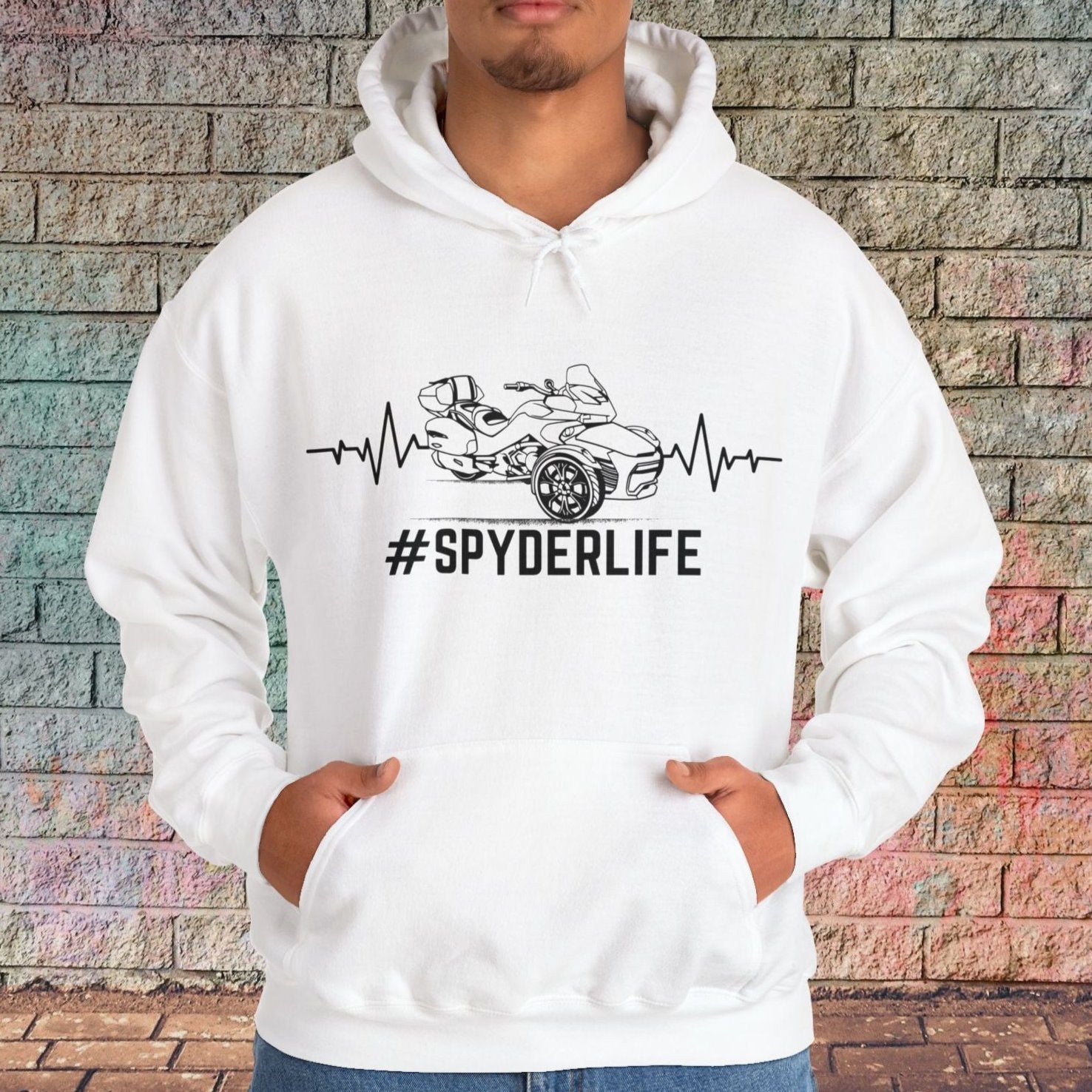 Celebrate your passion with the Can-Am Spyder F3 Culture hooded sweatshirt, featuring a bold '#SPYDERLIFE' slogan and a striking Can-Am Spyder F3 graphic intertwined with a life line. Perfect for riders and enthusiasts, this high-quality sweatshirt captures the spirit of adventure and the thrill of the open road. Wear your love for the Can-Am Spyder F3 proudly and join the community of dedicated riders who live life to the fullest.