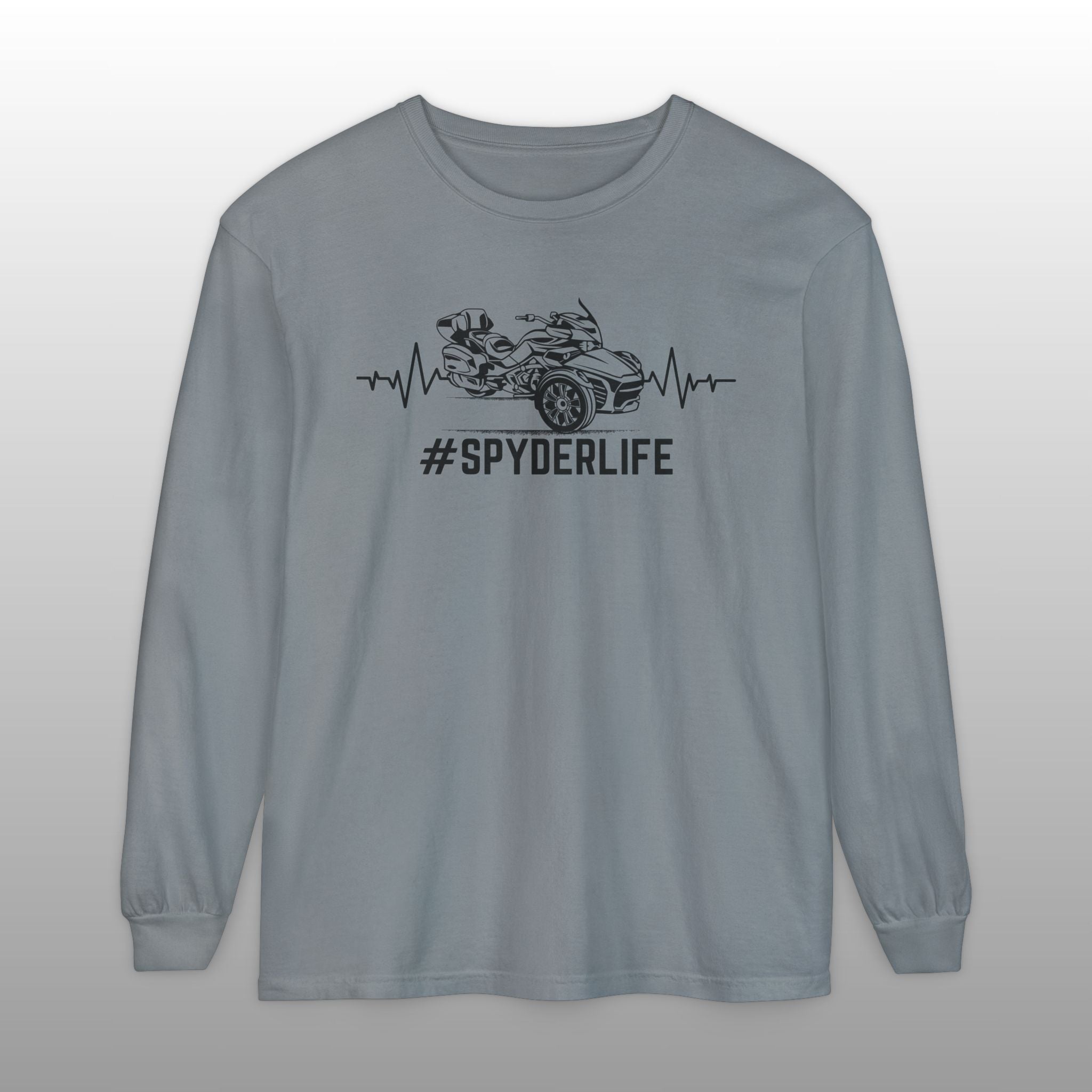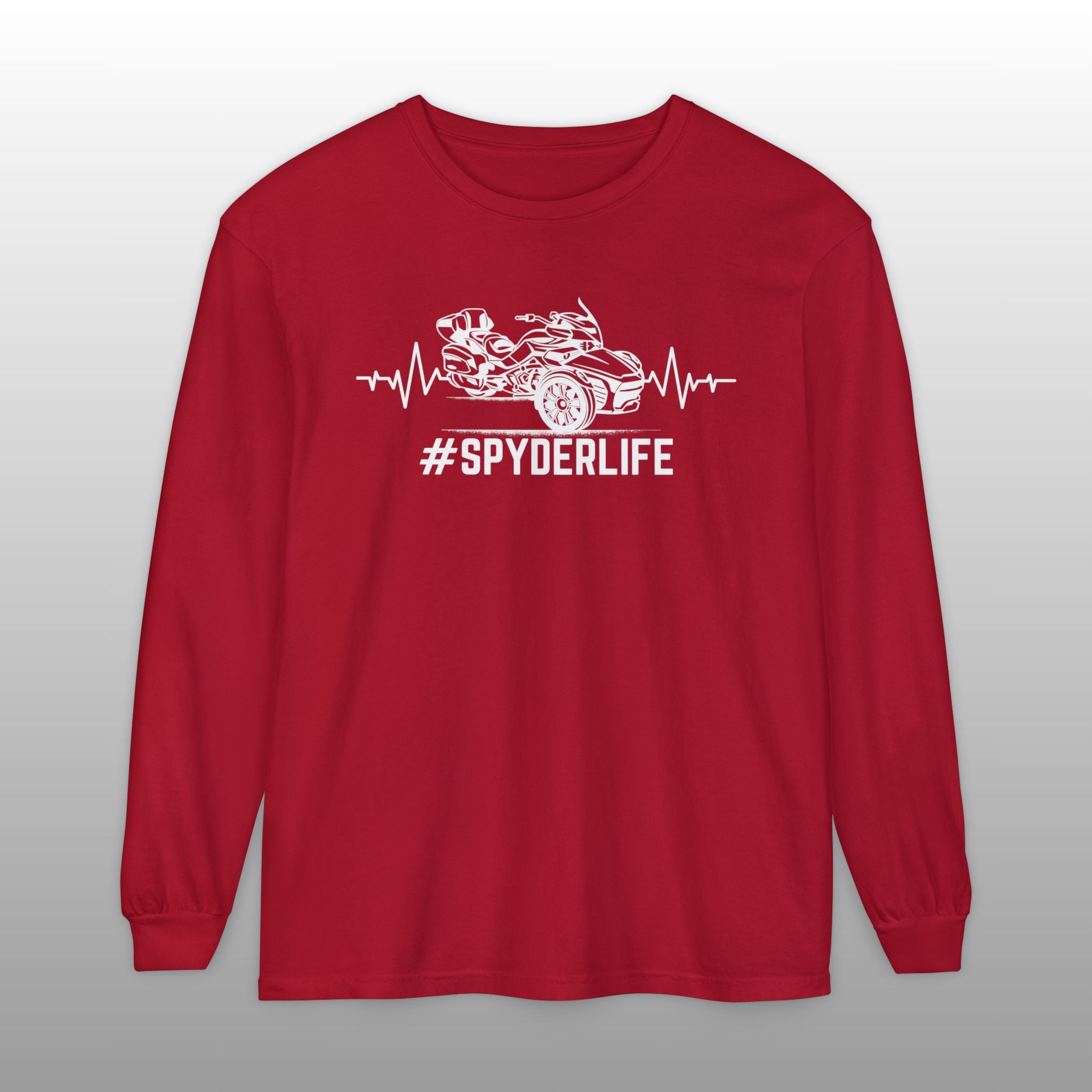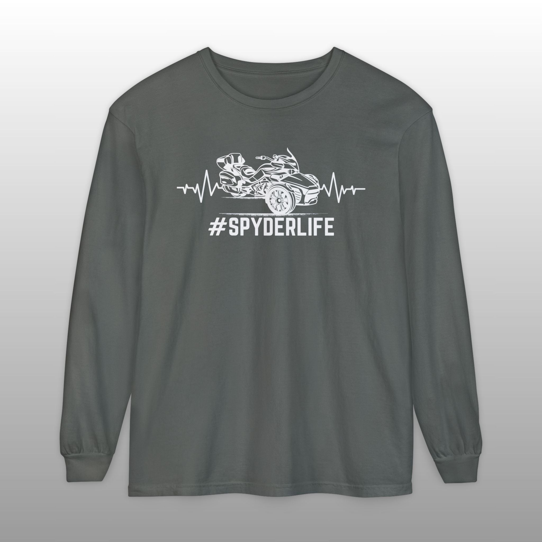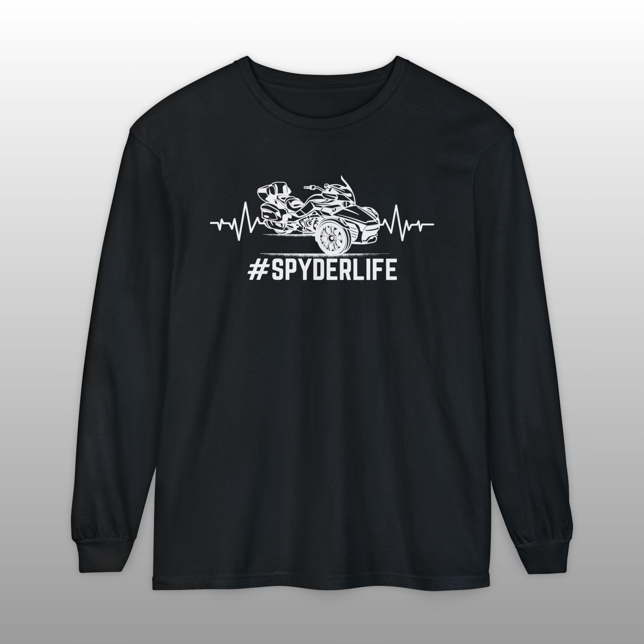 Live the #SPYDERLIFE and show off your passion with this premium Can-Am Spyder F3 long-sleeve tee! This shirt features a unique graphic that captures the excitement of riding, displaying a bold Spyder F3 silhouette with a dynamic lifeline pulse extending from it, symbolizing the heartbeat of every Spyder rider. Made with the sought-after Comfort Colors 6014 fabric, this long-sleeve shirt offers a vintage, garment-dyed finish and a relaxed fit that's incredibly soft and comfortable for daily wear or layering on a cooler ride. This is the perfect piece of Spyder apparel and makes an excellent motorcycle enthusiast gift for any proud Can-Am owner who considers riding an essential part of their life.
