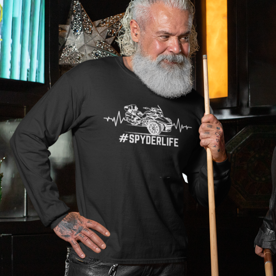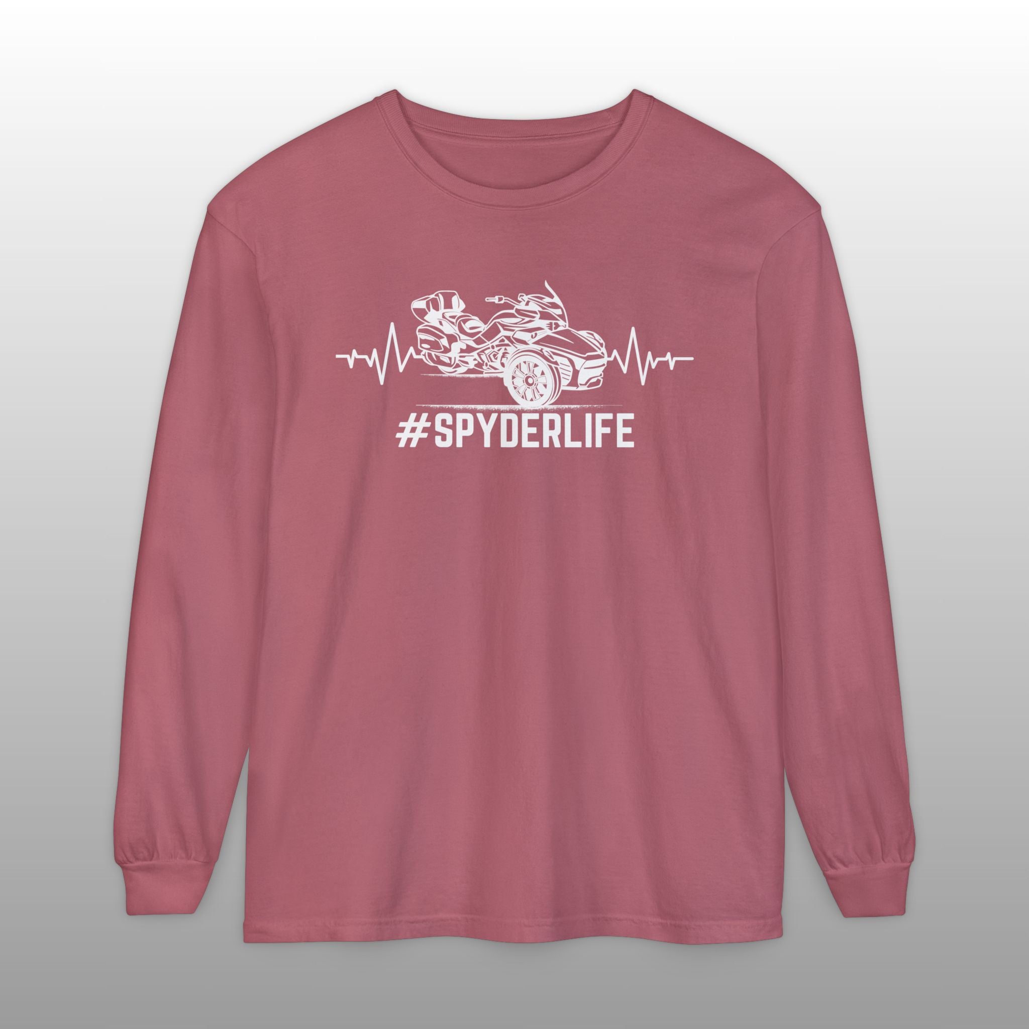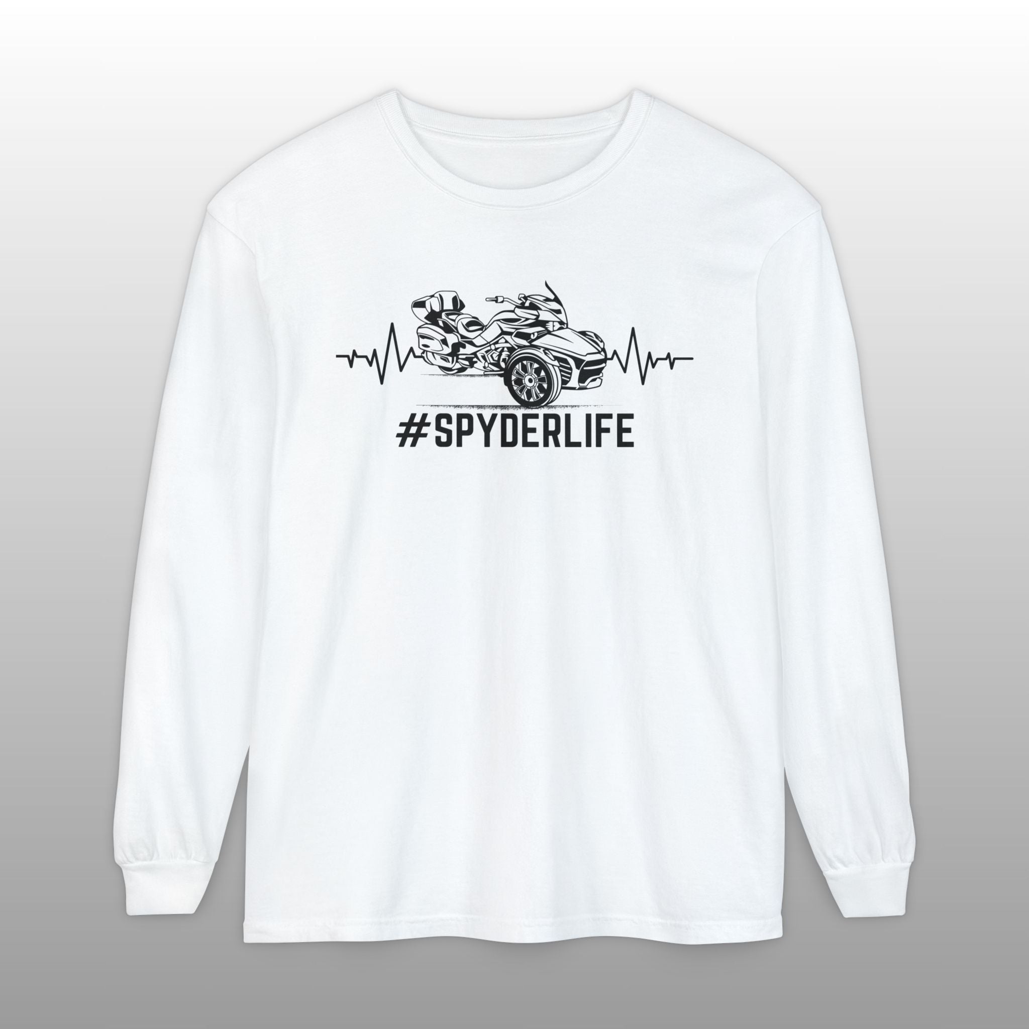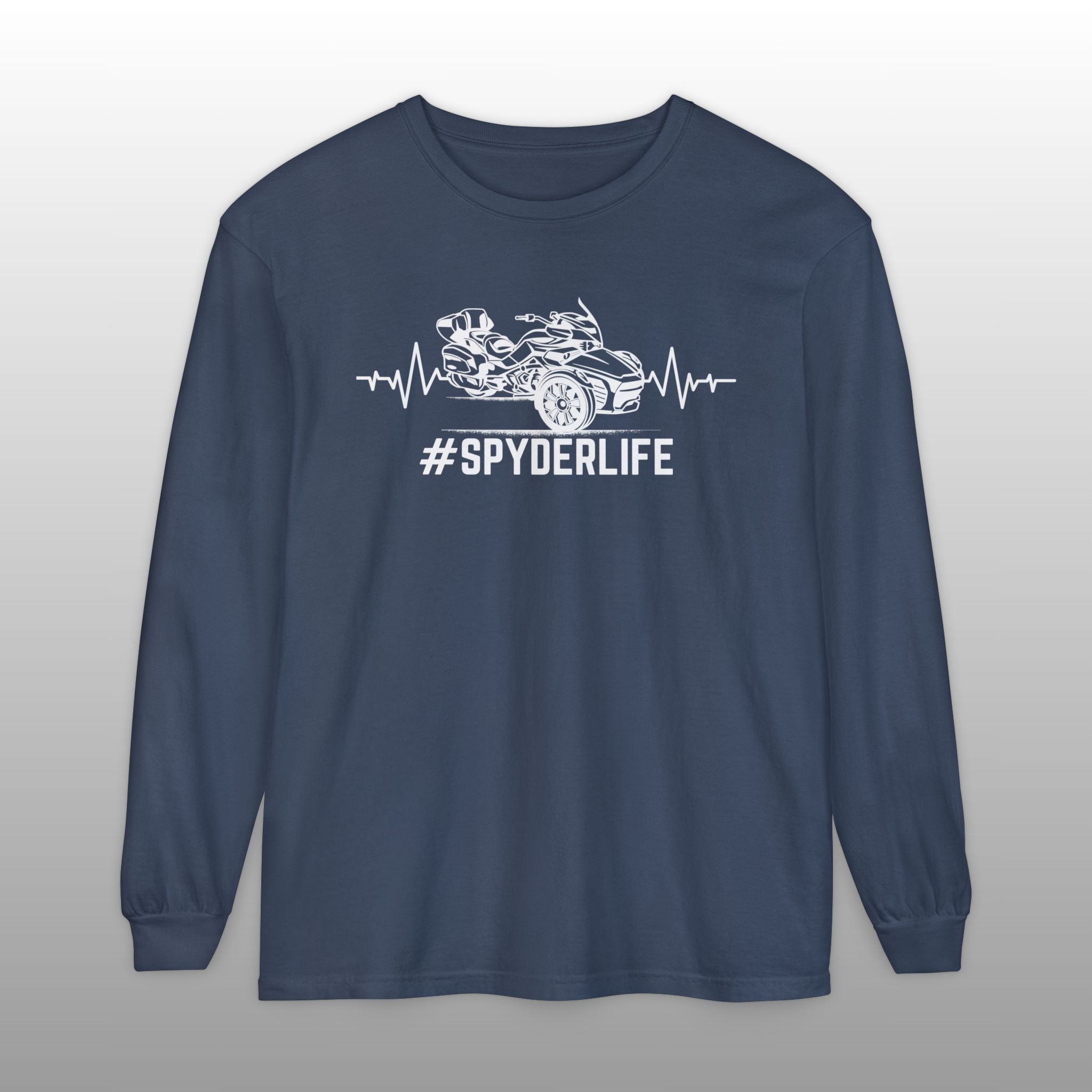 Live the #SPYDERLIFE and show off your passion with this premium Can-Am Spyder F3 long-sleeve tee! This shirt features a unique graphic that captures the excitement of riding, displaying a bold Spyder F3 silhouette with a dynamic lifeline pulse extending from it, symbolizing the heartbeat of every Spyder rider. Made with the sought-after Comfort Colors 6014 fabric, this long-sleeve shirt offers a vintage, garment-dyed finish and a relaxed fit that's incredibly soft and comfortable for daily wear or layering on a cooler ride. This is the perfect piece of Spyder apparel and makes an excellent motorcycle enthusiast gift for any proud Can-Am owner who considers riding an essential part of their life.