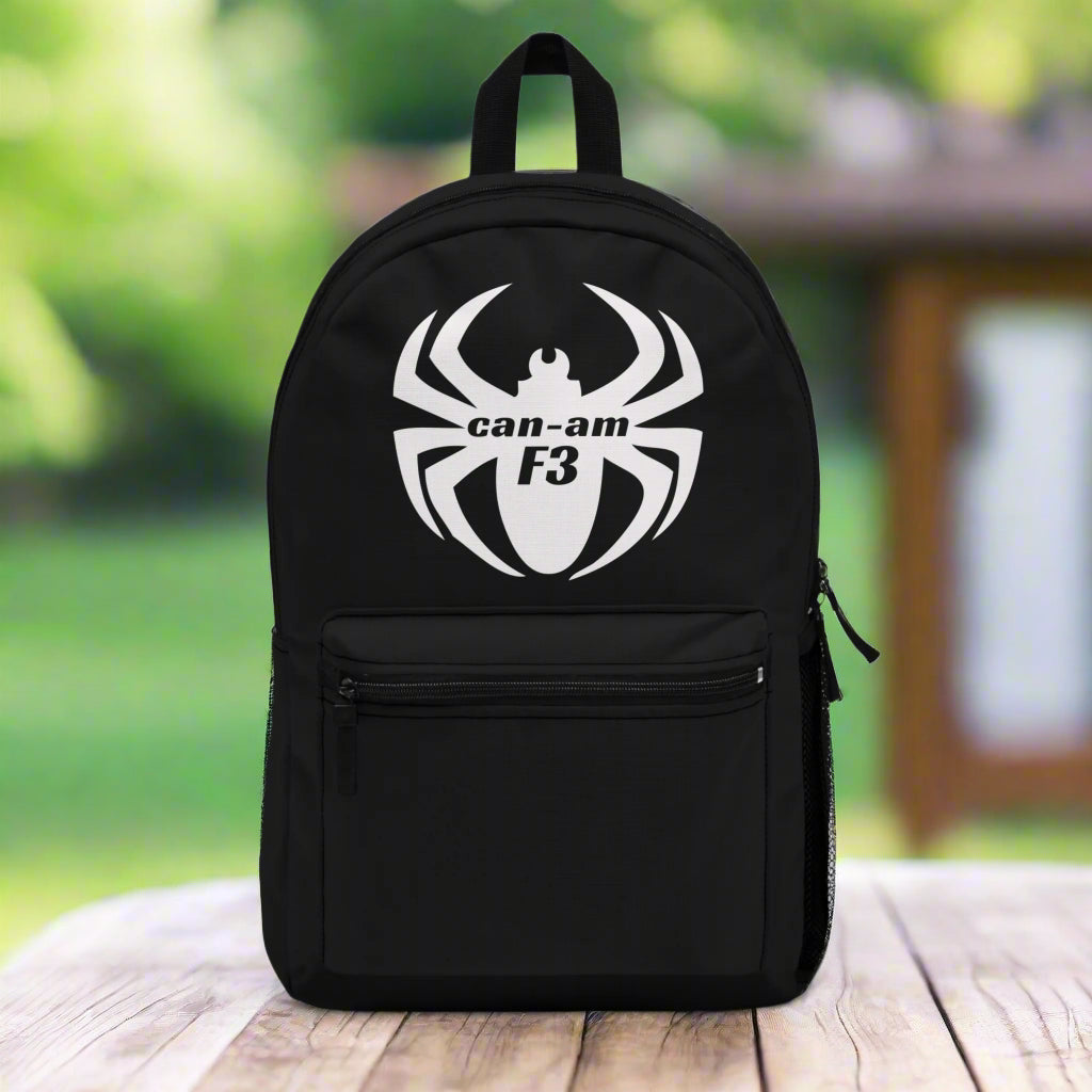 Carry your essentials in style with our Can-Am Spyder Backpack, featuring a striking monochrome design of a white spider and the text "Can-Am F3" in bold black font within the graphic. This sleek black backpack is designed to fit a laptop and all the gear you need for your next Can-Am Ryker or Spyder adventure. Durable, spacious, and comfortable to wear, it's perfect for both everyday use and long rides, making it a must-have accessory for any Can-Am enthusiast.