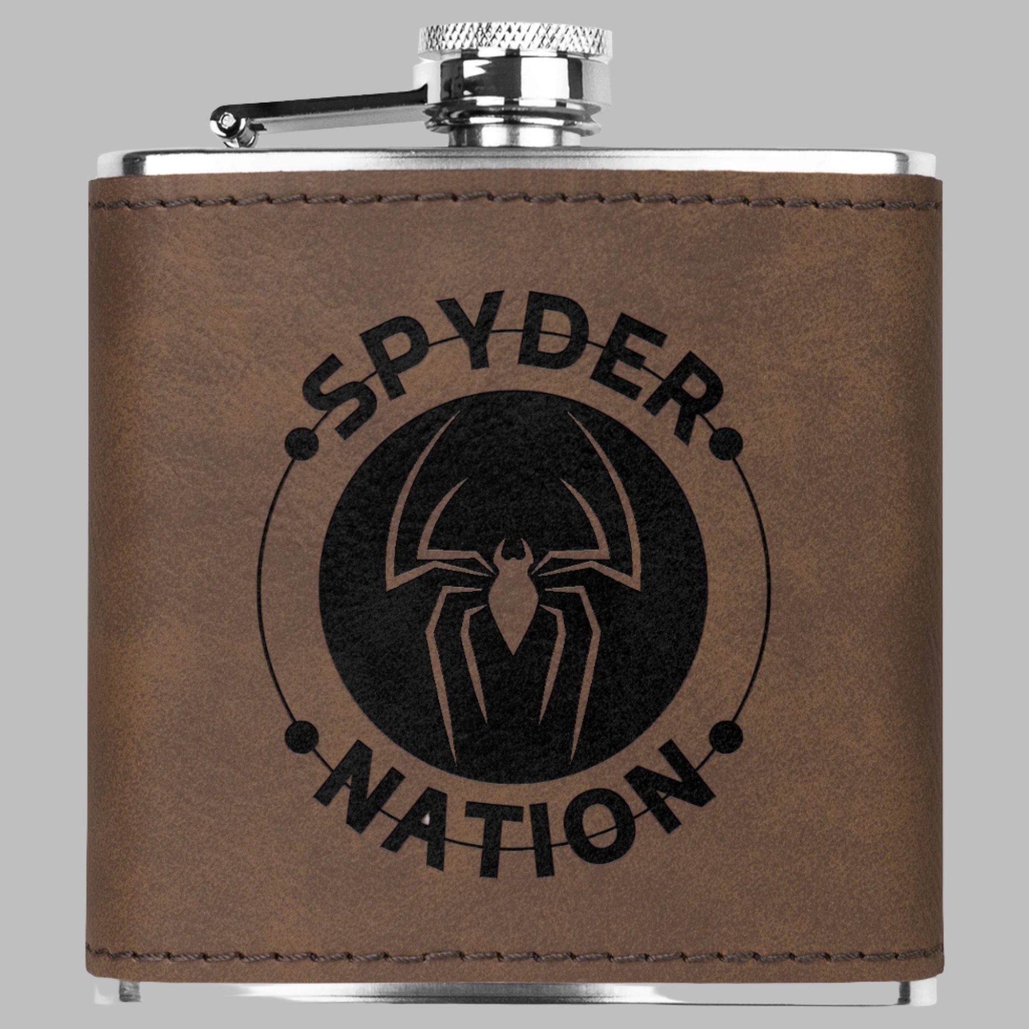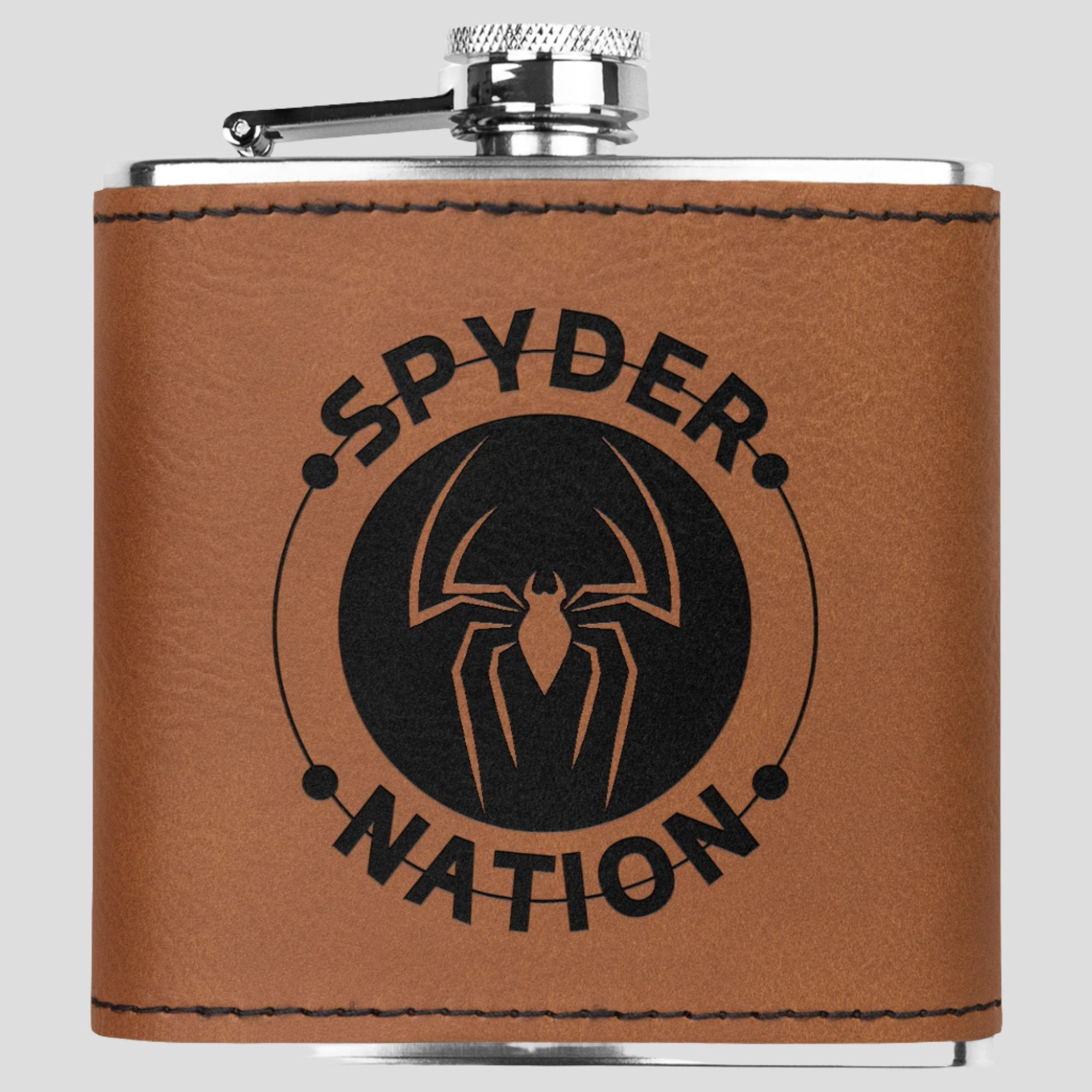 Elevate your riding experience with our Can-Am Spyder themed laser engraved leather covered flask. Perfect for motorcycle enthusiasts, this stylish and durable flask makes an ideal gift, combining rugged charm with practical functionality for your adventures on the open road.