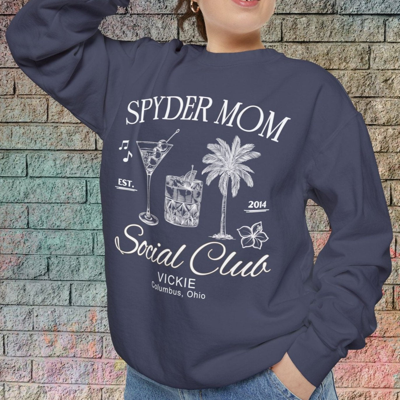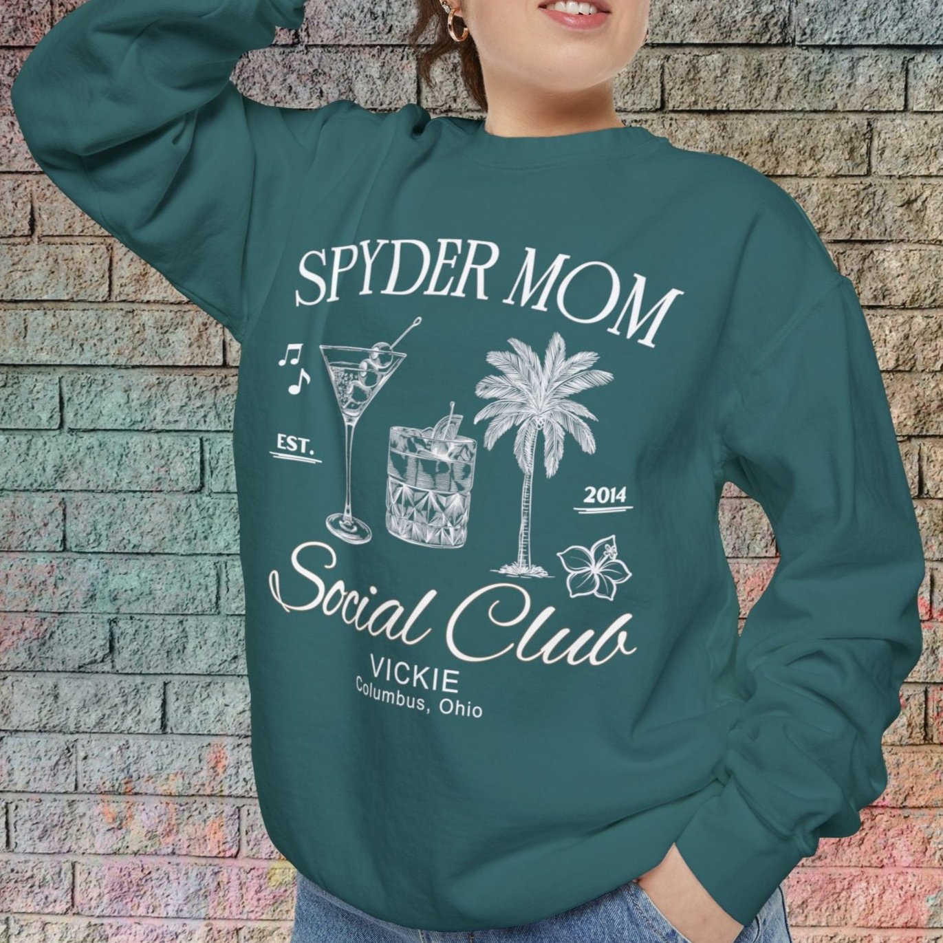 Elevate your ride with our customizable Spyder Mom sweatshirt, featuring elegant line drawings of fancy cocktails and palm trees. Perfect for individual riders or local Can-Am Spyder groups, you can personalize it with your name and location to make it uniquely yours. Celebrate your love for the open road in style with this exclusive design from StreetIronGear.com!