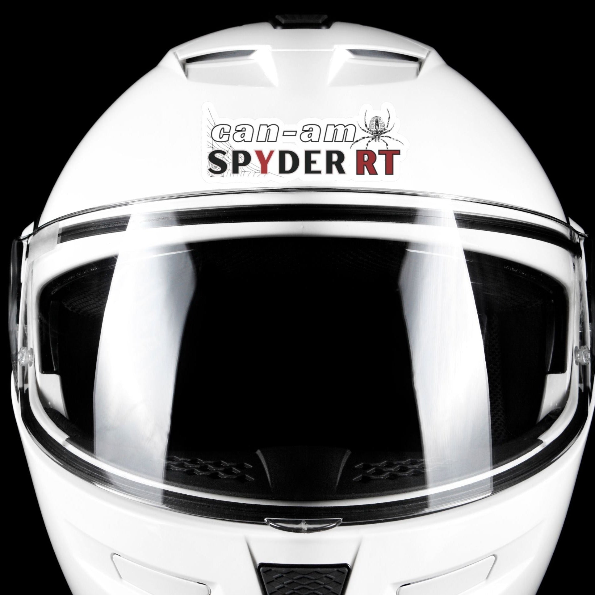 Show off your Can-Am Spyder pride with our 'Spyder RT' decal, featuring a sleek black spider design and elegant script. Available in several sizes, this versatile decal is perfect for creative applications on your helmet, motorcycle fender, or car window. Enhance your ride's style and make a bold statement with this eye-catching Can-Am Spyder RT themed decal.