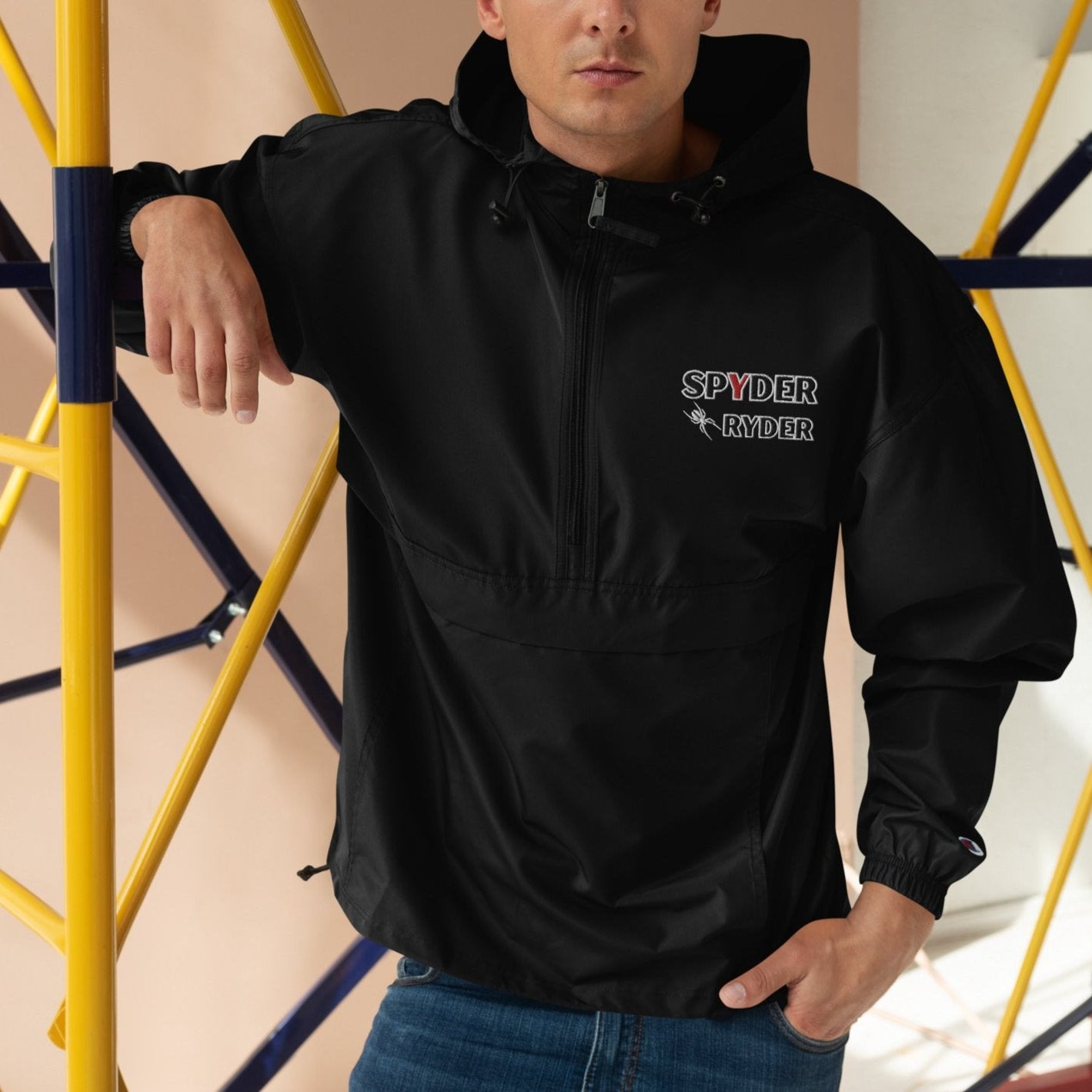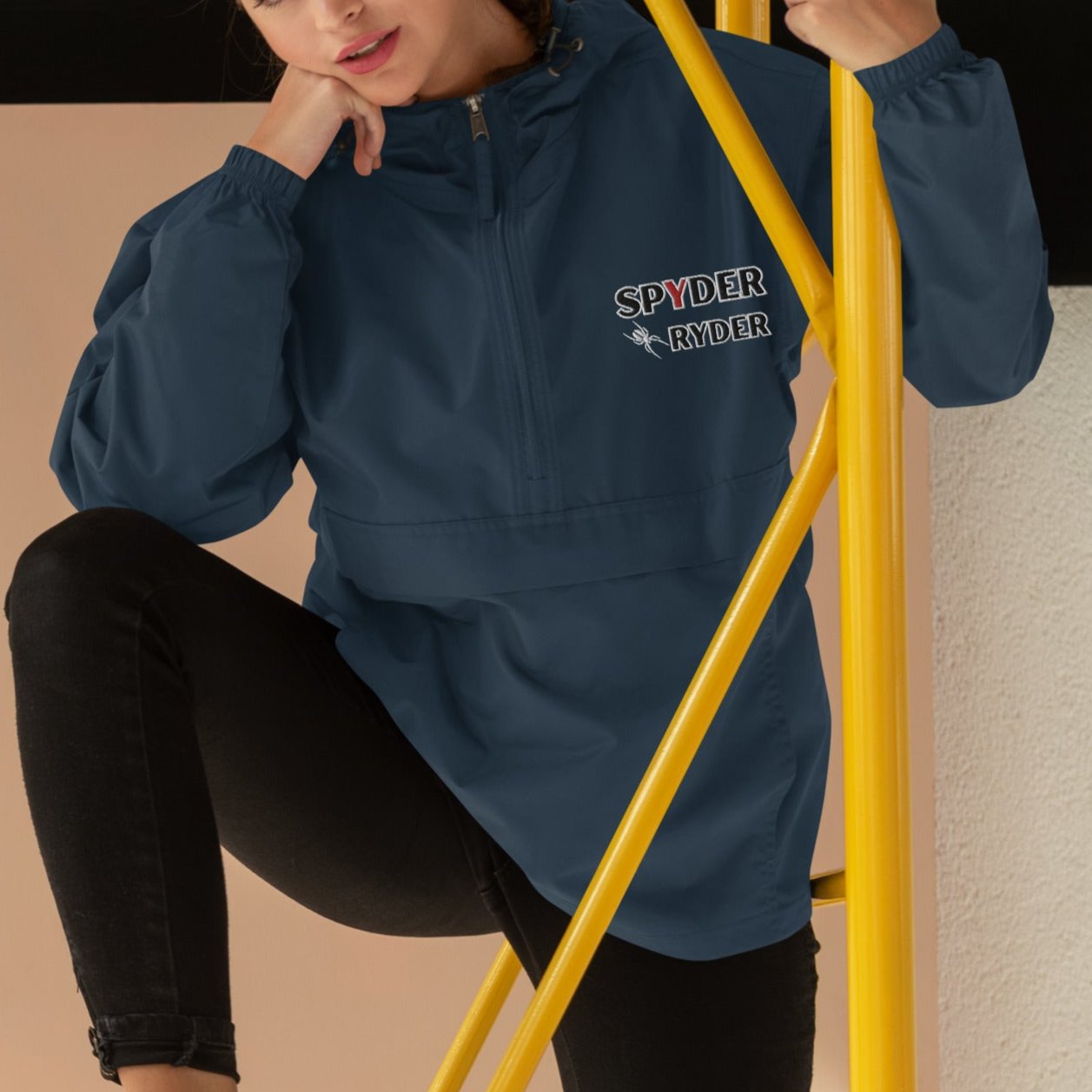 Stay stylish and warm with our Can-Am Spyder themed embroidered pocket Champion Jacket, perfect for all Spyder Ryders! This high-quality jacket features a white spider design with the text "Spyder Ryder" on the front, showcasing your passion...