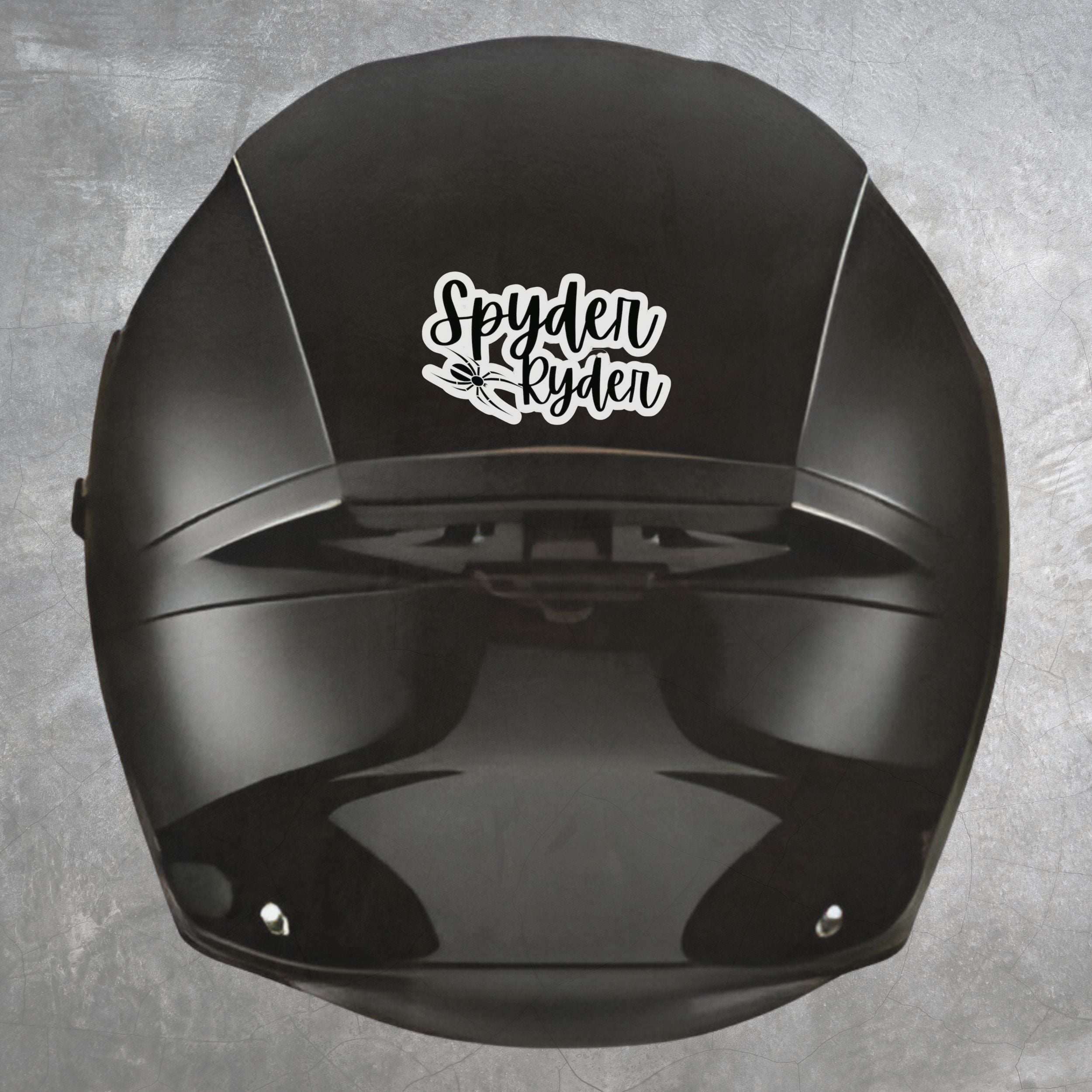 Show off your Can-Am Spyder pride with our 'Spyder Ryder' decal, featuring a sleek black spider design and elegant script. Available in several sizes and colors, this versatile decal is perfect for creative applications on your helmet, motorcycle fender, or car window. Enhance your ride's style and make a bold statement with this eye-catching Can-Am Spyder themed decal.