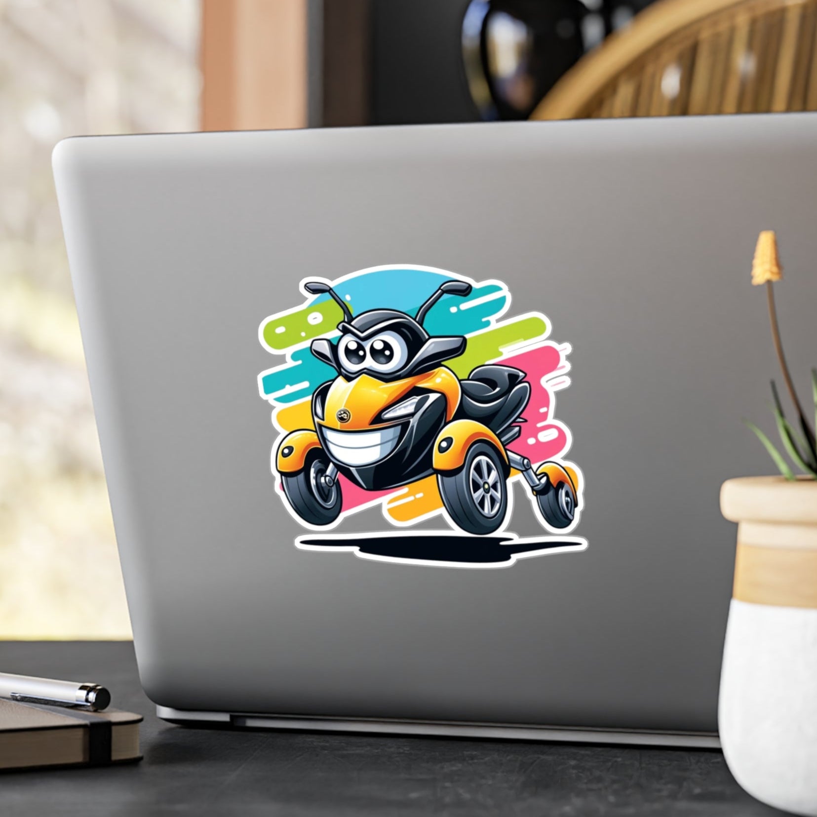 Show off your passion with our Can-Am On-Road Motorcycle-themed kiss cut decal featuring fun cartoon graphic of a 3-wheeled motorcycle. Available in several sizes, this versatile decal is perfect for creative applications on your helmet, motorcycle fender, or car window. Enhance your ride with this high-quality decal, designed to attract attention and celebrate your love for the Can-Am Ryker 900.