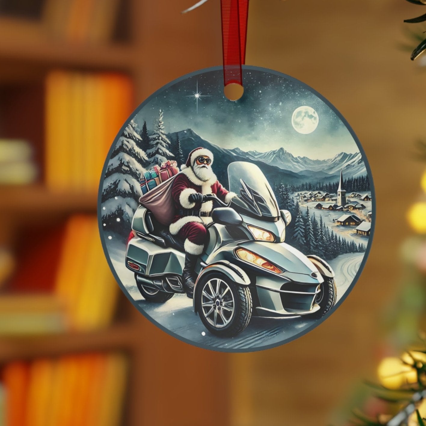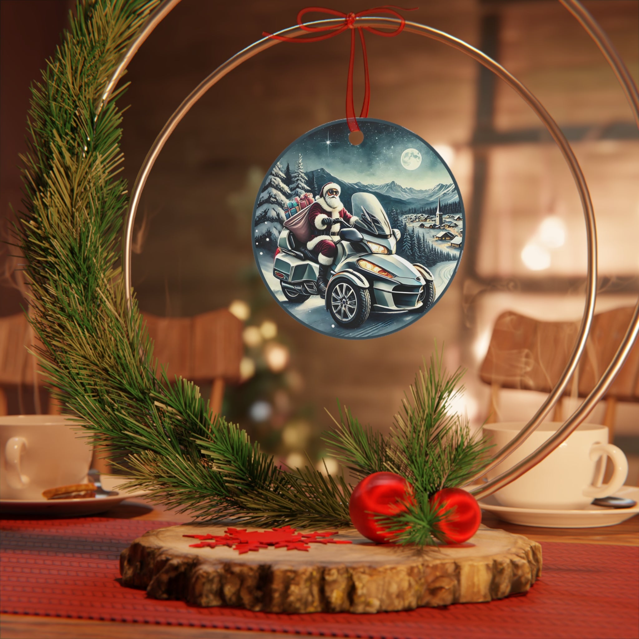 Can-Am Spyder Santa Aluminum Christmas Ornament