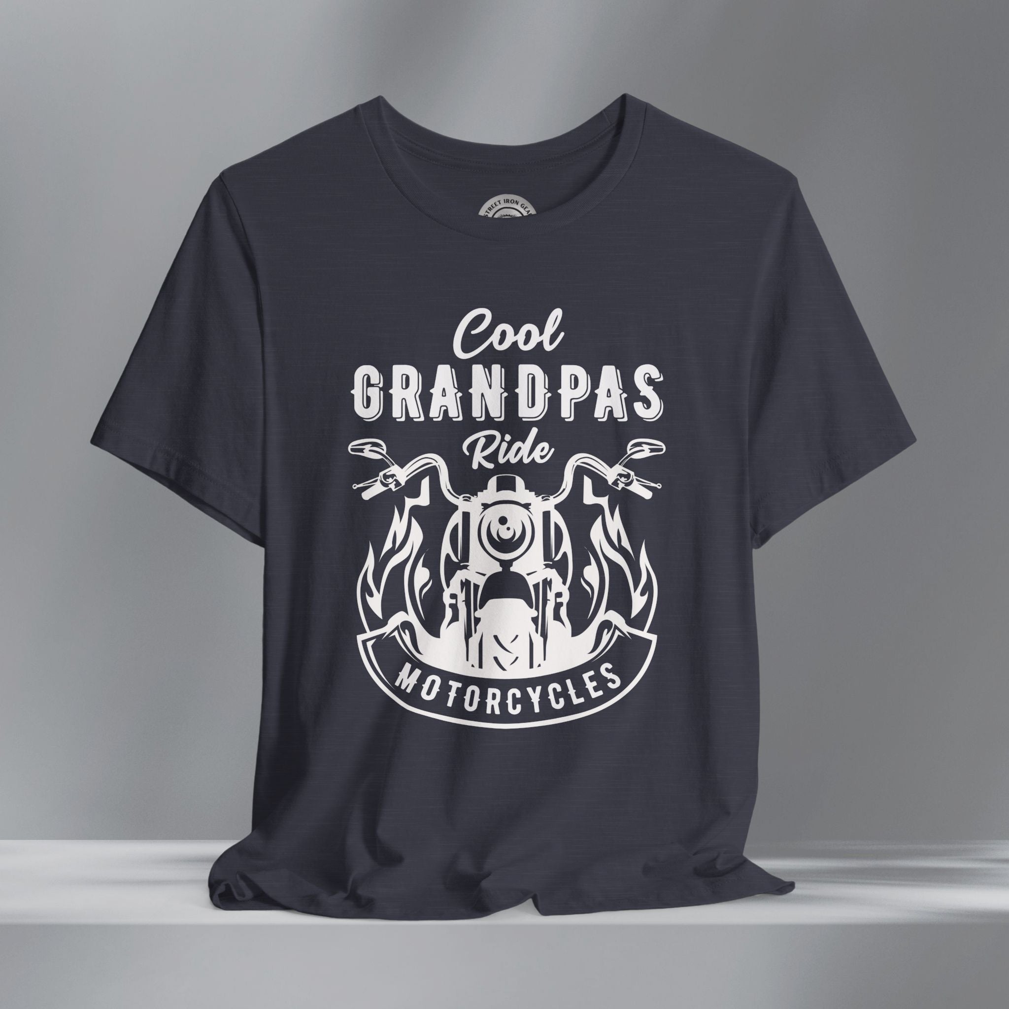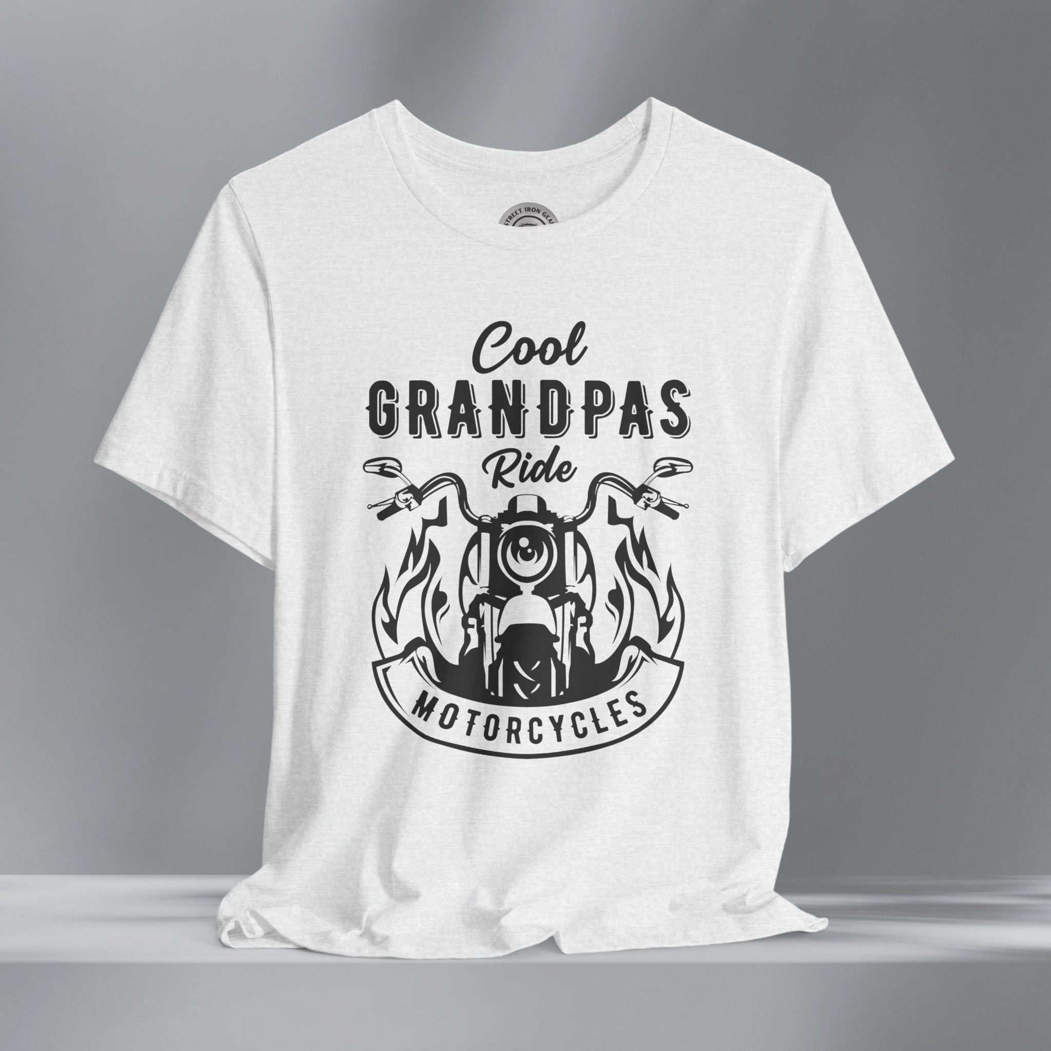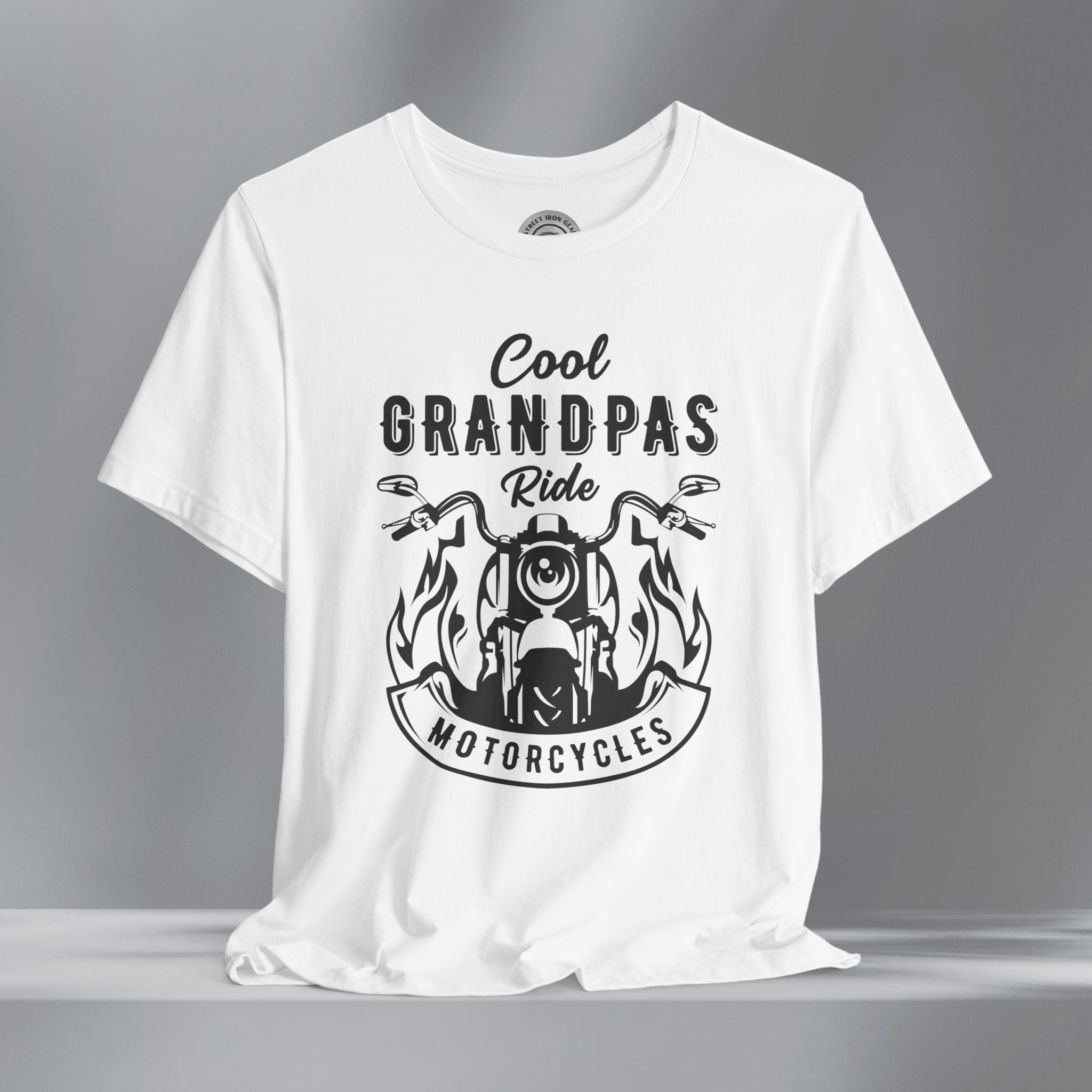 Celebrate legendary rides and legendary grandpas with this Motorcycle-Themed T-Shirt featuring classic biker vibes like a flaming chopper and bold design elements that command attention. With the fun and fearless message Cool Grandpas Ride Motorcycles, this tee is perfect for proud grandfathers who still love life in the fast lane. Made from soft, durable fabric, it's ideal for everyday wear, rally weekends, or cruising down the highway. A great Father’s Day gift, birthday present, or surprise for your favorite two-wheeled grandpa!