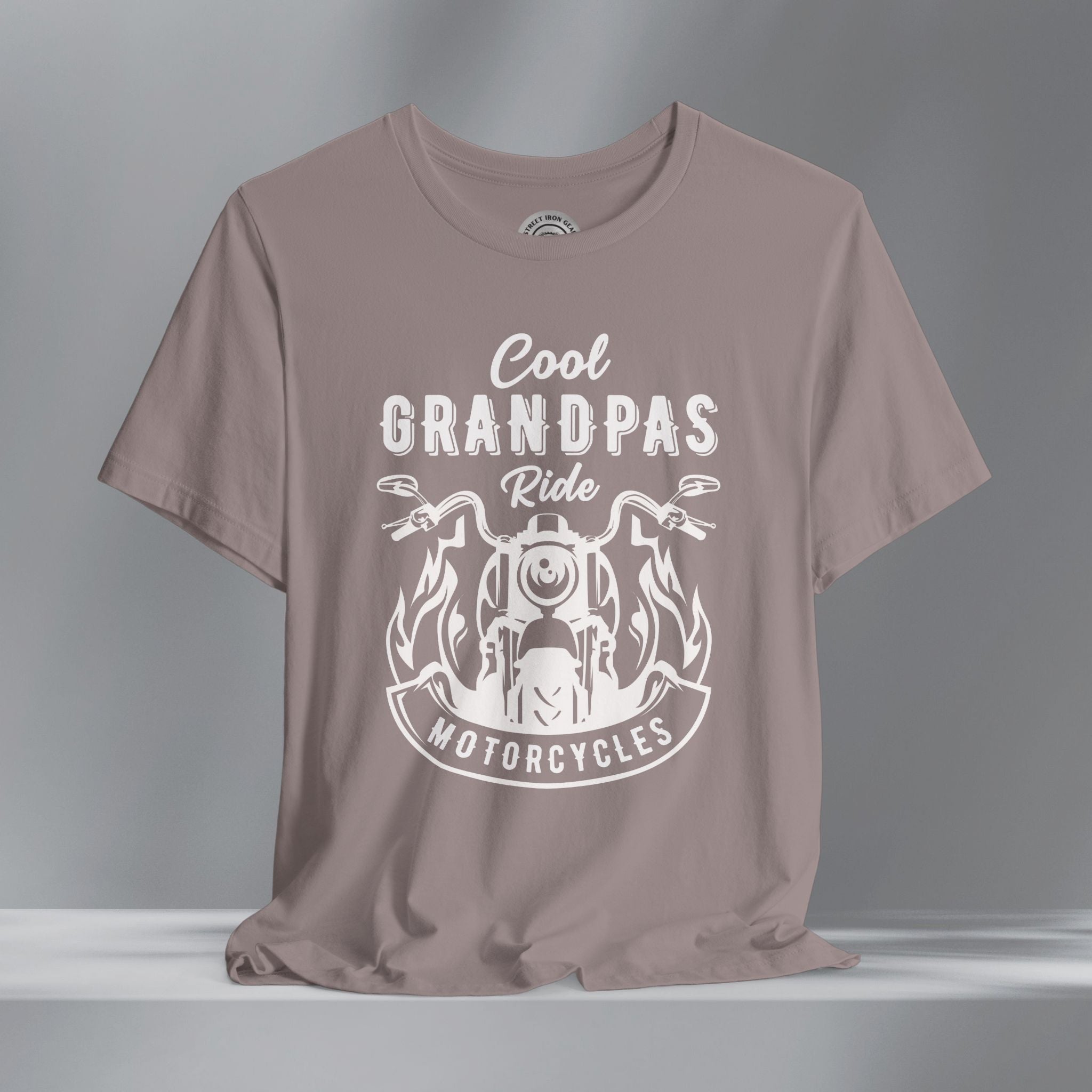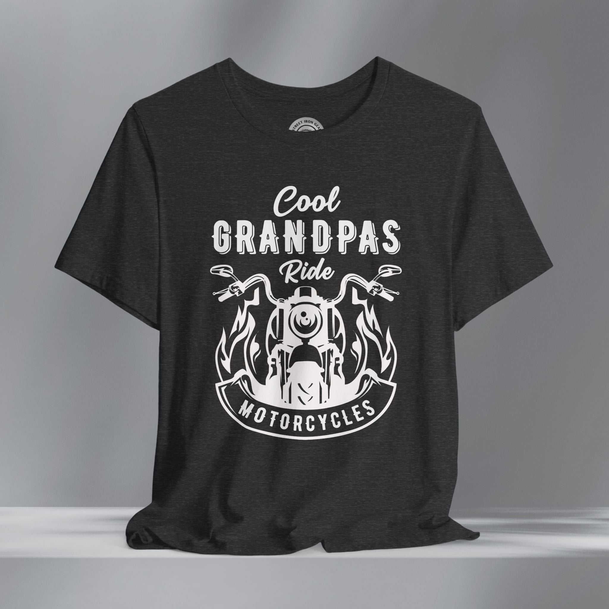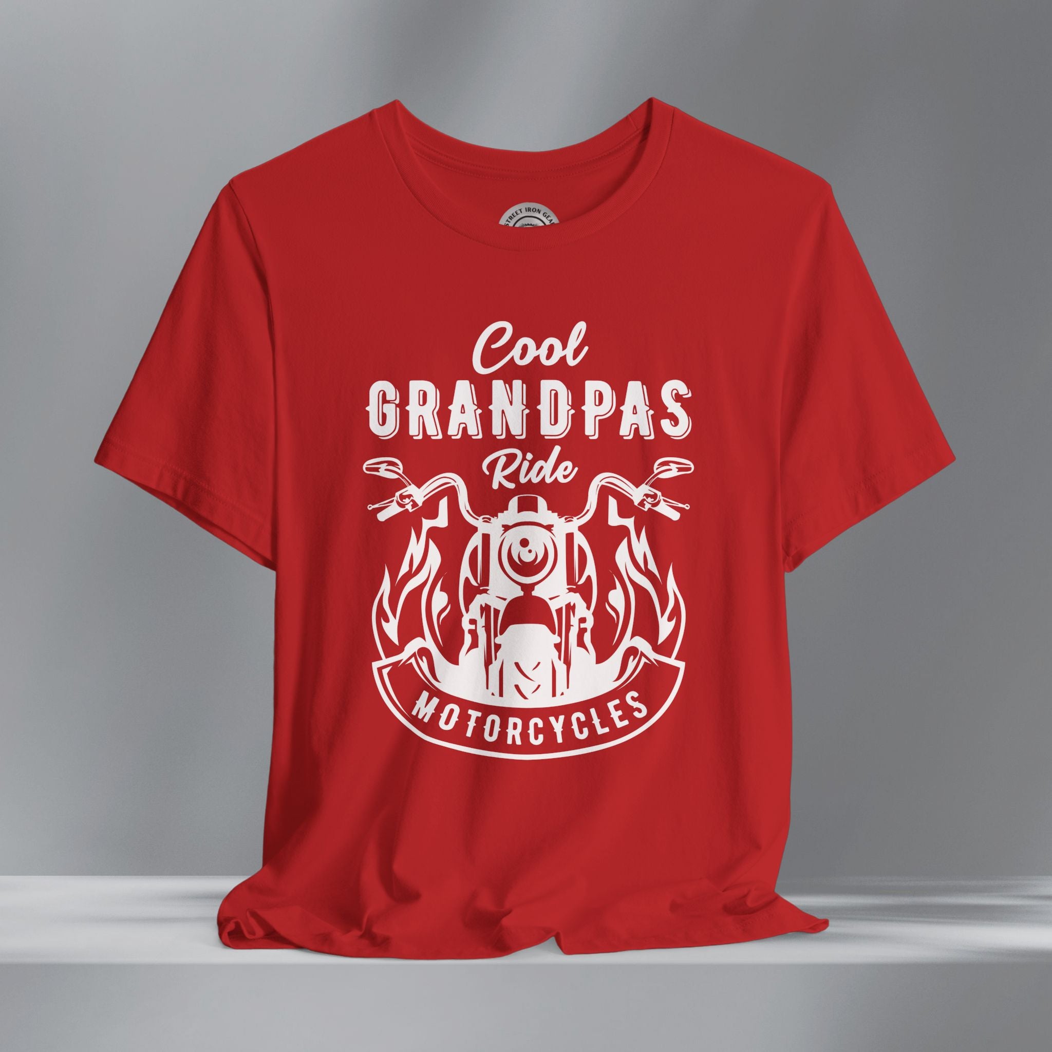 Celebrate legendary rides and legendary grandpas with this Motorcycle-Themed T-Shirt featuring classic biker vibes like a flaming chopper and bold design elements that command attention. With the fun and fearless message Cool Grandpas Ride Motorcycles, this tee is perfect for proud grandfathers who still love life in the fast lane. Made from soft, durable fabric, it's ideal for everyday wear, rally weekends, or cruising down the highway. A great Father’s Day gift, birthday present, or surprise for your favorite two-wheeled grandpa!