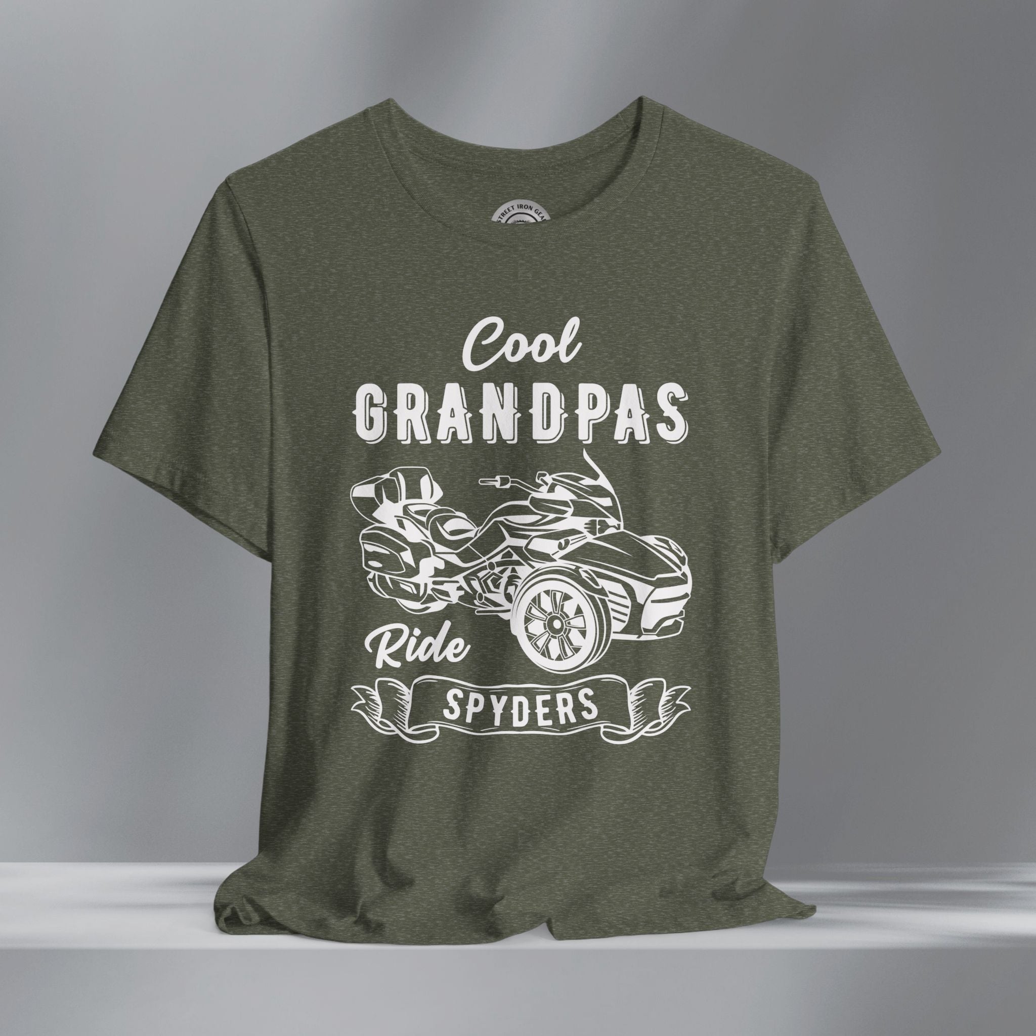 Celebrate cool grandpas everywhere with this bold Can-Am Spyder themed T-shirt, designed just for the Spyder-riding legend in your life! Featuring eye-catching Spyder graphic elements and the proud statement Cool Grandpas Ride Spyders, this shirt blends style, humor, and biker pride into one awesome piece of apparel. Made from soft, high-quality fabric, it's perfect for rides, rallies, or just showing off that three-wheeled swagger. A top pick for Can-Am Spyder riders, this tee makes a great gift for grandpas who ride, Father's Day surprise, or anytime treat for the coolest biker in the family.