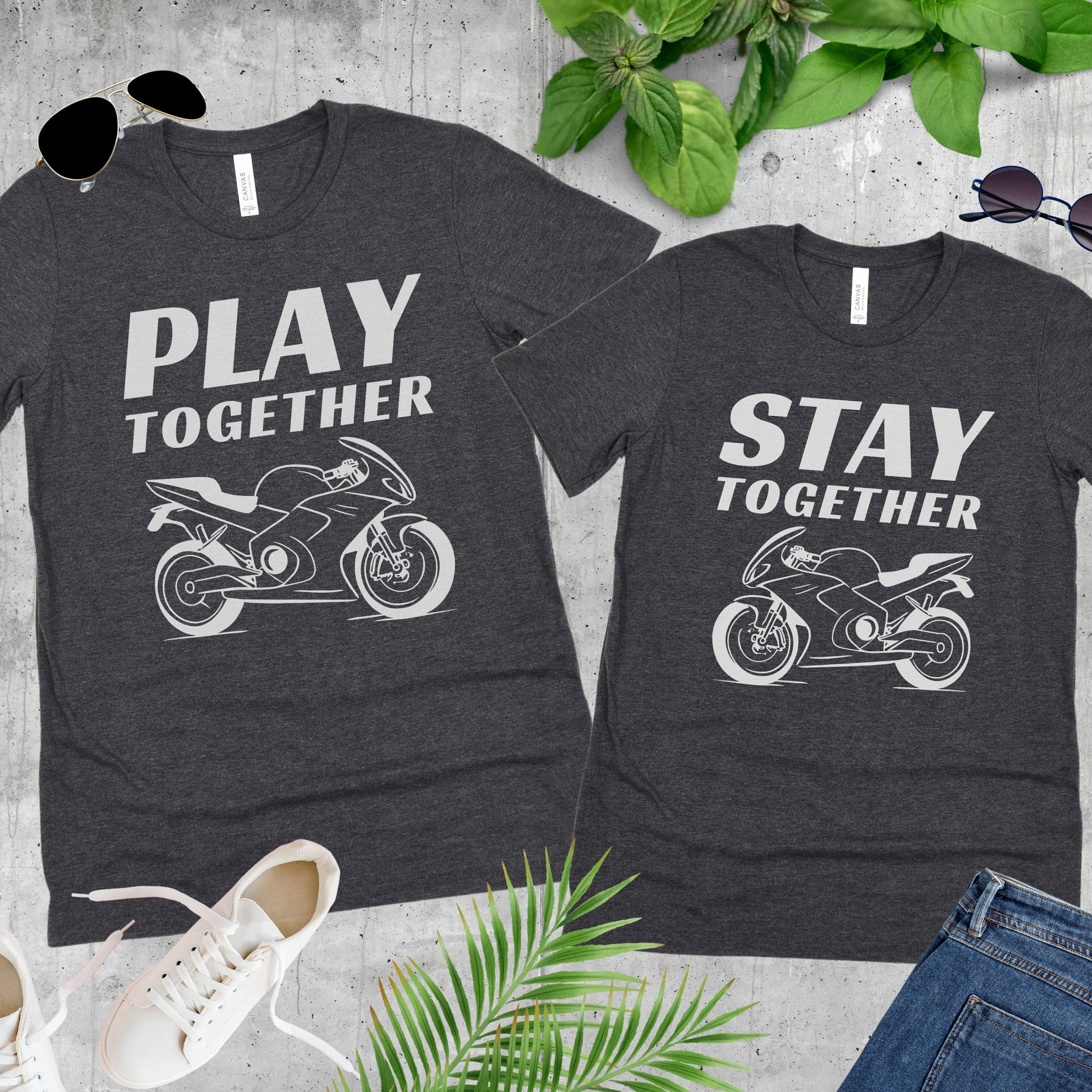 Treat the biker couple in your life to this Play Together, Stay Together sports bike motorcycle Gift. Great for Motorcycle Lovers and Biker Couples, Biker Mamas, Biker Papas as an anniversary gift.