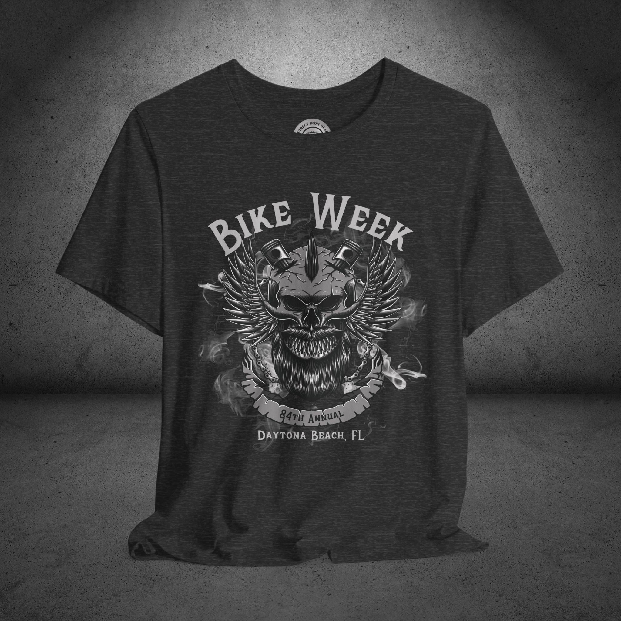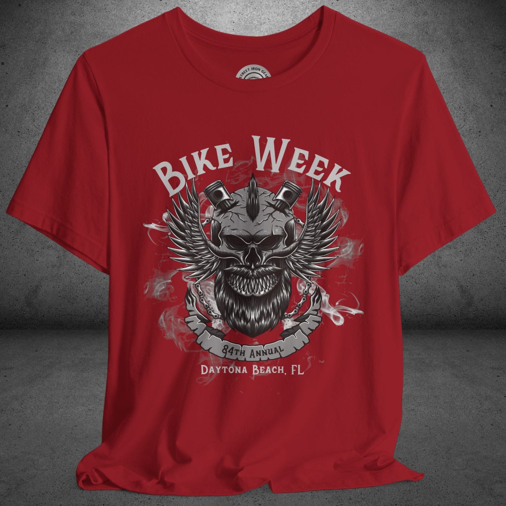 Gear up for the ultimate event with our Men's Daytona Beach Bike Week 2025 T-Shirt! Featuring a striking gothic winged bearded skull graphic with bold background flames, this tee captures the intensity and spirit of Bike Week. The design proudly displays "Bike Week 2025 Daytona Beach" and comes in a variety of colors and sizes up to 5XL, ensuring the perfect fit for every biker. Made from soft, durable fabric, it’s the ideal shirt for rallies, rides, or showcasing your biker pride.