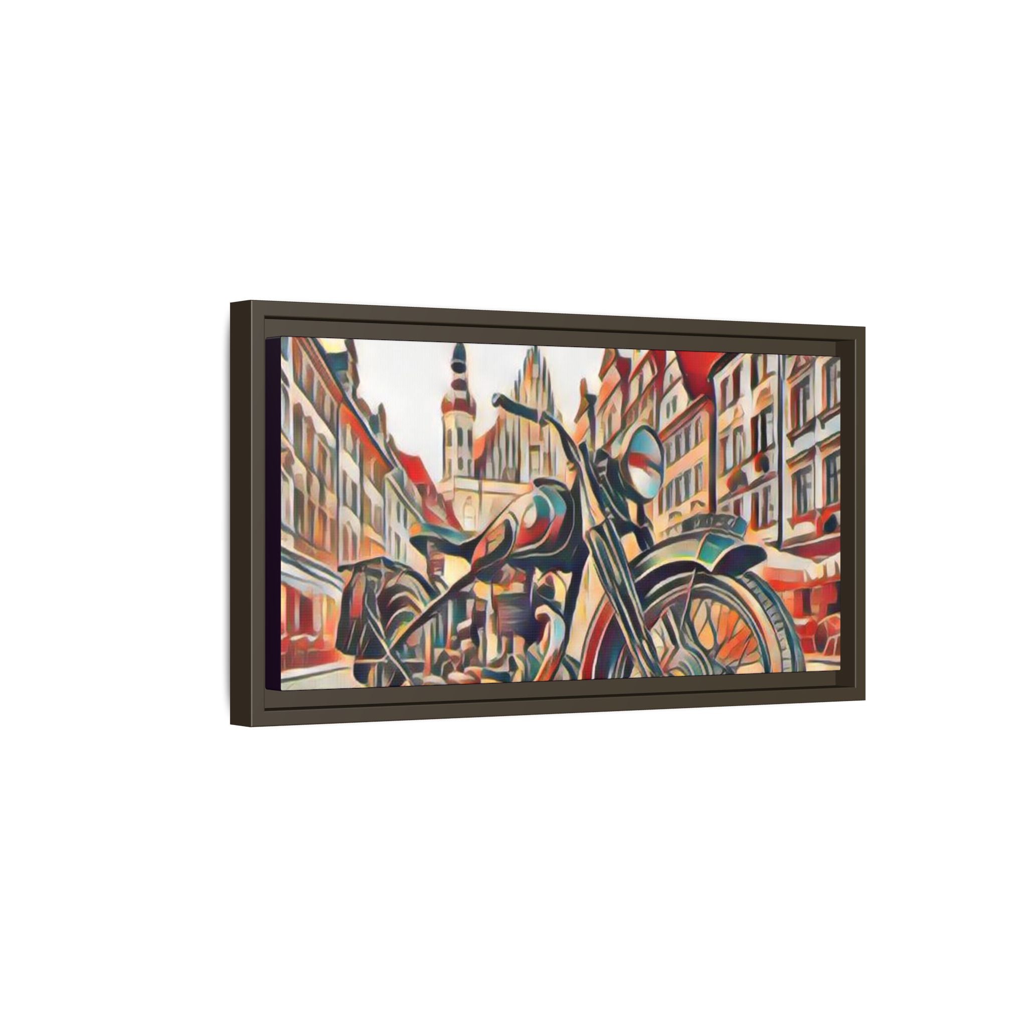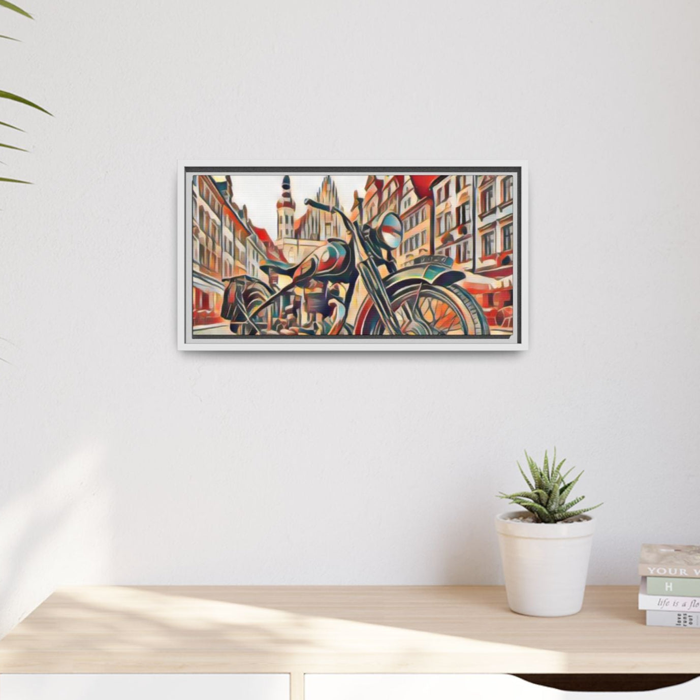 Transform your space with our 'Abstract Motorcycle in European City' framed canvas wall art, a stunning piece that merges the thrill of biking with urban elegance. This huge biker canvas wall decor, featuring an abstract motorcycle design, is the perfect gift for motorcycle lovers and a striking addition to any collection of motorcycle art prints. Let your personality be reflected on the artwork adorning your walls.
