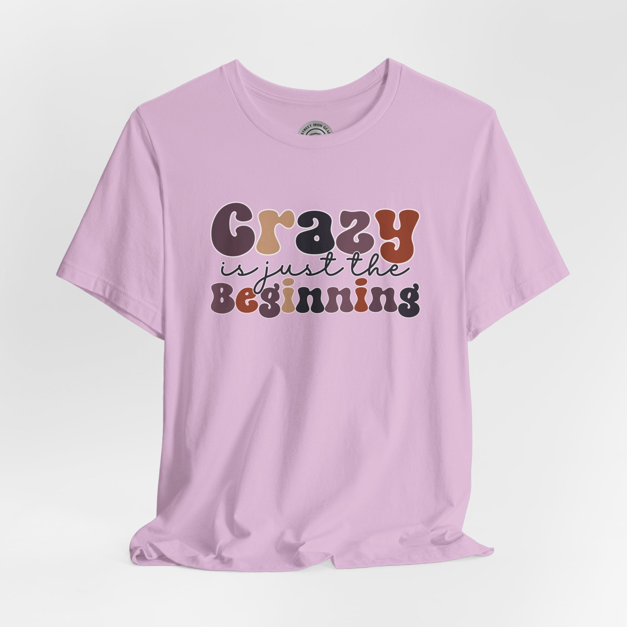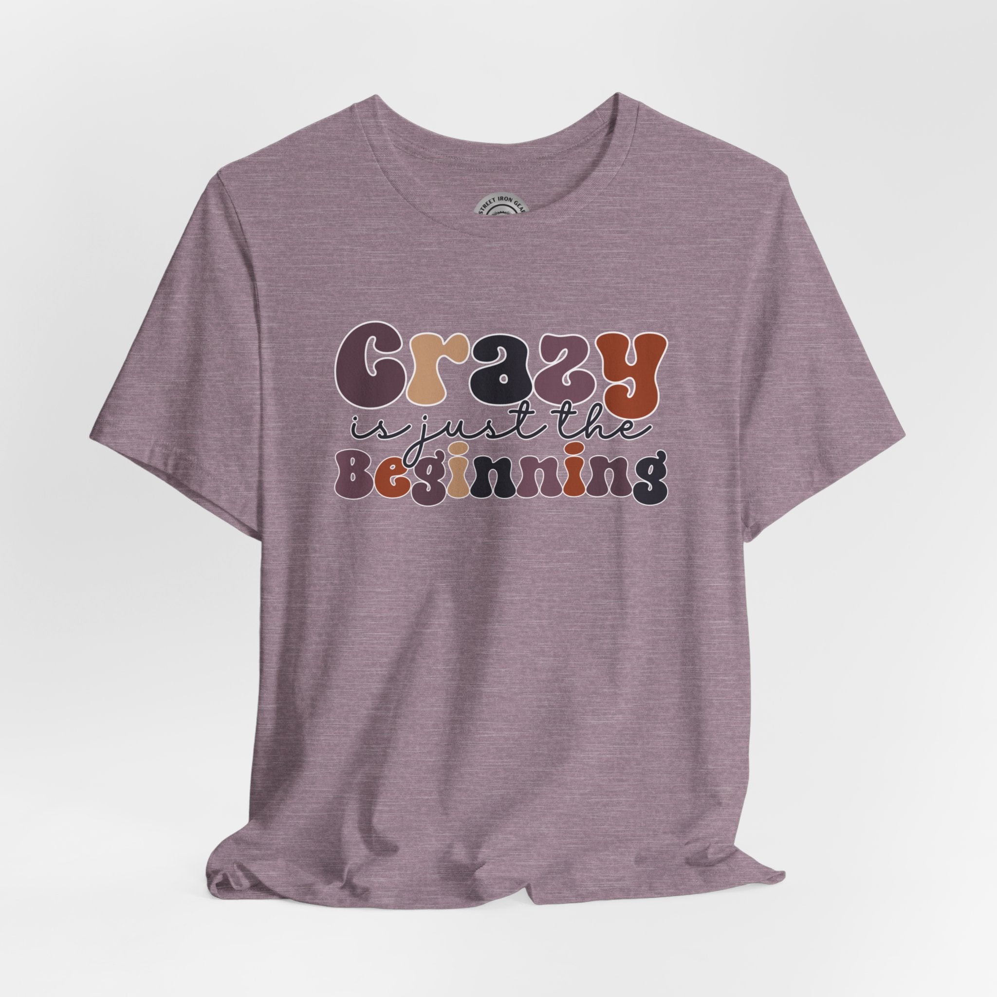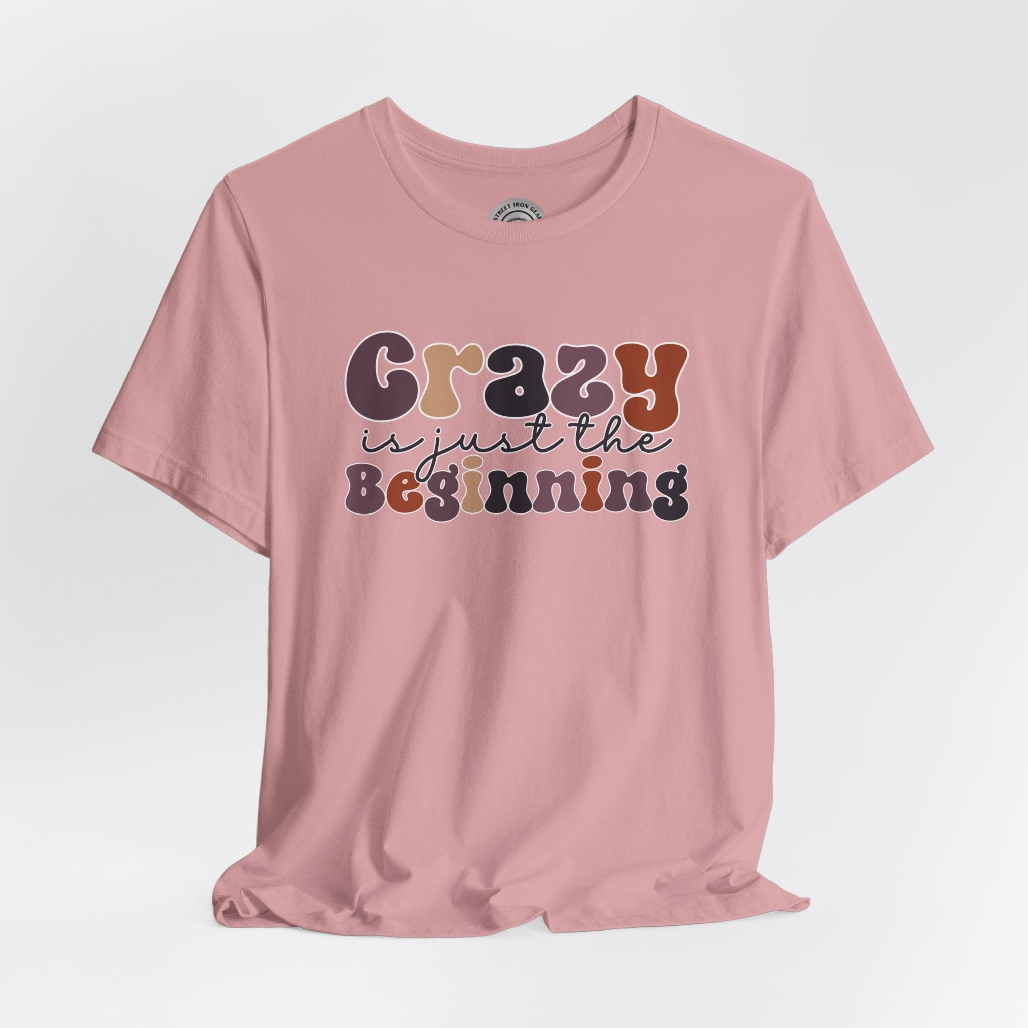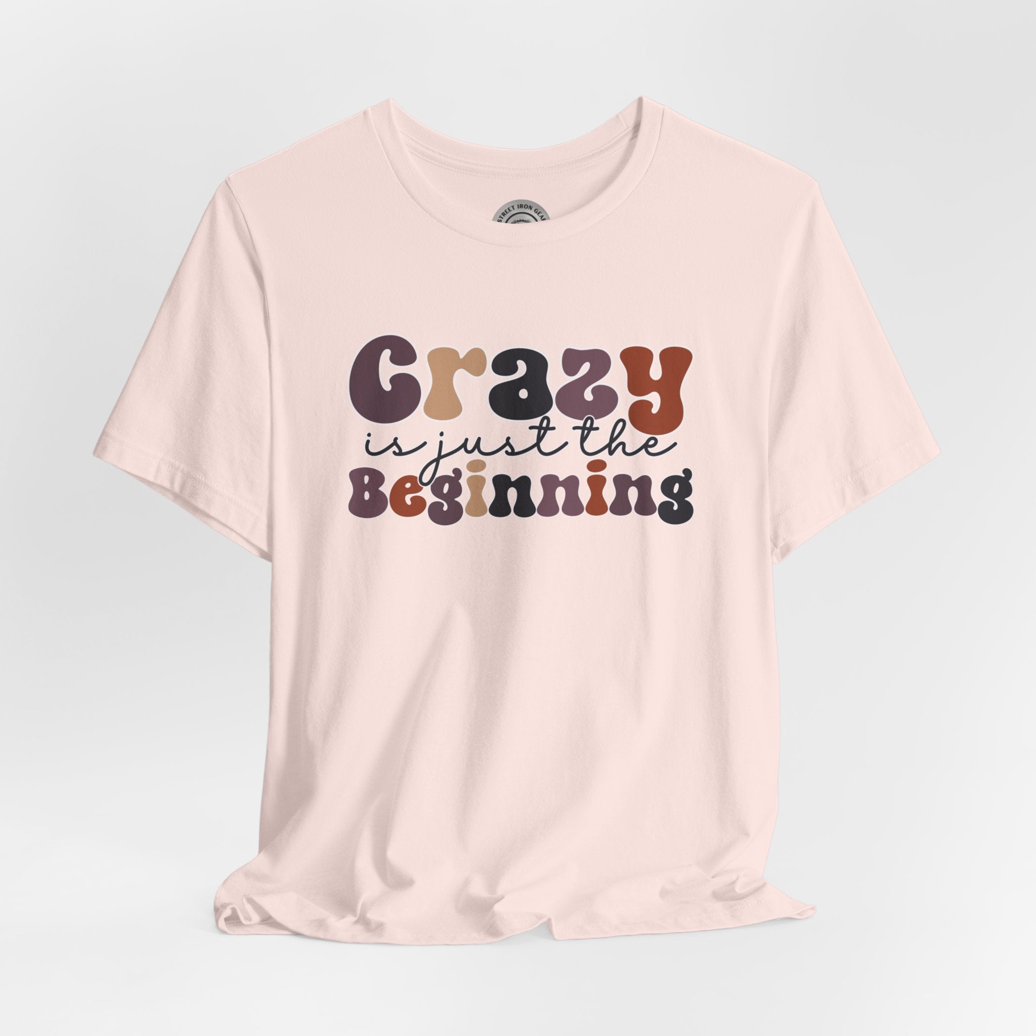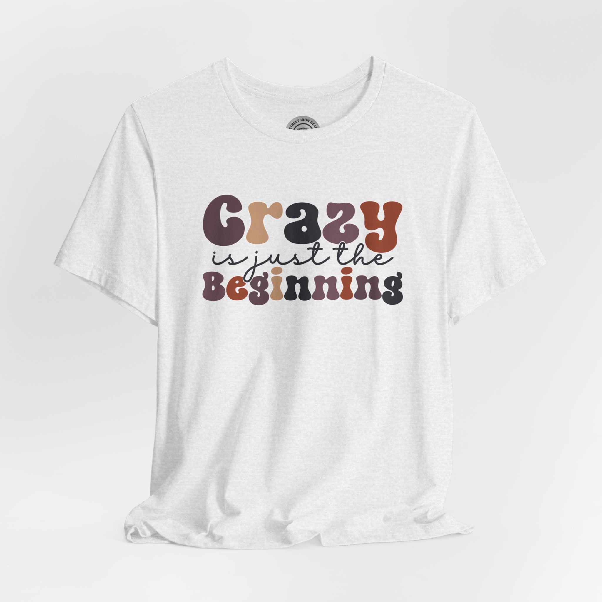 Get your retro groove on with our 'Crazy is Just Beginning' T-shirt. This women's retro bohemian shirt combines colorful, vintage fonts with a touch of sarcasm. Your crazy journey starts here with this fun and bold Retro Sarcastic Phrase Shirt.