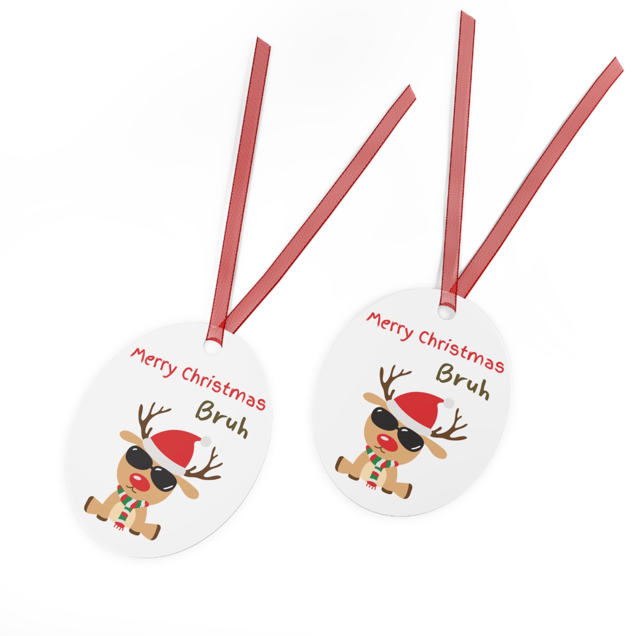 Each ornament comes with a separate red ribbon for hanging