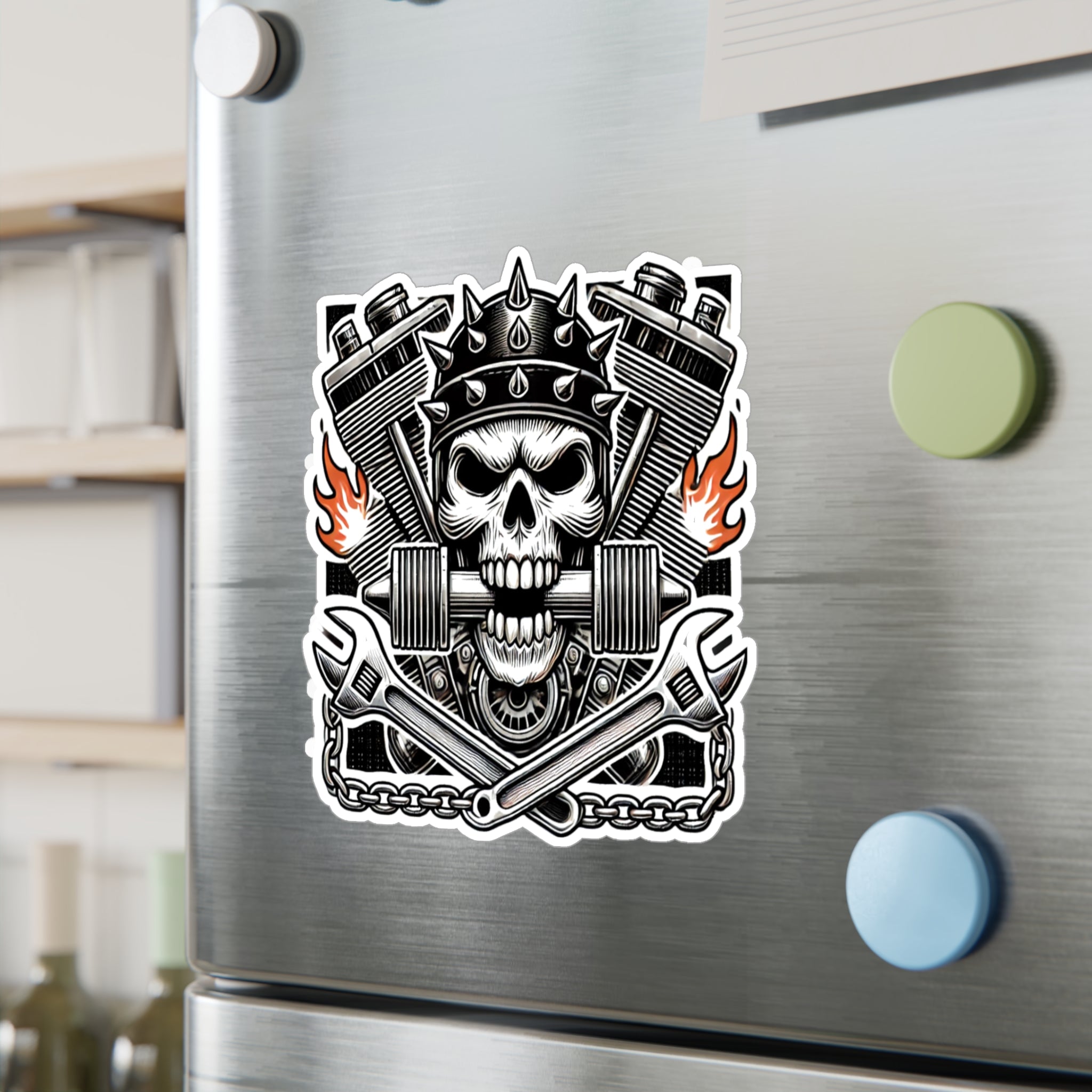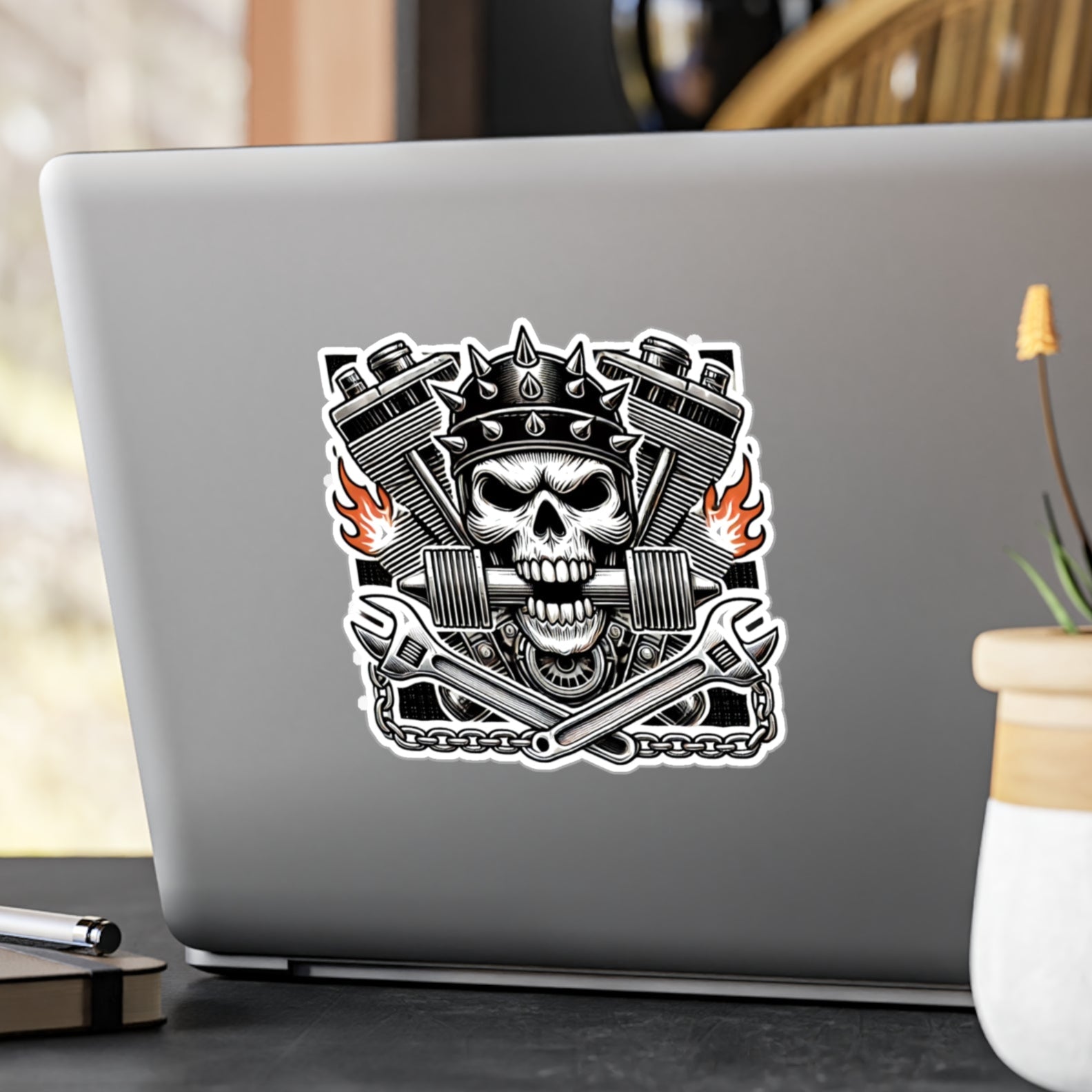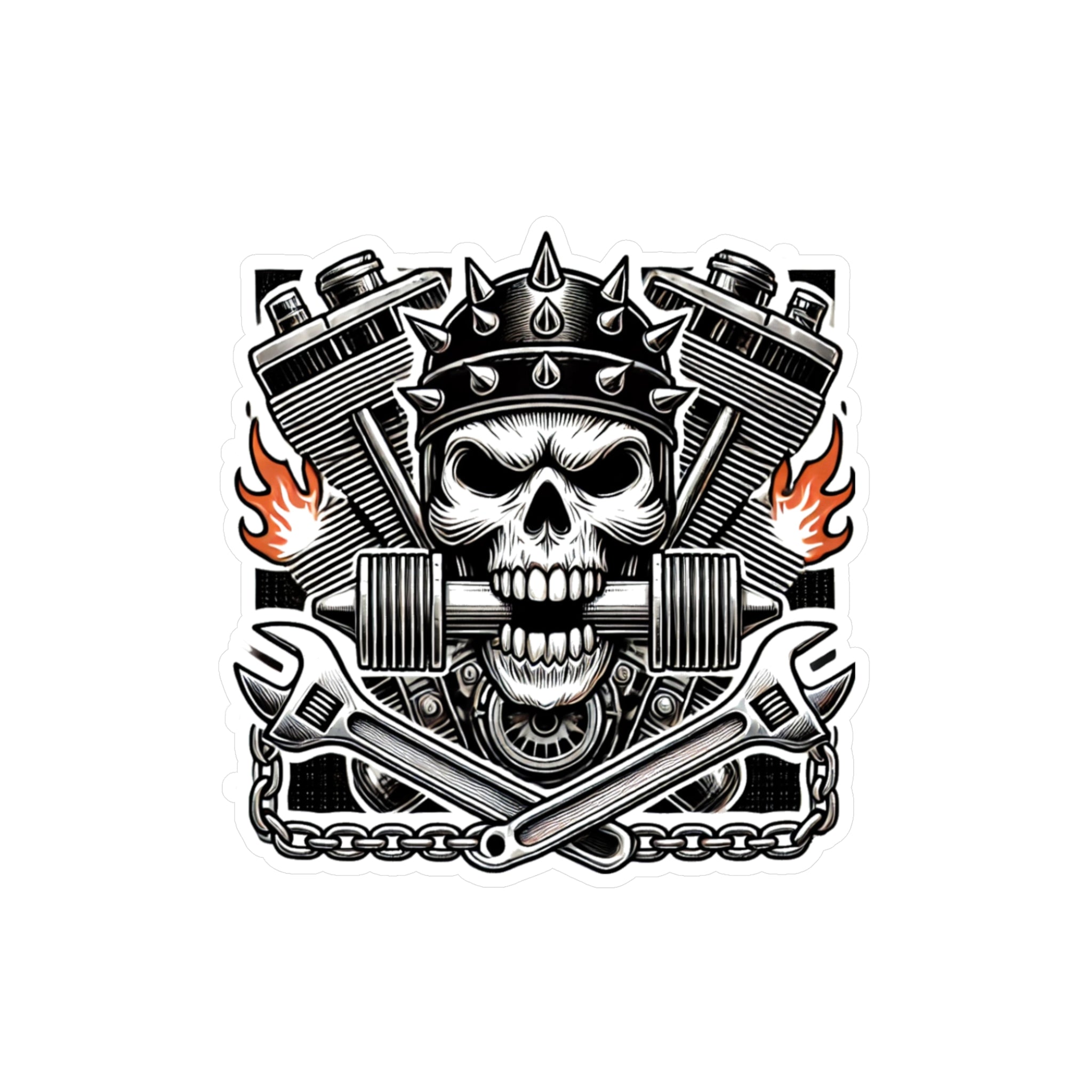 Rev up your style with our Gearhead Kiss-Cut Decal, featuring a bold design of skulls, pistons, flames, and wrenches in a classic biker aesthetic. Perfect for customizing your motorcycle, helmet, toolbox, or car, this high-quality decal is available in sizes ranging from 3" square to 8" square to fit any application. Made with durable materials and vibrant colors, it’s the ultimate accessory for gearheads, bikers, and automotive enthusiasts who love traditional biker culture.