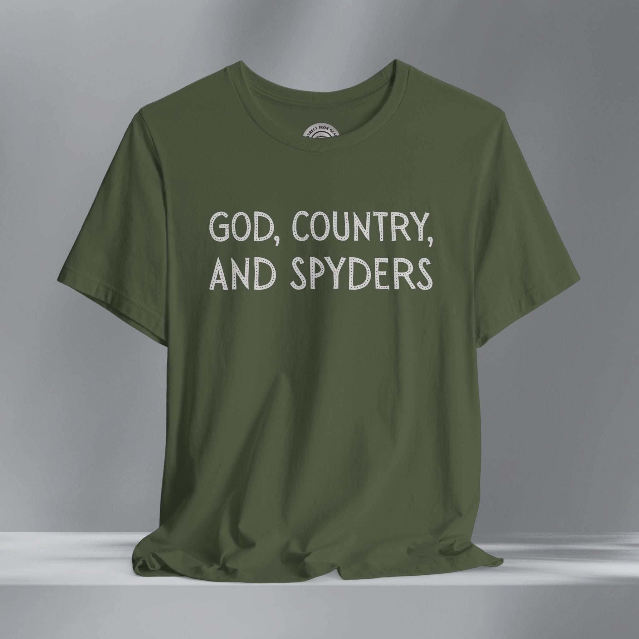 Show off your love for faith, patriotism, and the open road with this bold Can-Am Spyder themed T-shirt, featuring a minimalist grey text design that proudly declares your top three priorities. Designed for comfort and built to last, this shirt is perfect for Spyder riders who live with purpose and ride with pride. Whether you're heading to a rally, cruising scenic roads, or just want to represent your lifestyle, this tee is a must-have for your biker wardrobe or makes a thoughtful gift for Can-Am enthusiasts.