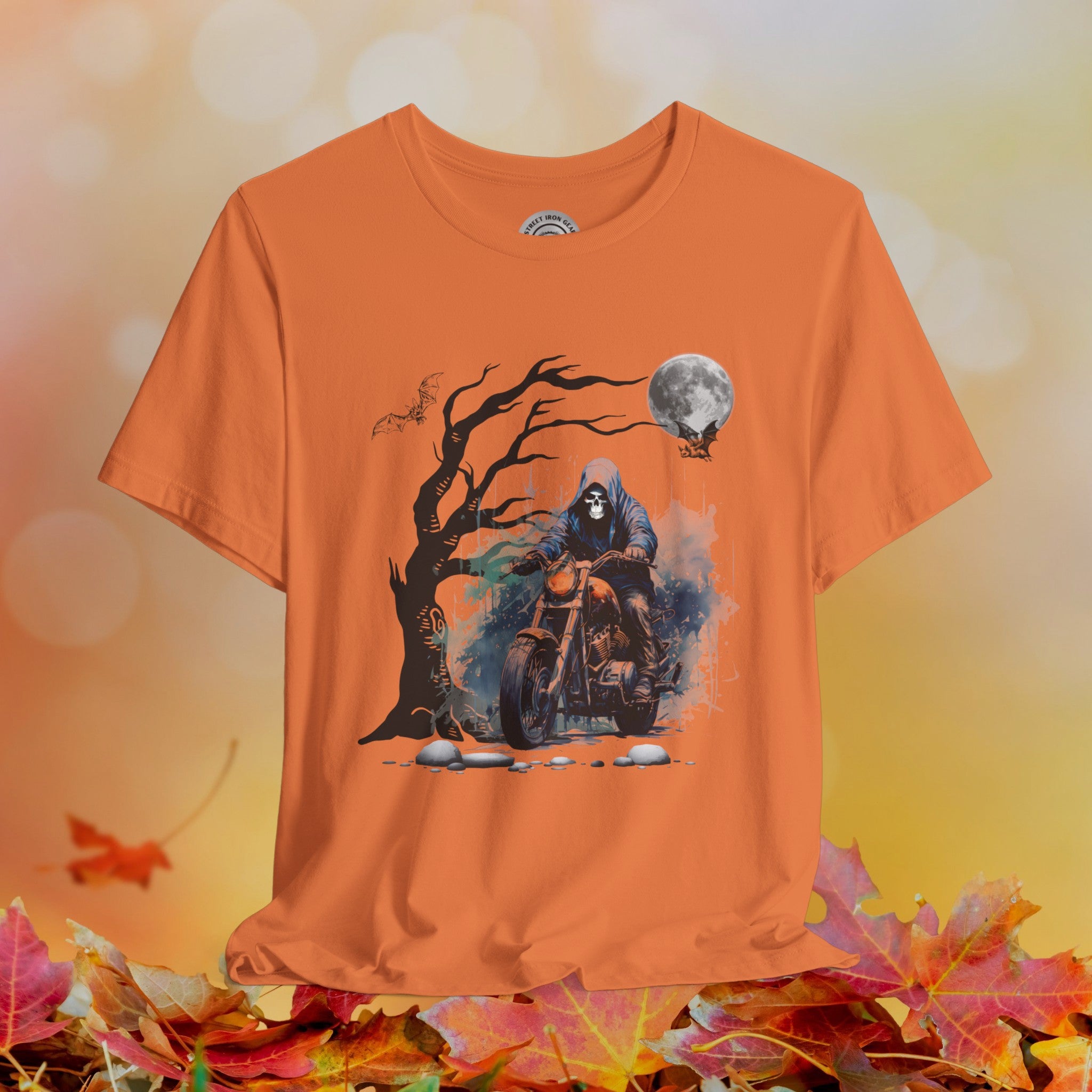 Celebrate Halloween with a twist in our Retro Skull Samhain T-Shirt, featuring a vintage-style skull graphic perfect for bikers and Halloween enthusiasts alike. This motorcycle-themed Halloween tee blends spooky charm with retro flair, making it an ideal gift for the season.