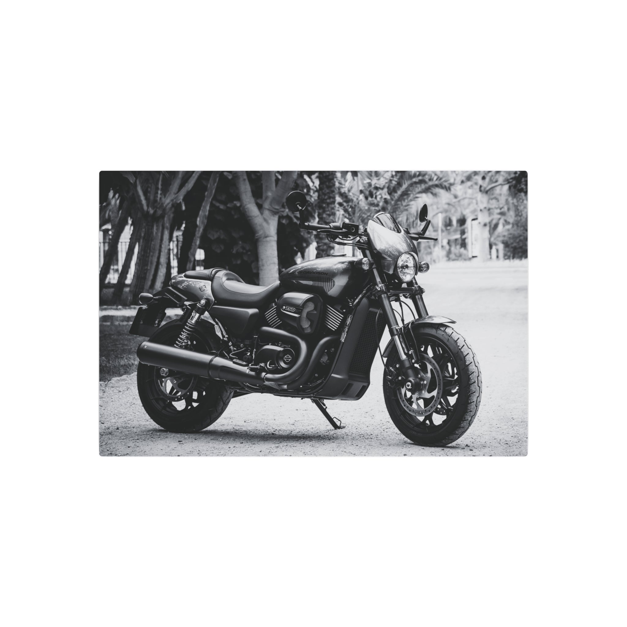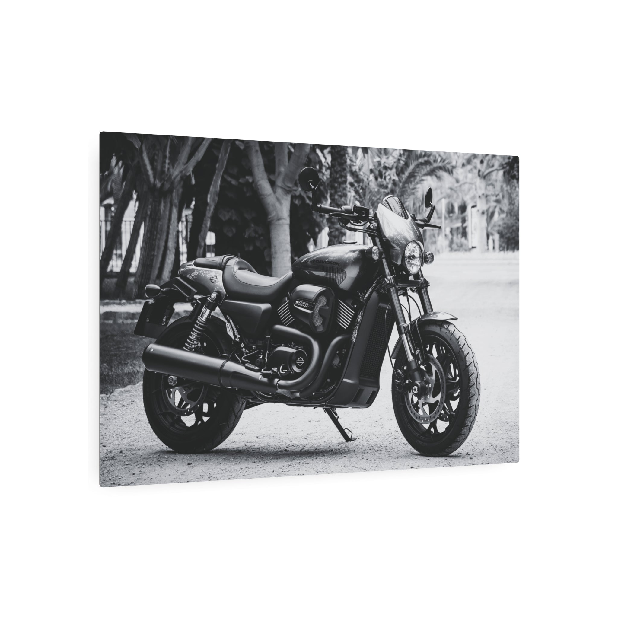 Bring the freedom of the open road into your space with this Harley Davidson Metal Print Poster, featuring a stunning black and white photograph of a Harley cruiser parked on a rugged gravel road with a tropical backdrop. This high-quality metal print offers a sleek, modern look with rich contrast and crisp details, making it the perfect wall decor for motorcycle enthusiasts, Harley lovers, and biker-themed spaces. Durable and ready to hang, this Harley Davidson-inspired artwork is a must-have for any rider who lives for the thrill of the road.