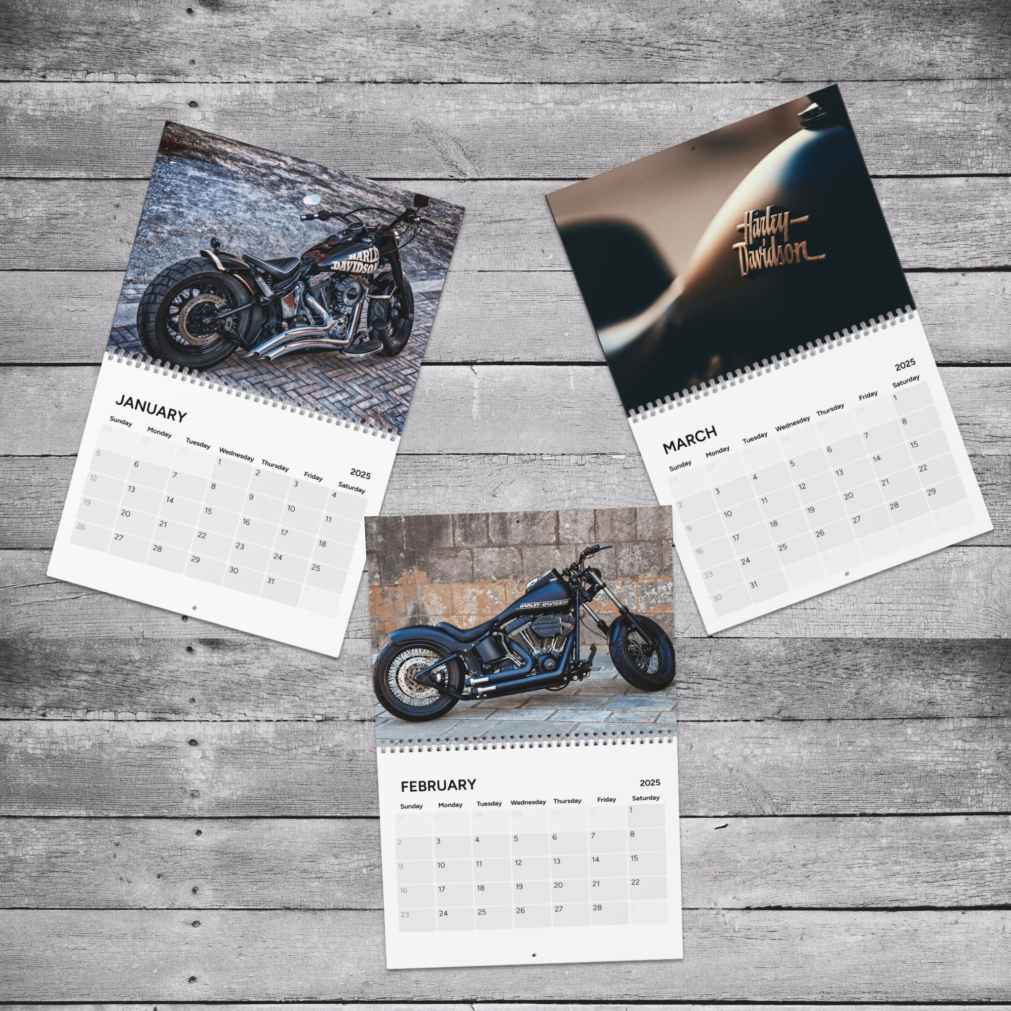 Celebrate the beauty of Harley Davidson motorcycle with our Harley Wall Calendar for 2025. Each month features a stunning image of a Harley Davidson motorcycle, capturing the essence of timeless biker culture. Perfect for motorcycle enthusiasts, this calendar makes a thoughtful gift for fans of Harley bikes, garage decor, or anyone who appreciates the history of motorcycling. With ample space for notes and a sleek design, it's not just a functional calendar but also a striking piece of wall decor. Whether you’re a fan or looking for the perfect motorcycle gift, this calendar is a must-have for every Harley Davidson lover.