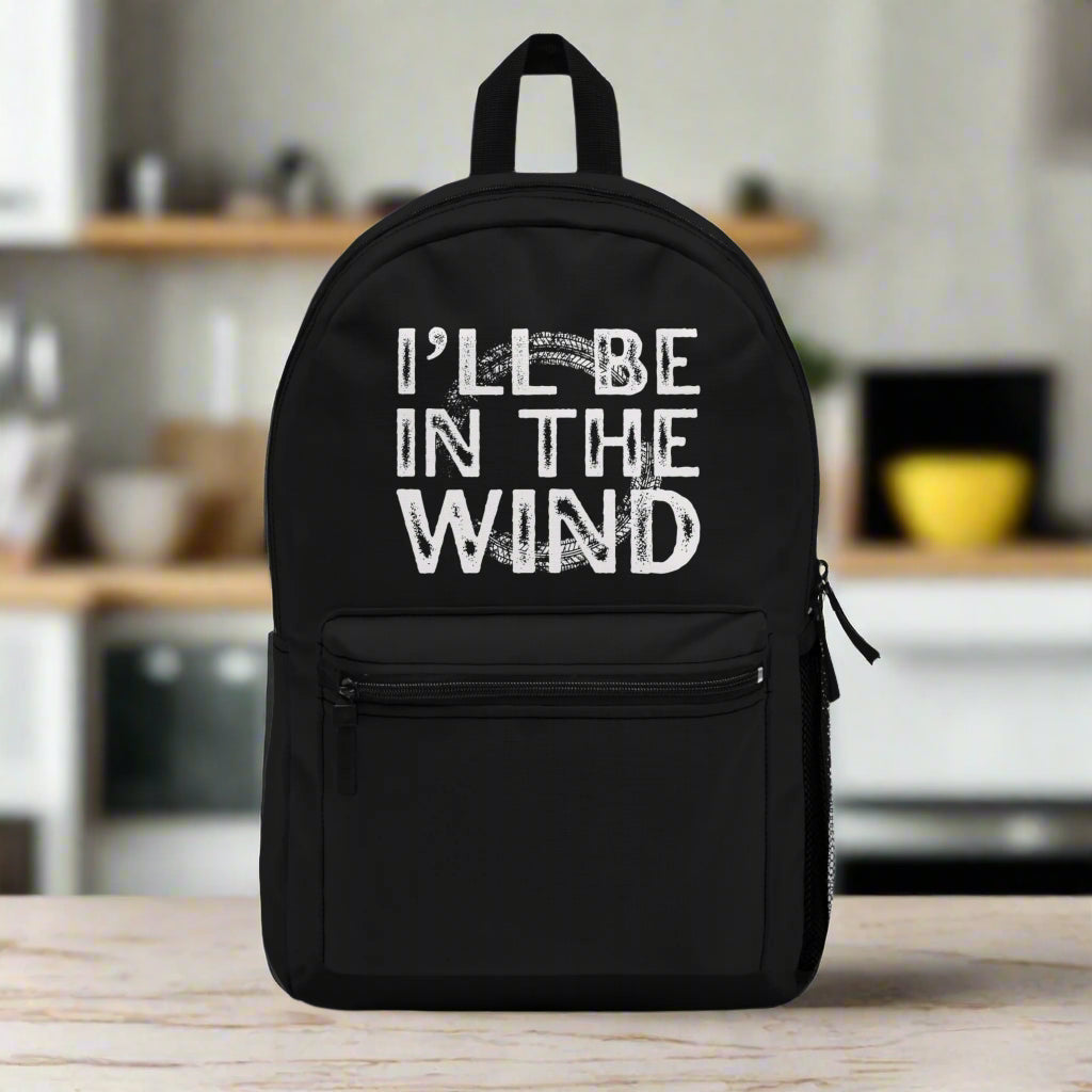 Hit the road in style with our motorcycle-themed backpack featuring a grunge-style tire track design in the shape of a circle and the bold text "I'll be in the Wind." Crafted in sleek black, this spacious backpack...