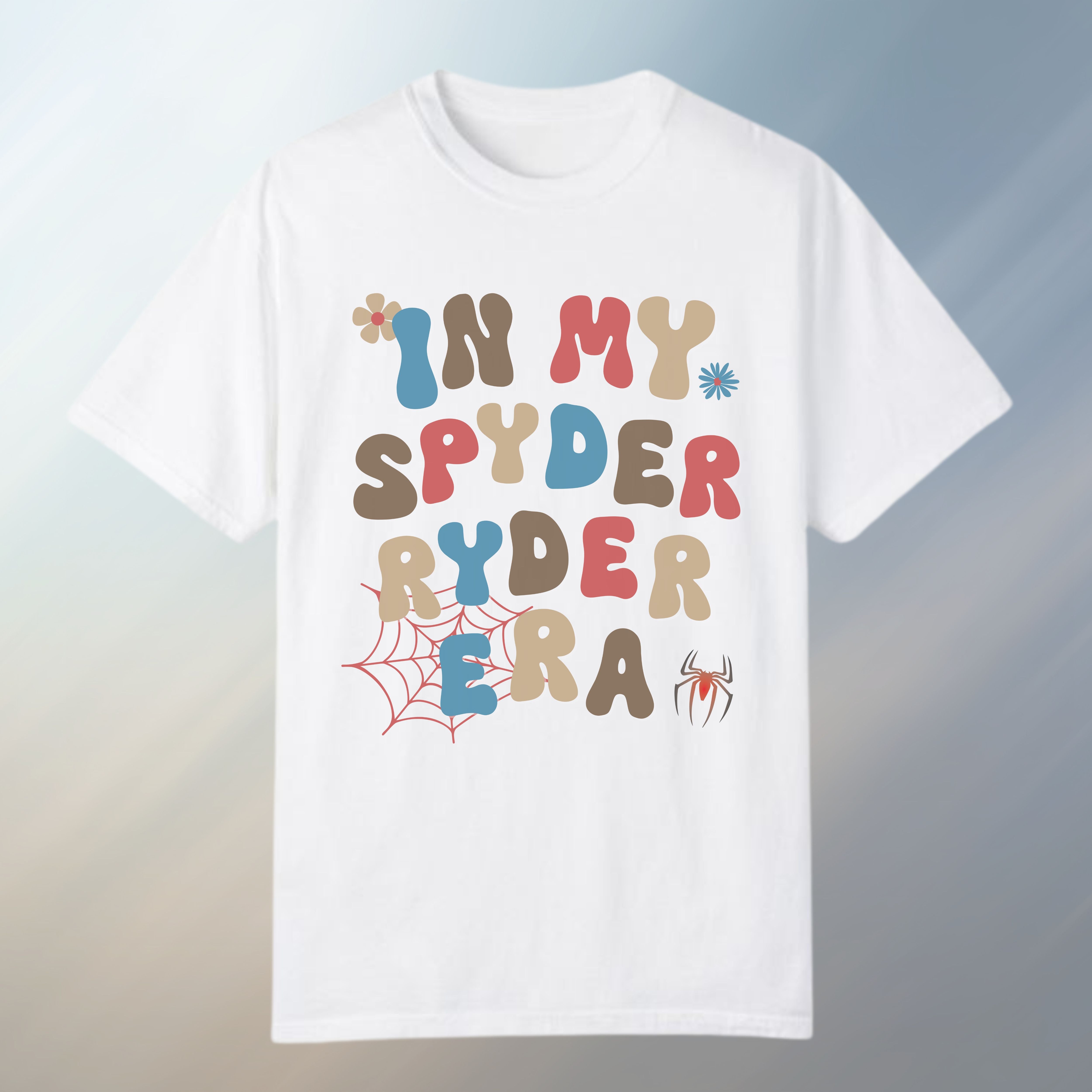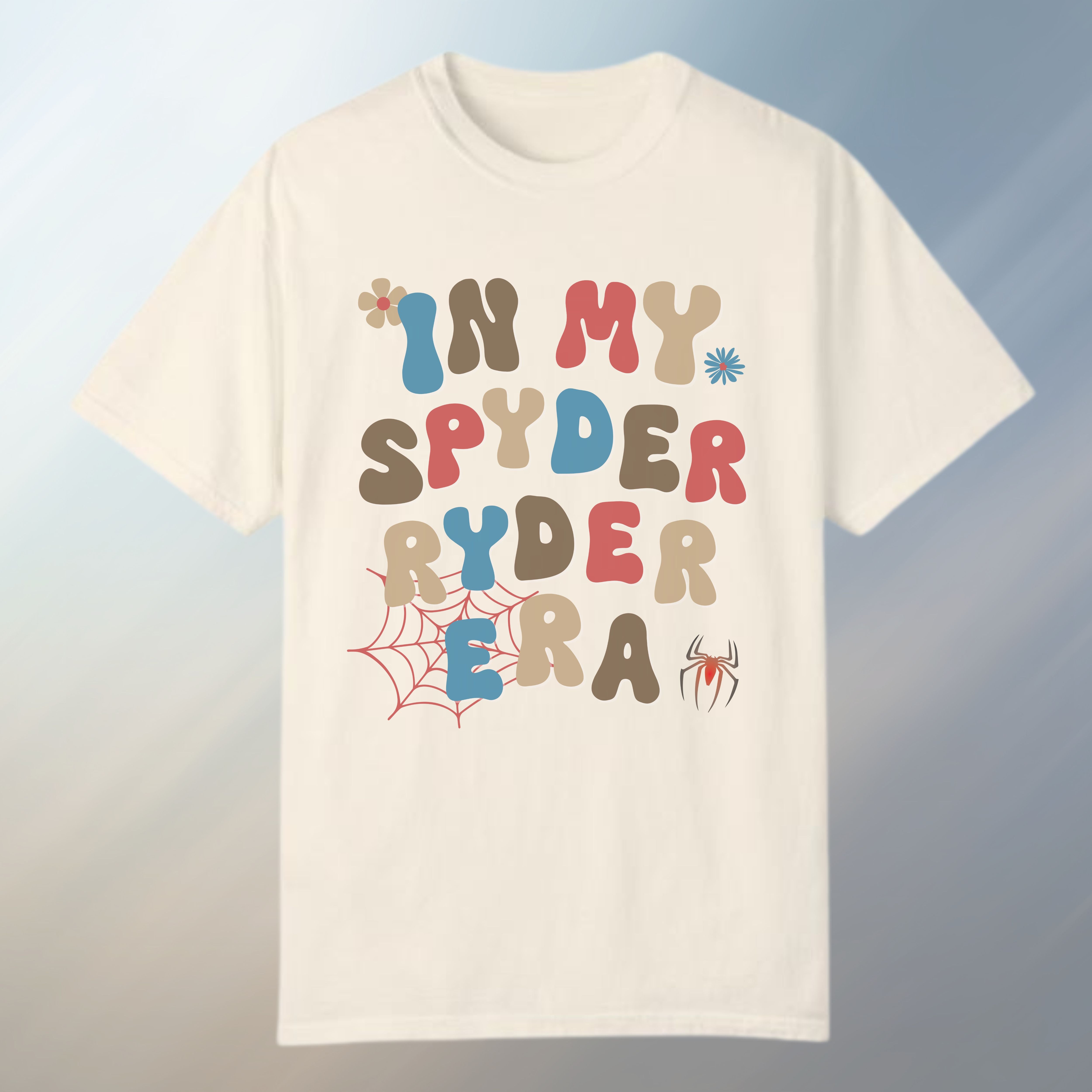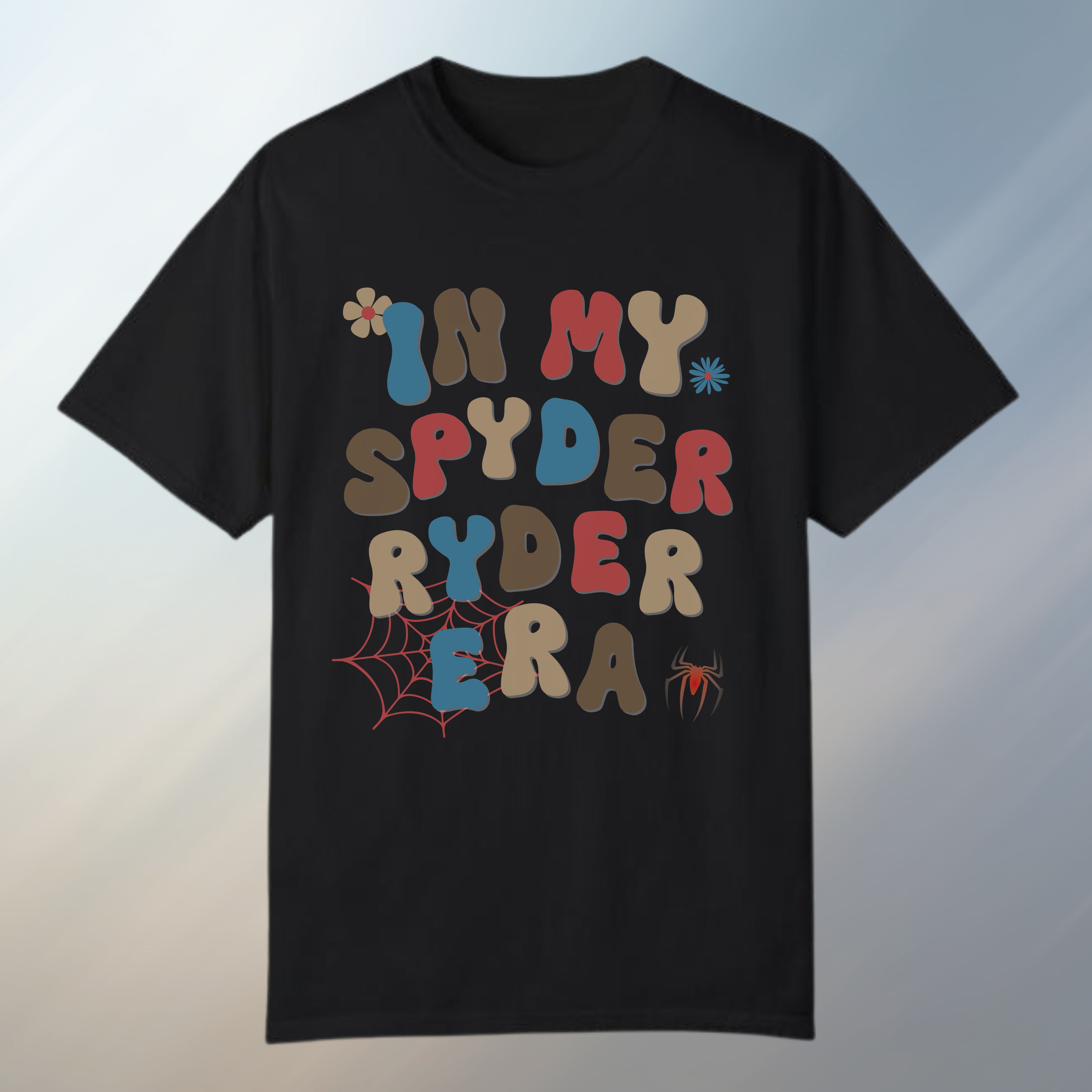 Rev up your style with our Boho style TShirt that boldly declares "In My Spyder Ryder Era" in a retro font on the back. It's the perfect tee to showcase your love for the open road and your vibrant, adventurous spirit. Embrace the boho-inspired design and hit the road in style.