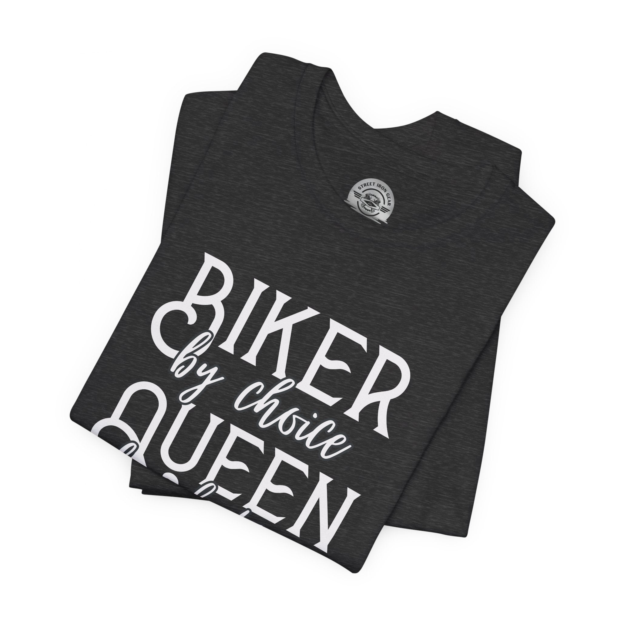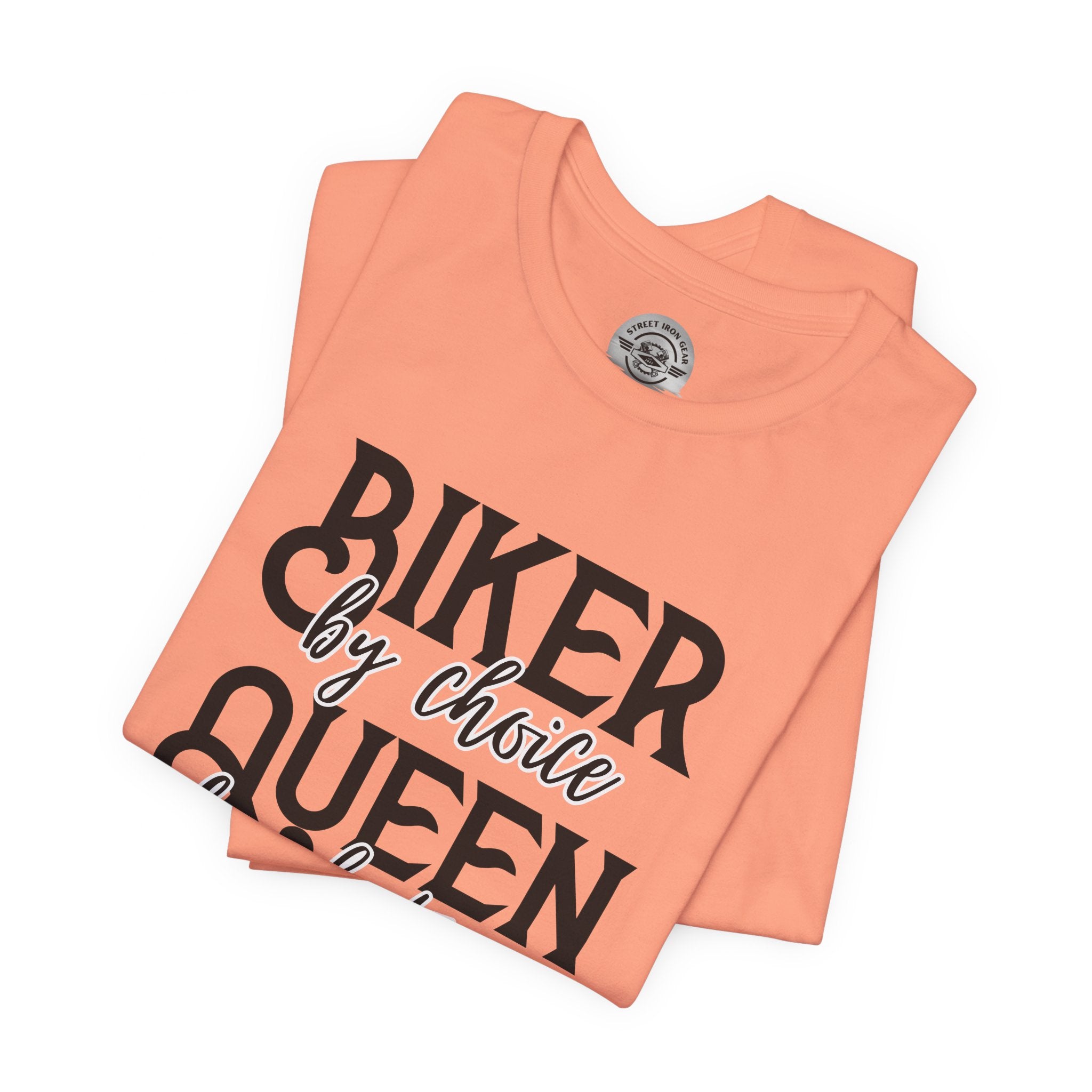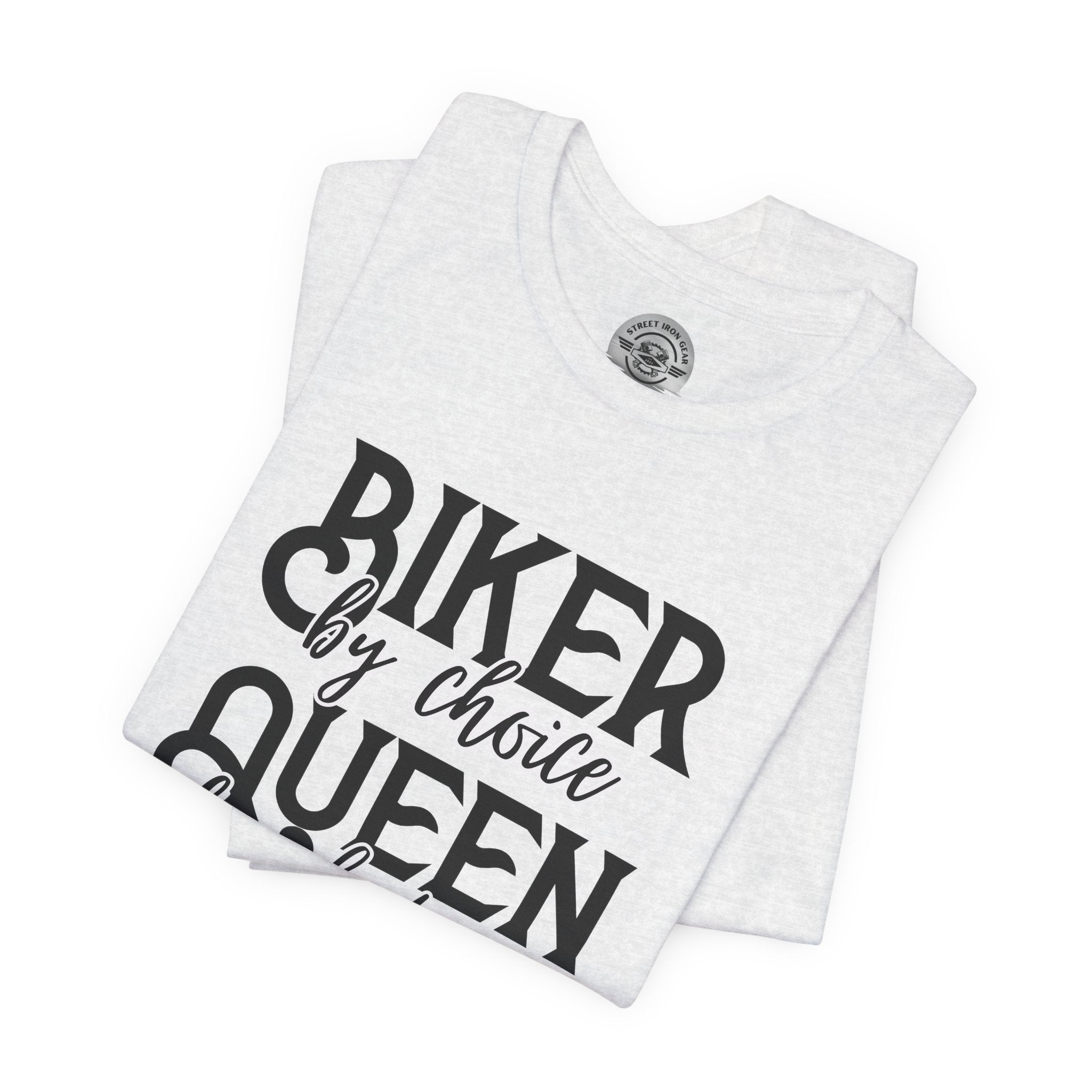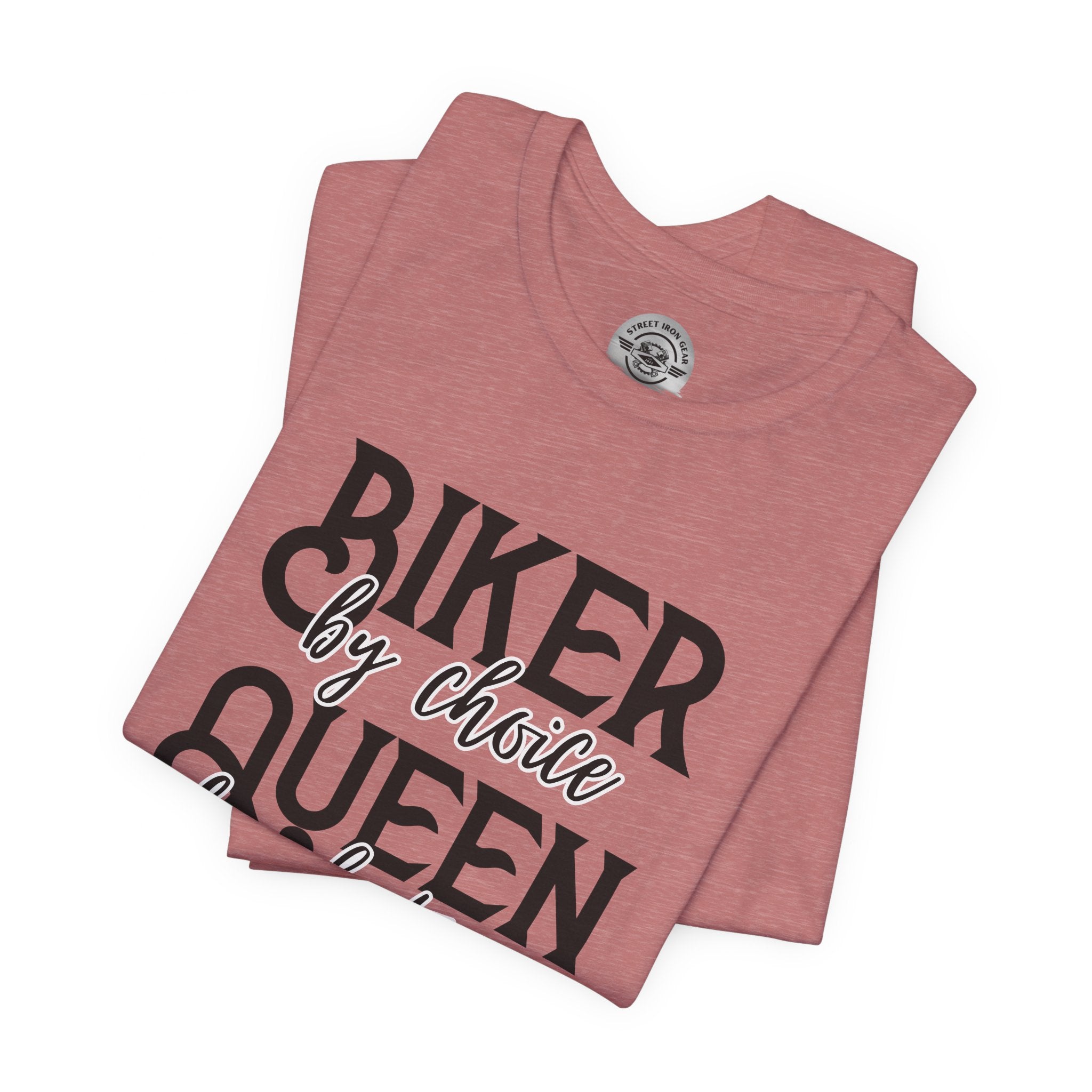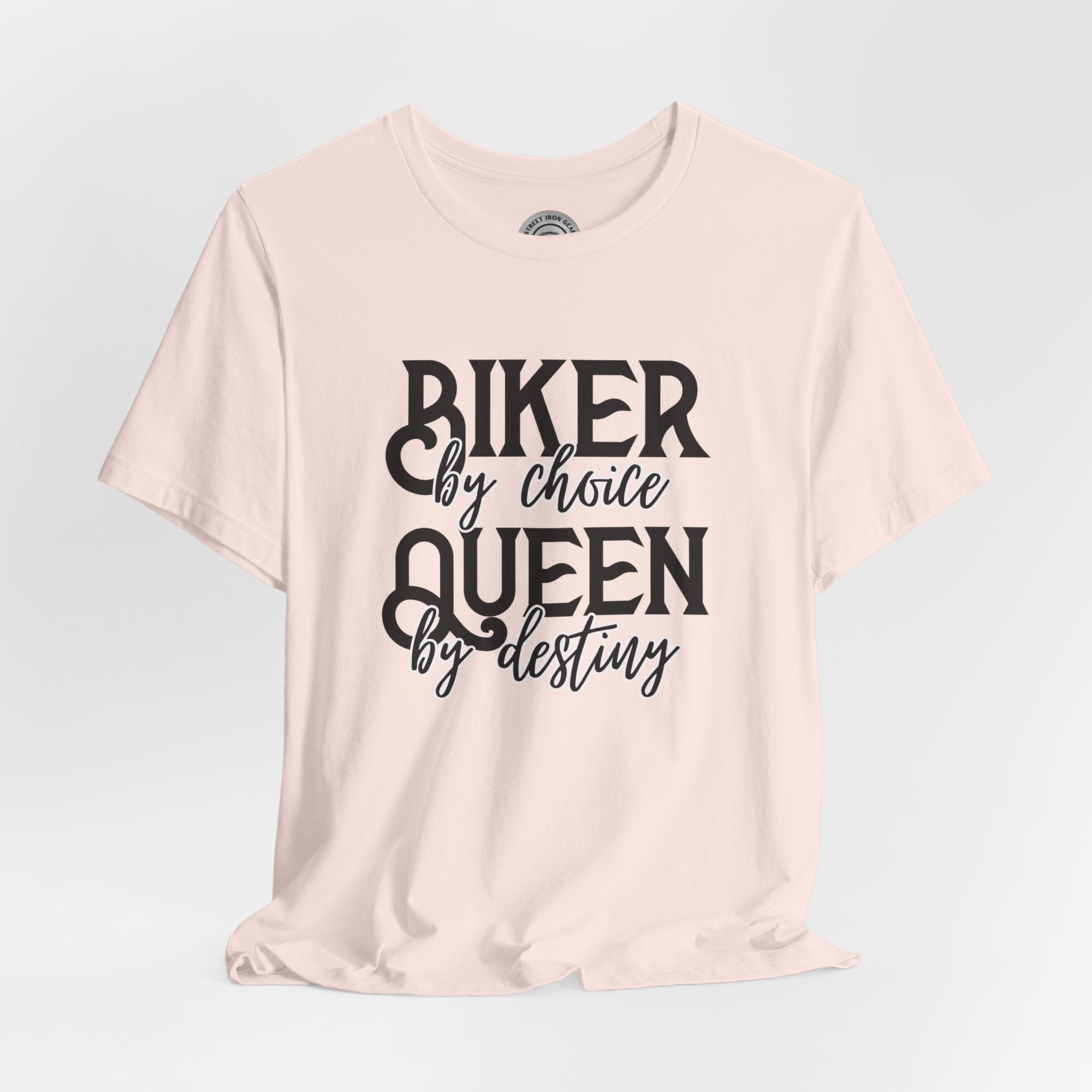 Embrace your inner queen with our 'Biker by Choice, Queen by Destiny'. This shirt combines bold and script fonts for a stylish statement that celebrates your biker spirit and regal confidence.