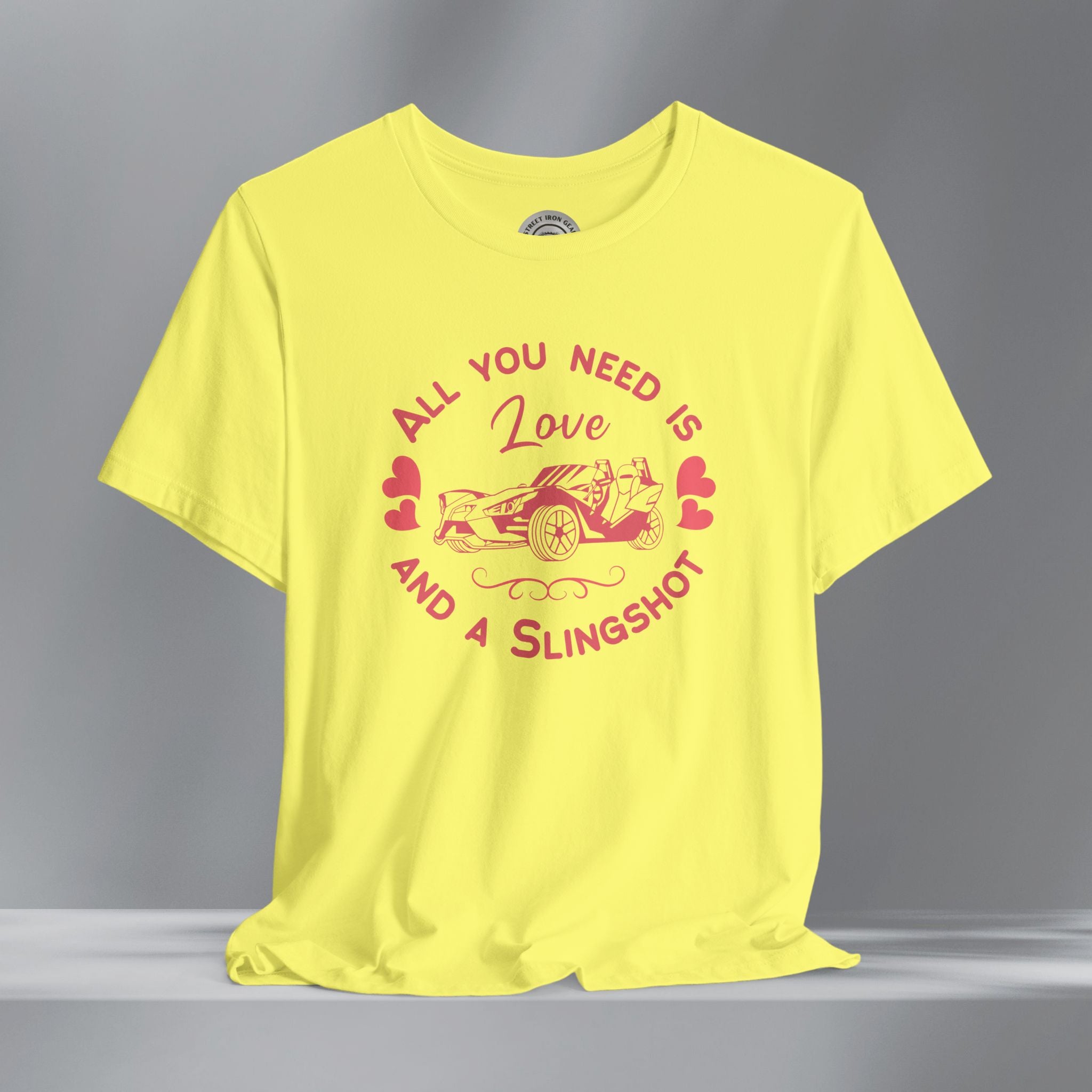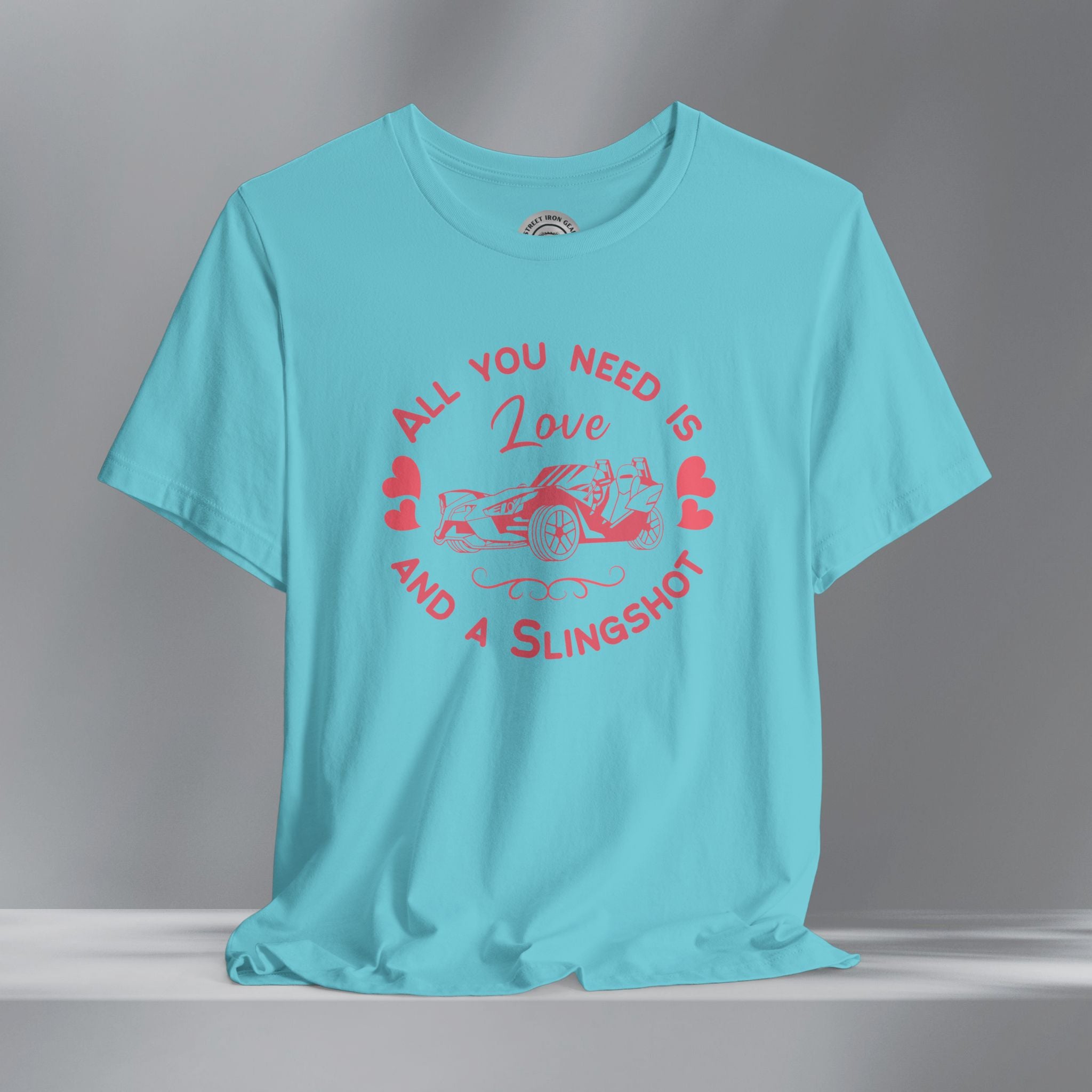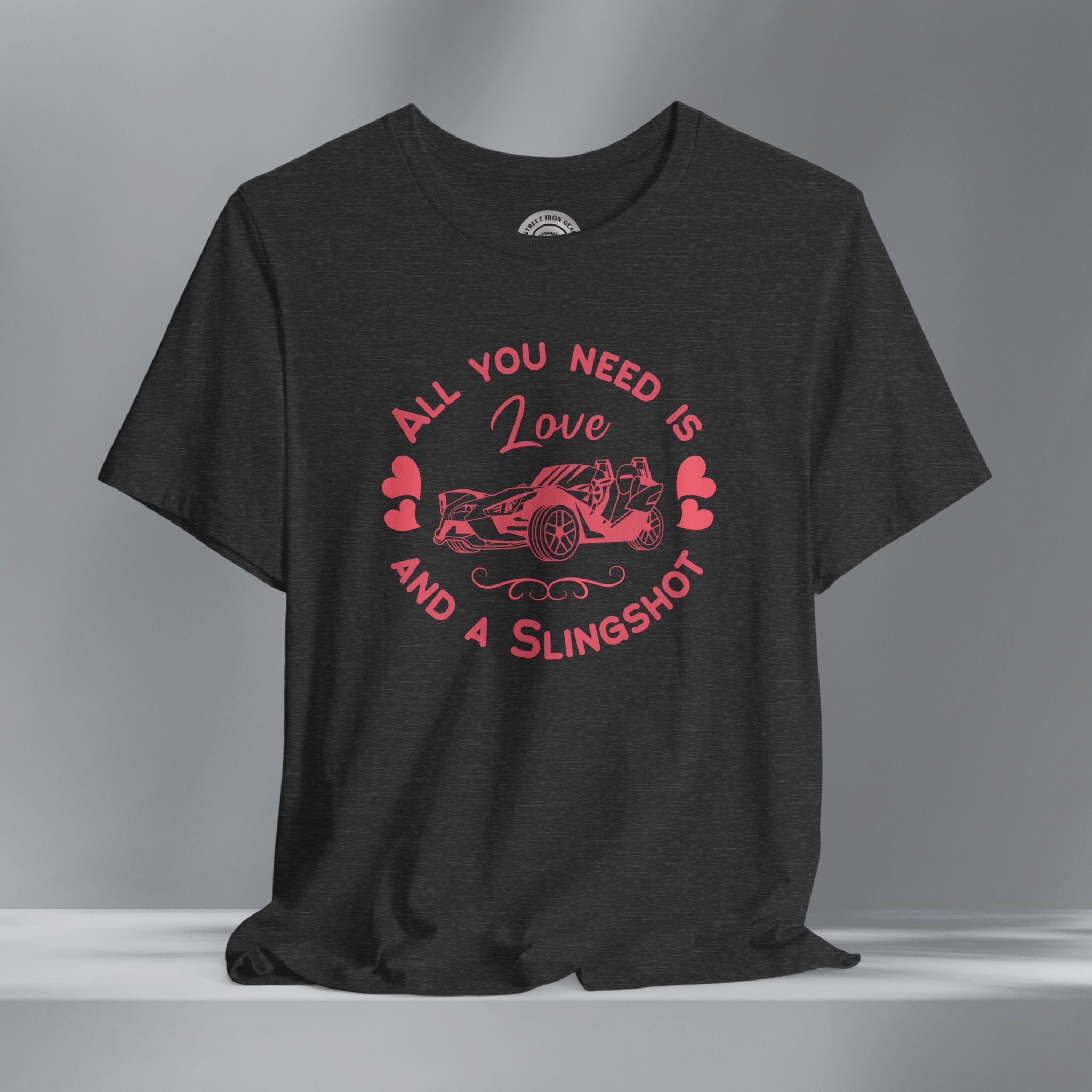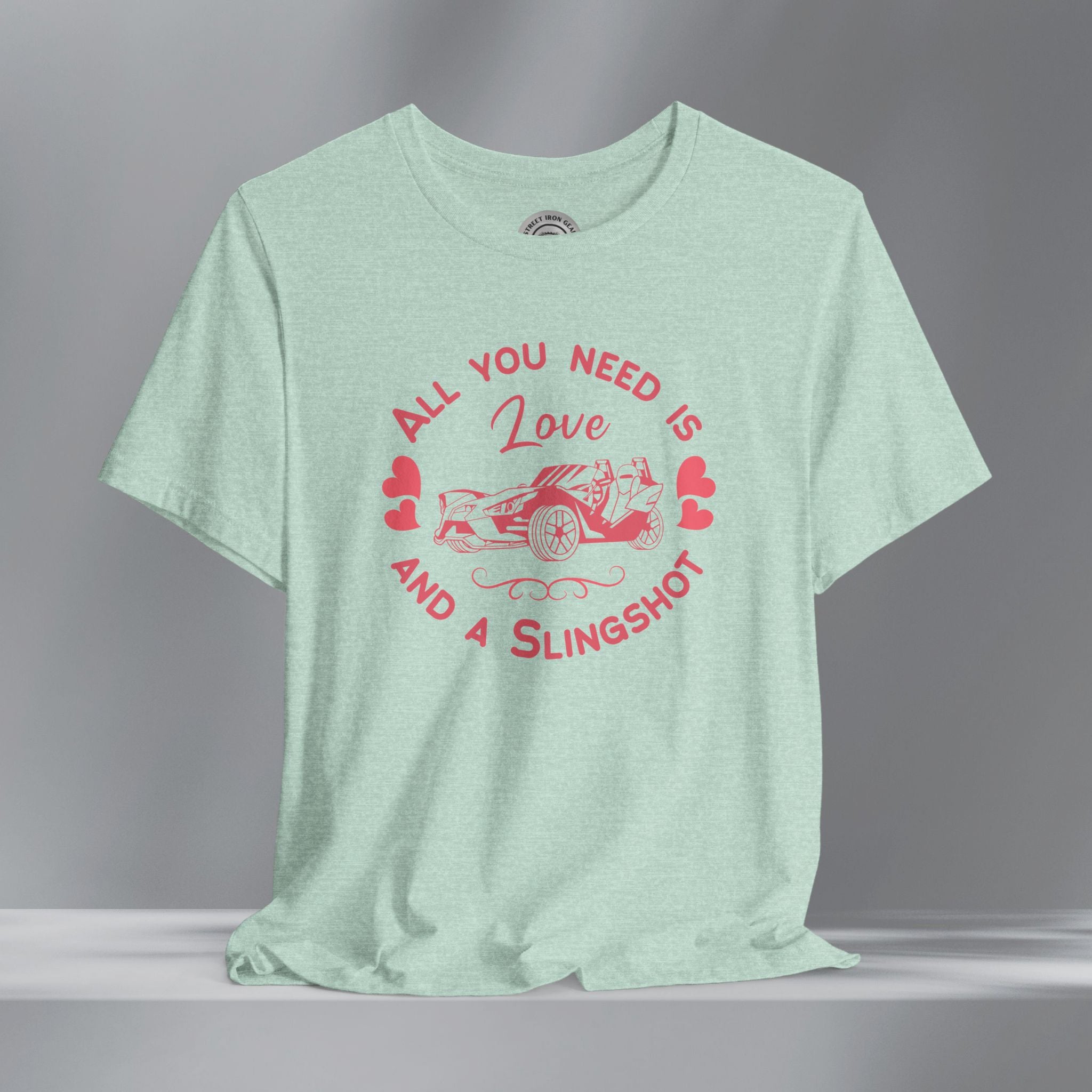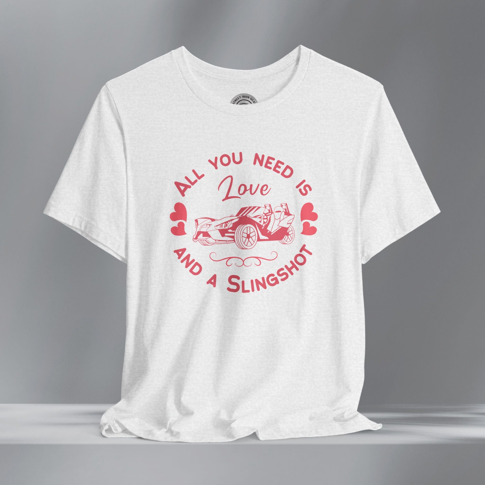 Show off your love for open-air adventures with this Polaris Slingshot-themed T-shirt, perfect for Slingshot owners and fans alike! The design features a bold boho heart graphic paired with a stylized Can-Am Slingshot, surrounded by a circular text layout that captures the spirit of the road and reads All you need is Love and a Slingshot. This tee blends boho vibes and motorsport passion, making it a must-have for casual rides, rally weekends, or as a thoughtful gift for Slingshot drivers and 3-wheel roadster enthusiasts. Made with soft, breathable fabric and available in multiple sizes, it’s perfect for both men and women who live for the ride.