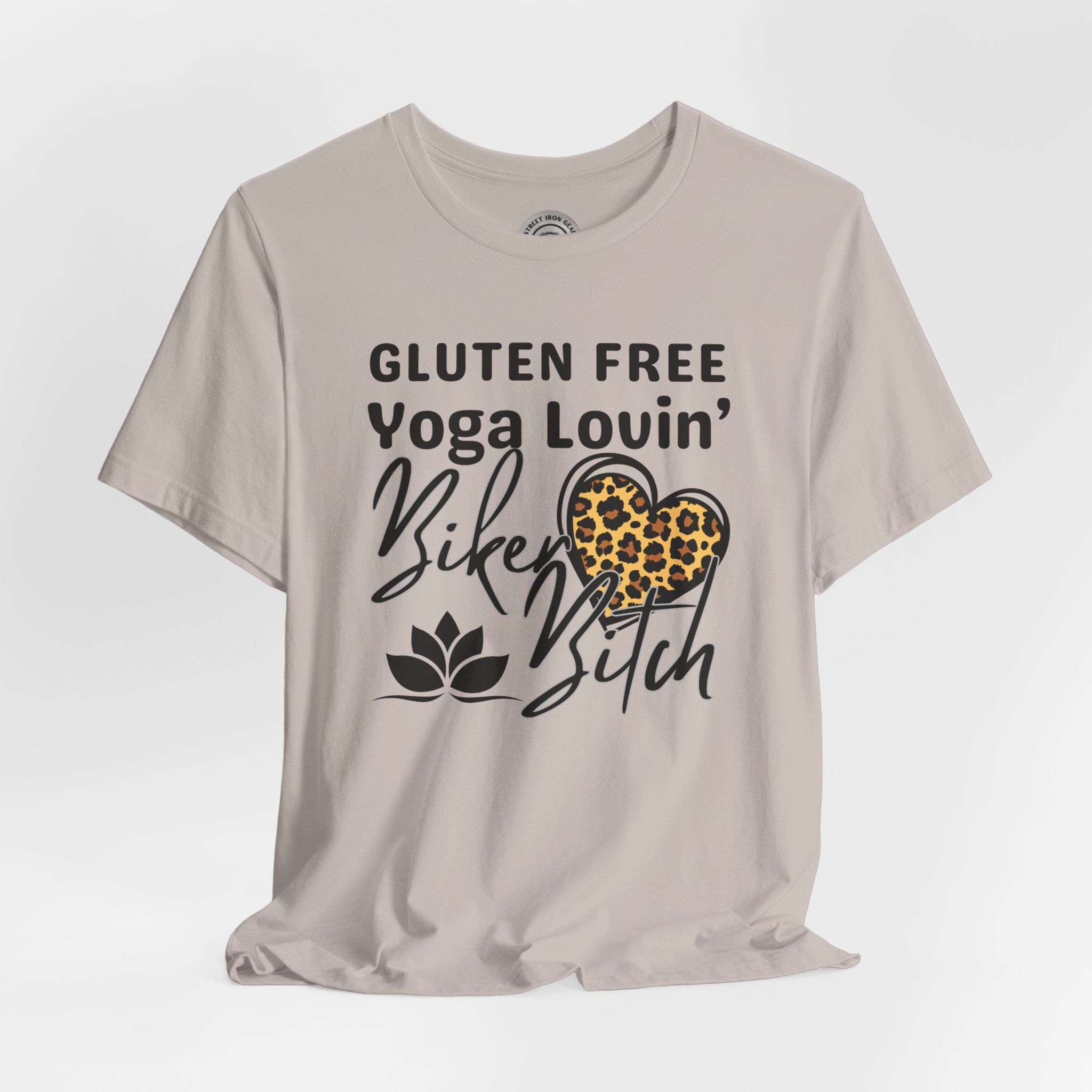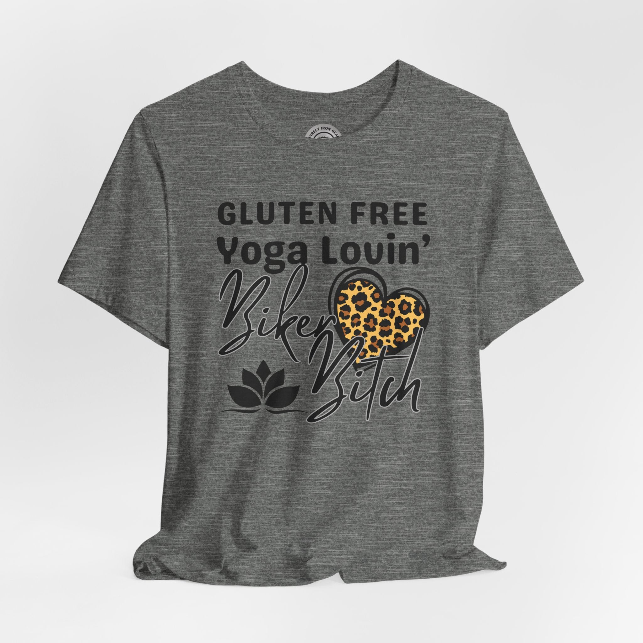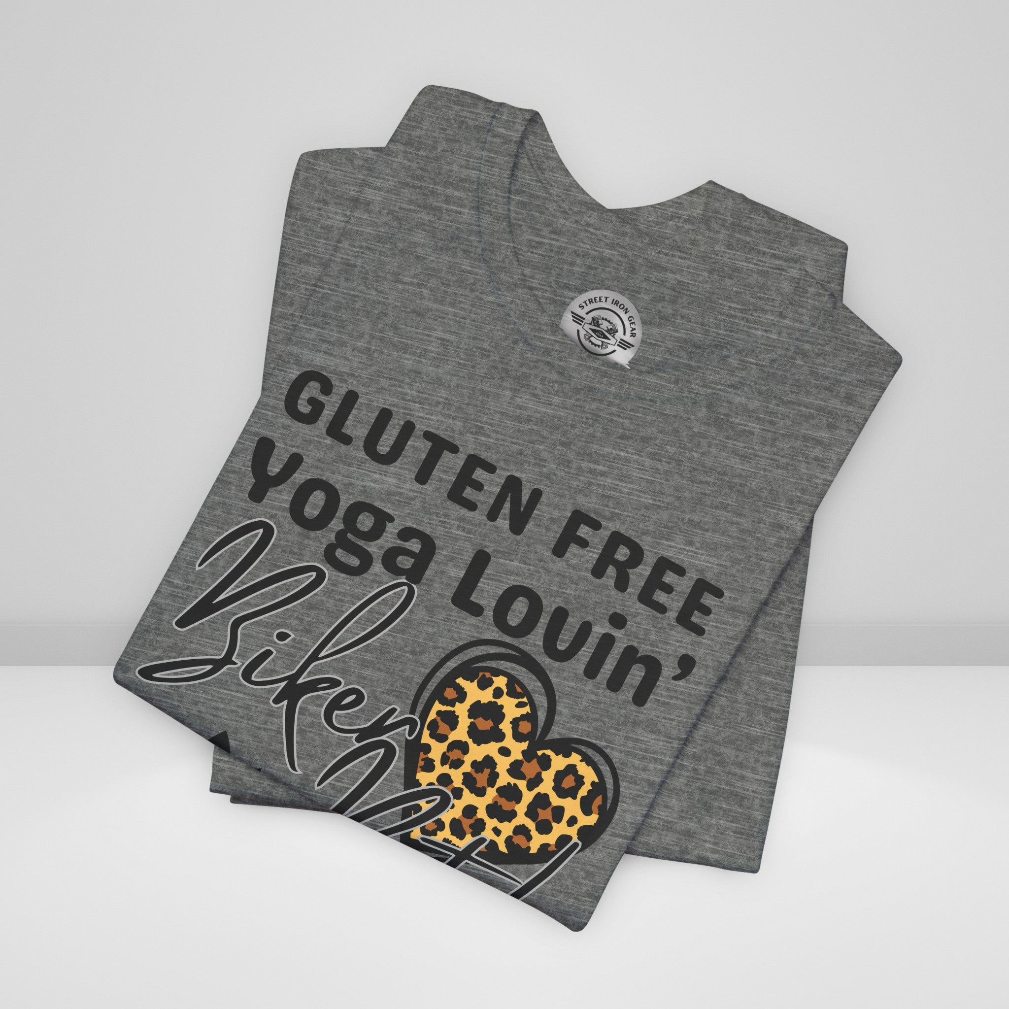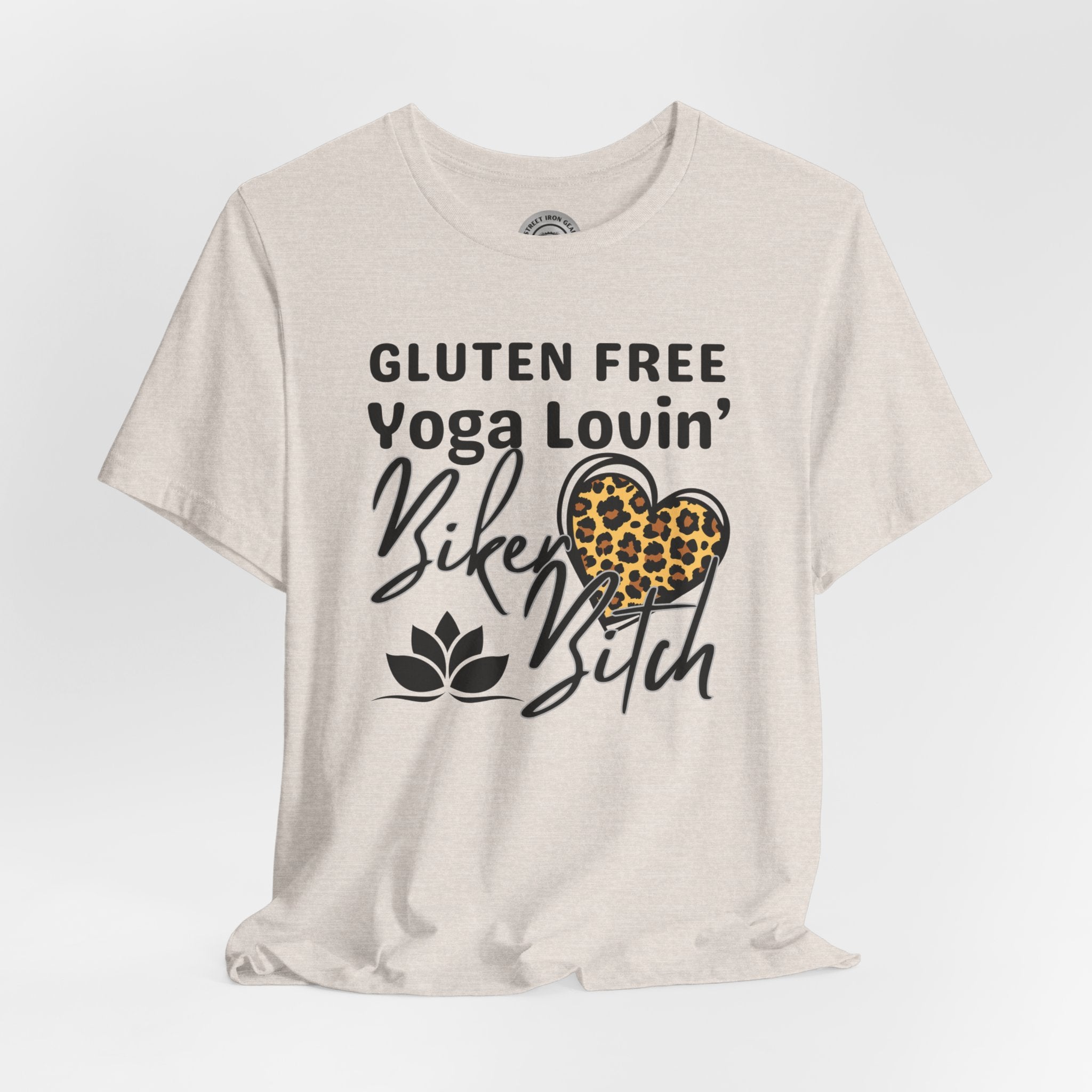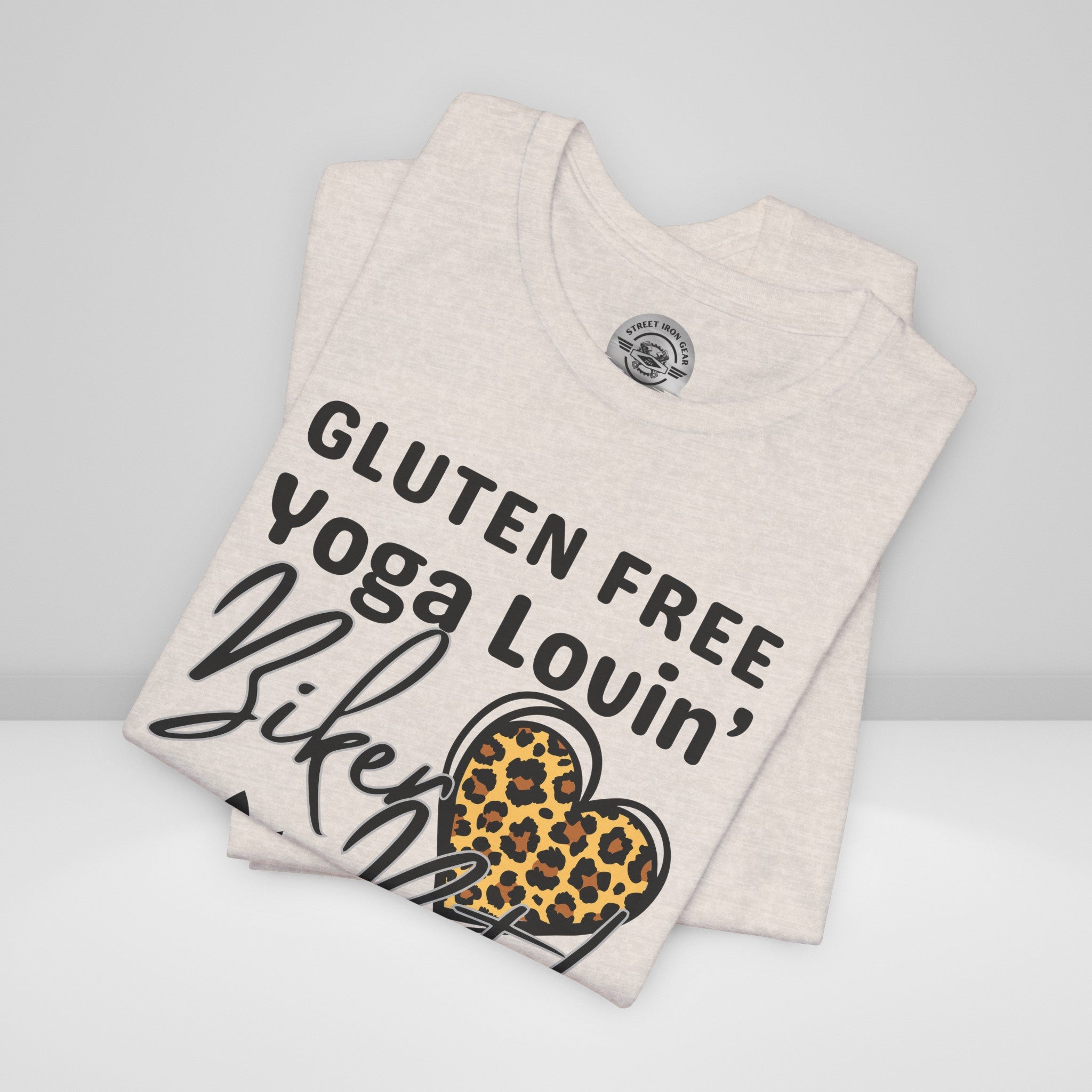 Embrace your unique blend of free-spirited vibes with our Women's Motorcycle Tee. Featuring a striking lotus flower and leopard print boho heart, this shirt celebrates the gluten-free, yoga-loving, and unapologetically adventurous biker spirit.
