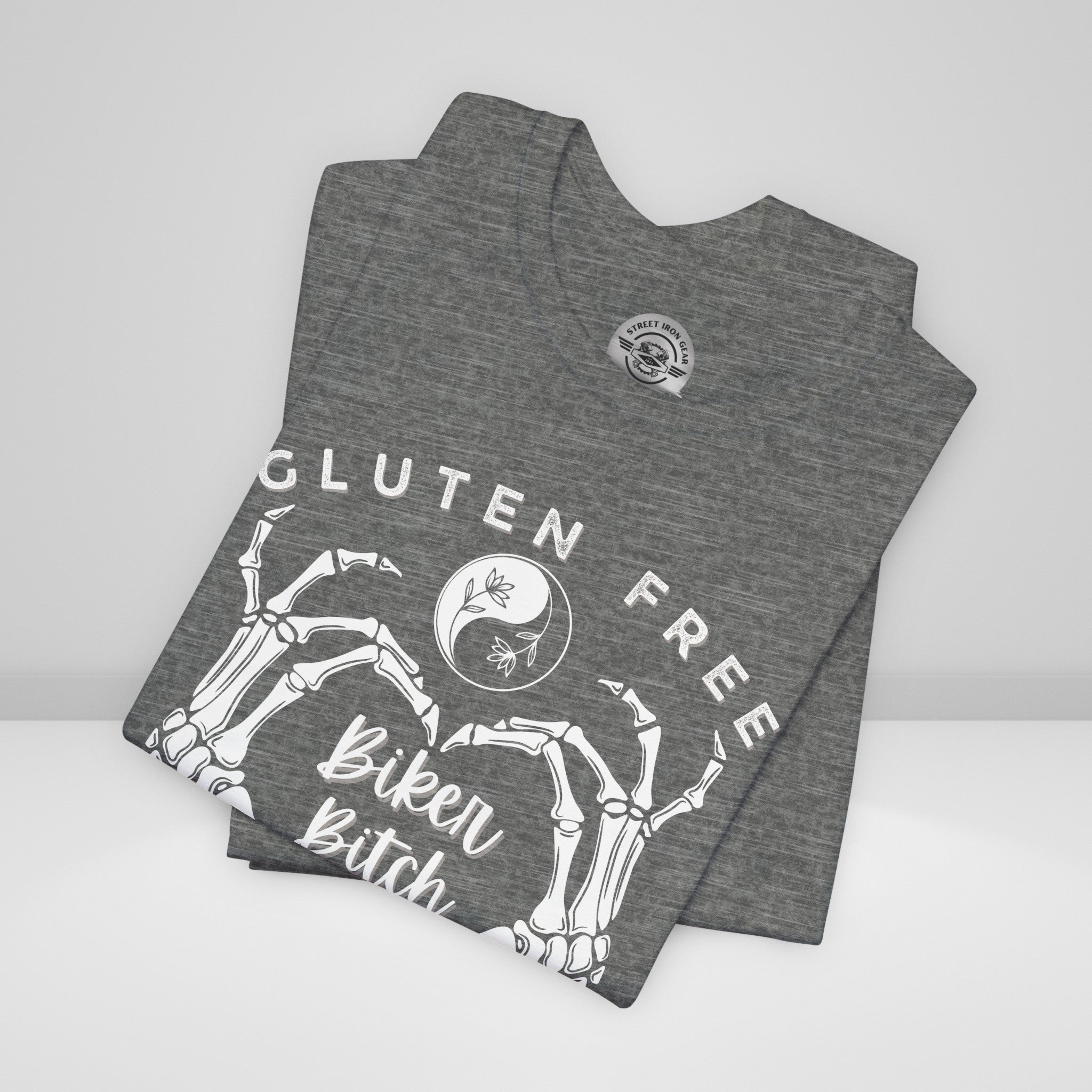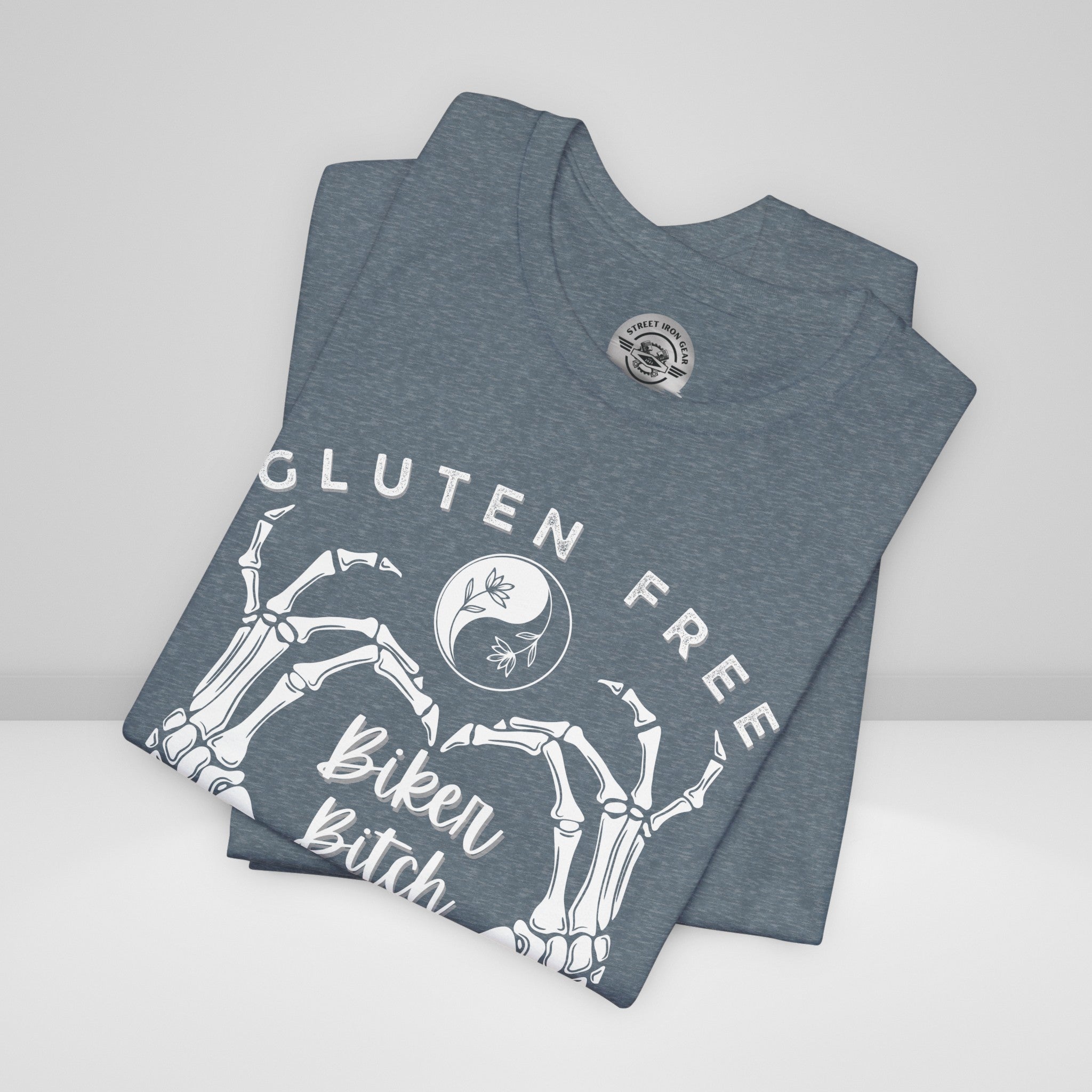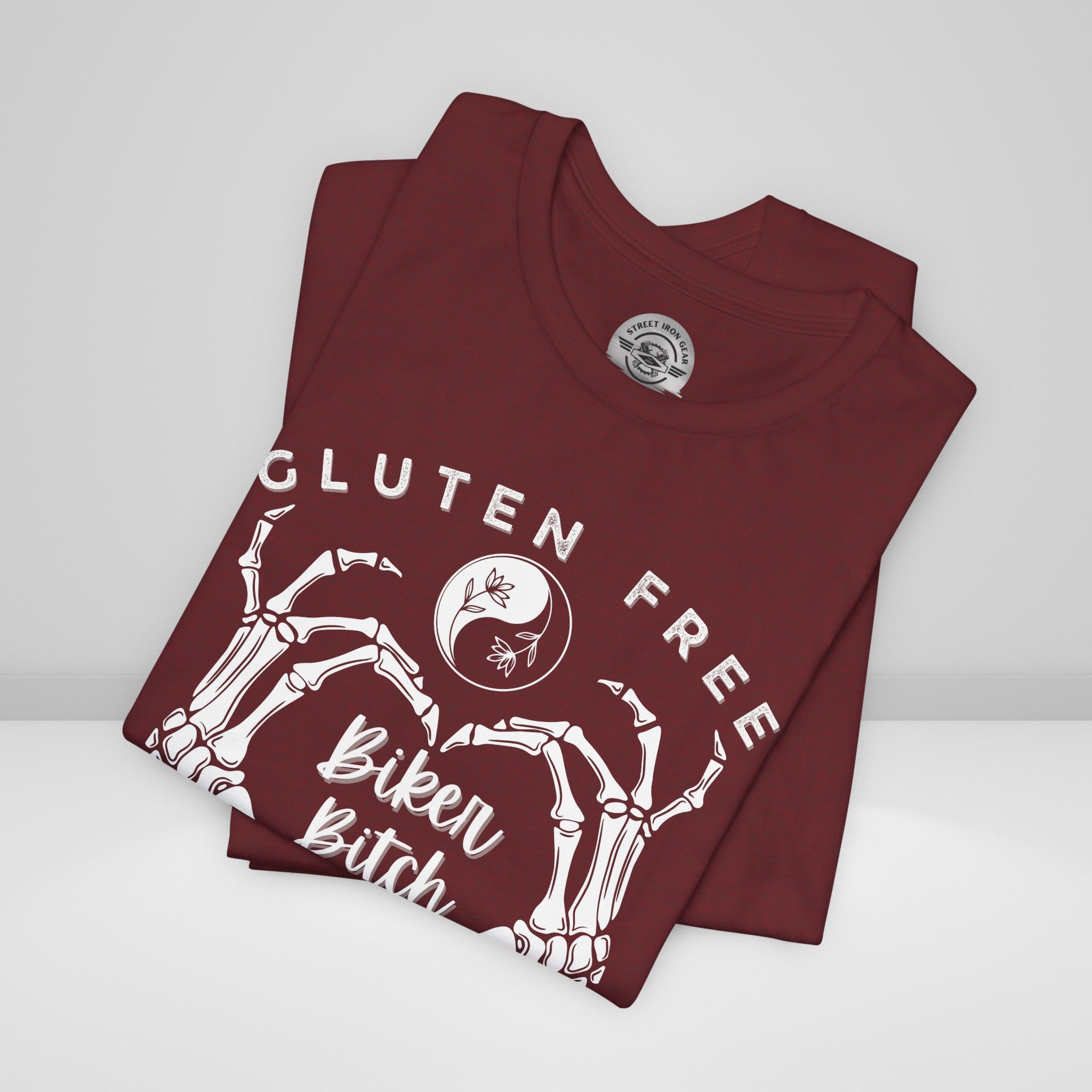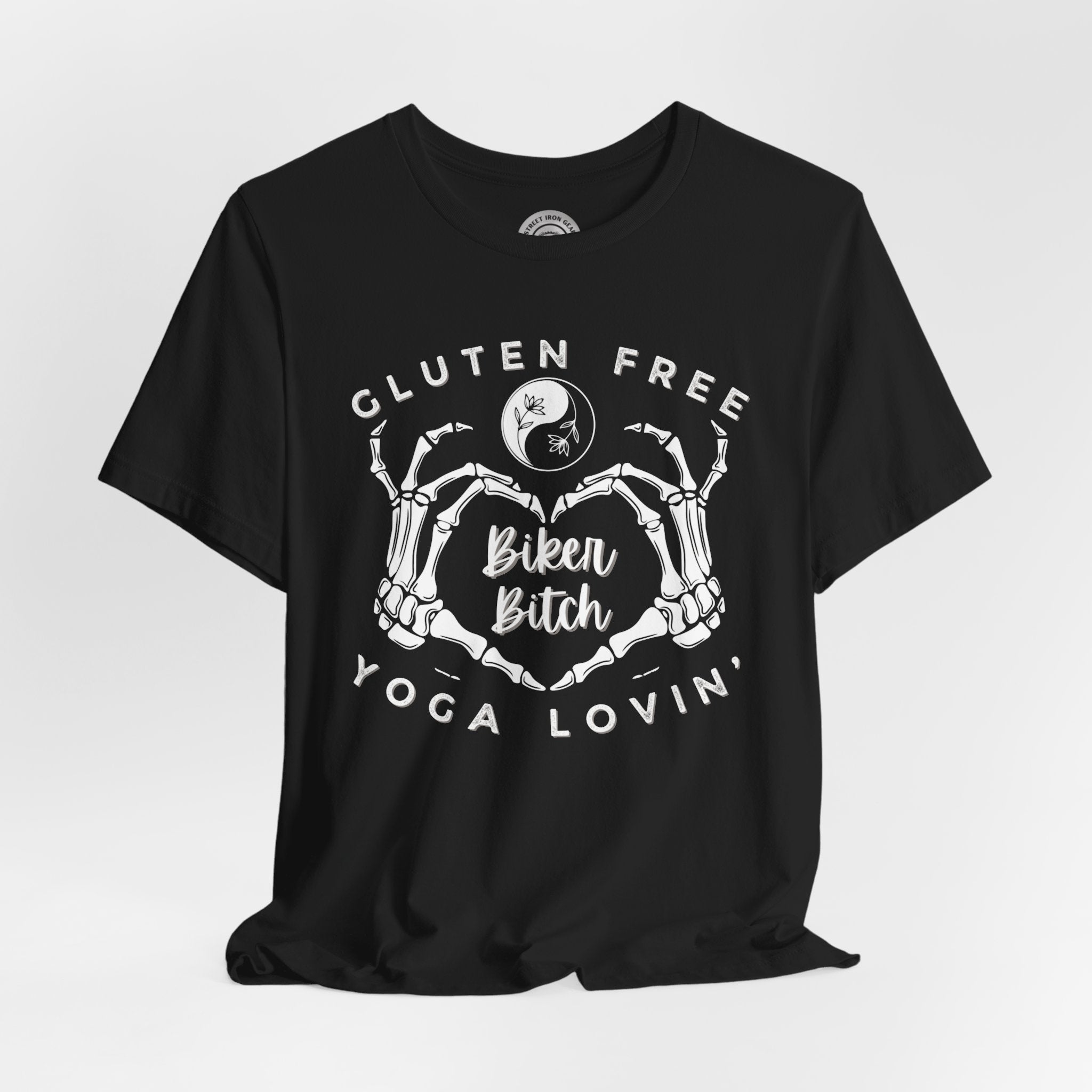 Embrace your unique blend of free-spirited vibes with our Women's Motorcycle Tee. Featuring a skeleton heart, this shirt celebrates the gluten-free, yoga-loving, and unapologetically adventurous biker spirit.