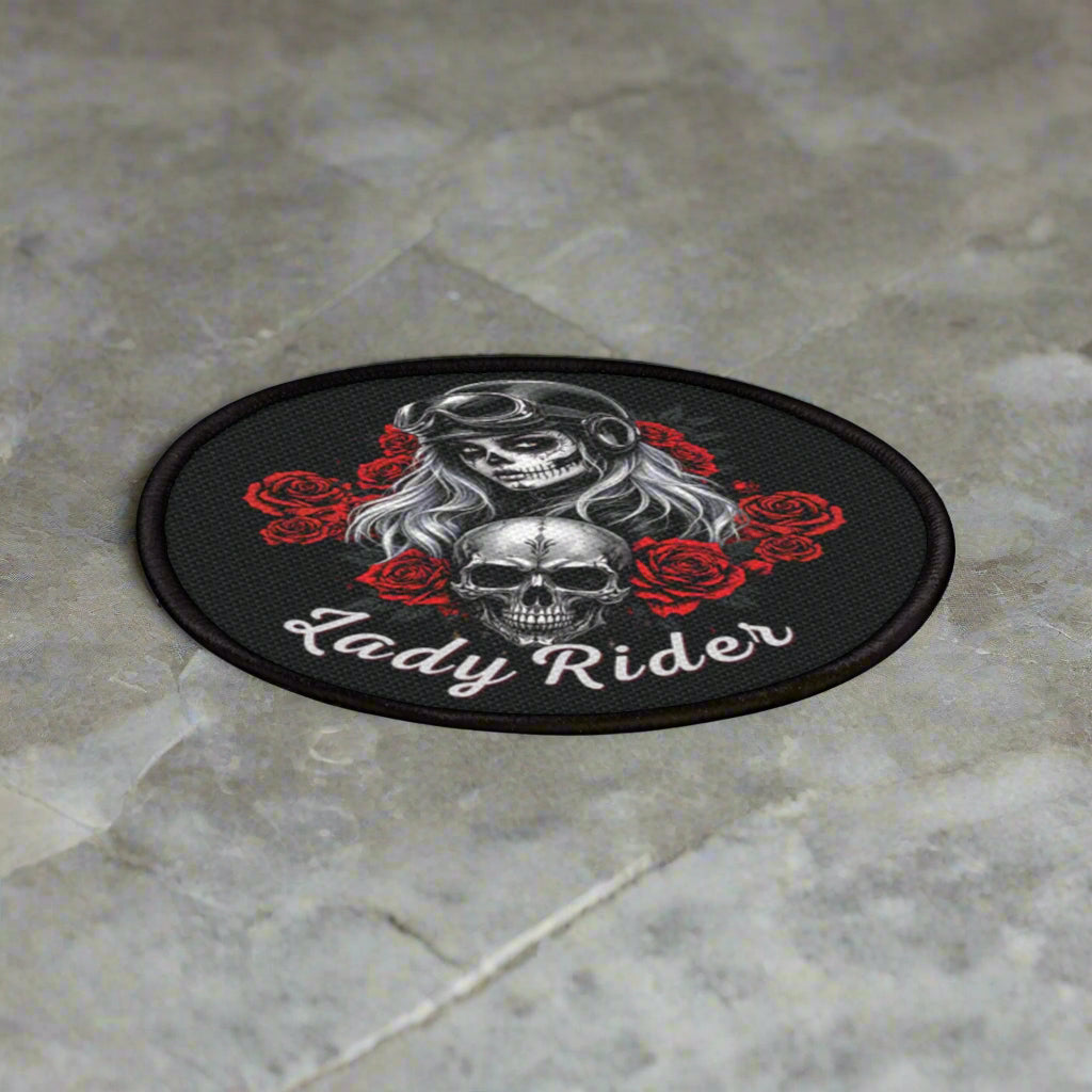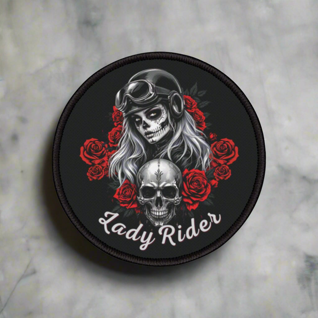 Show off your fierce side with our Lady Rider Biker Patch — designed especially for bold women who ride! This printed biker patch features a stunning biker girl design surrounded by detailed skulls and roses, accented in black, gray, red, and white tones for a classic yet edgy look. Perfect for jackets, vests, or saddlebags, this high-quality motorcycle patch for women is a must-have for any lady who lives for the open road. Whether you're customizing your gear or searching for the perfect gift for a lady rider, this patch makes a powerful statement of strength, freedom, and biker pride.