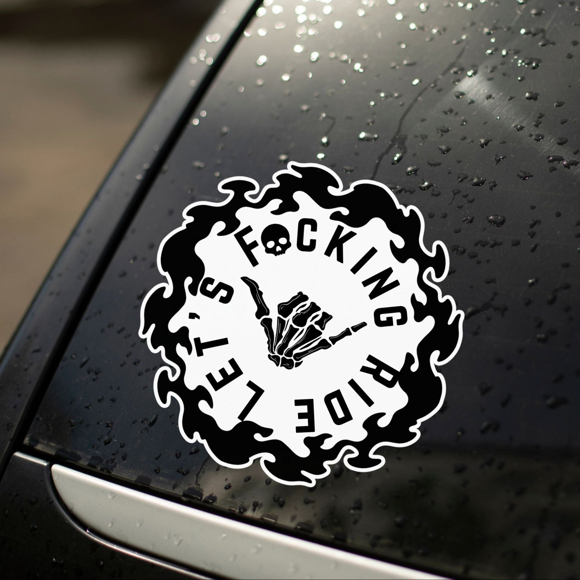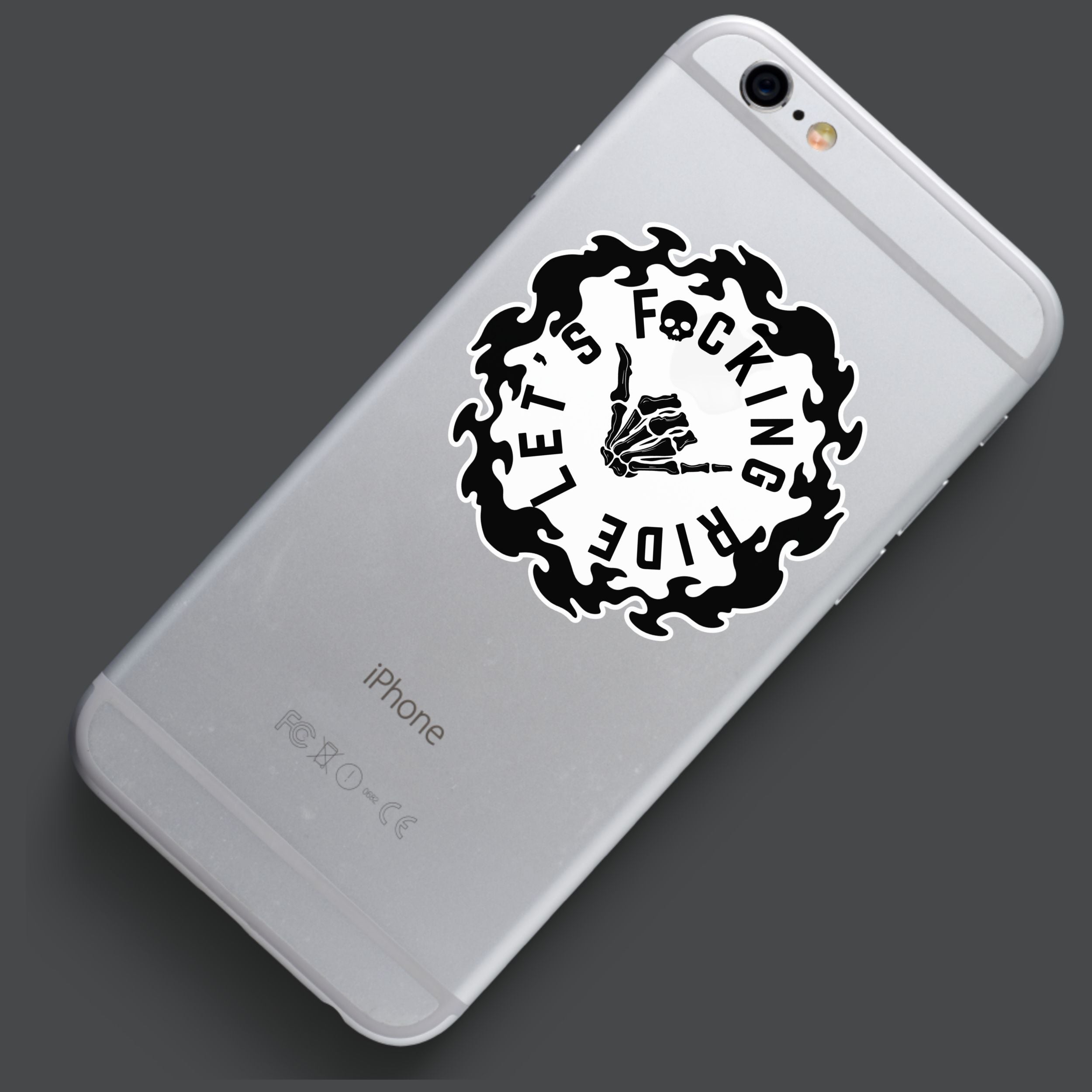 Unleash your inner rebel with our Kiss-Cut Motorcycle Decal, a bold, black and white design featuring a flaming circle, a fierce skull, and a skeleton hand making the iconic hang loose gesture. The edgy, circular text sends a clear message, perfect for riders who live life on their own terms. Available in multiple sizes, this versatile decal is perfect for your motorcycle helmet, bike luggage, mobile phone, laptop, or vehicle, adding a touch of attitude wherever you place it. Whether you’re customizing your gear or looking for the perfect gift for a biker, this premium-quality decal is a must-have design.