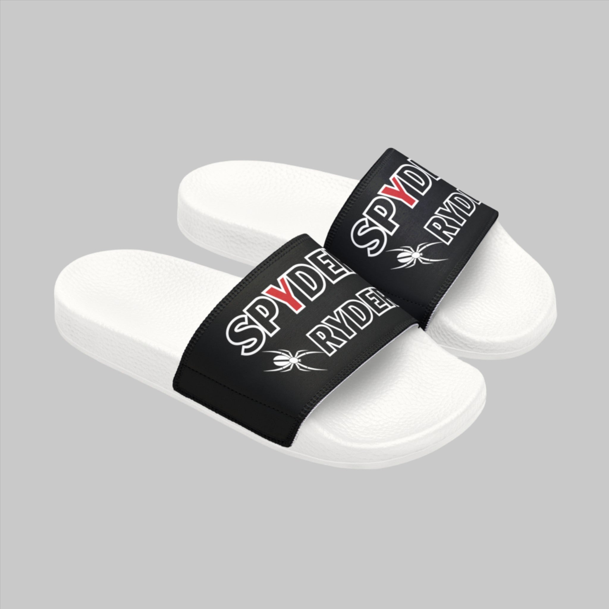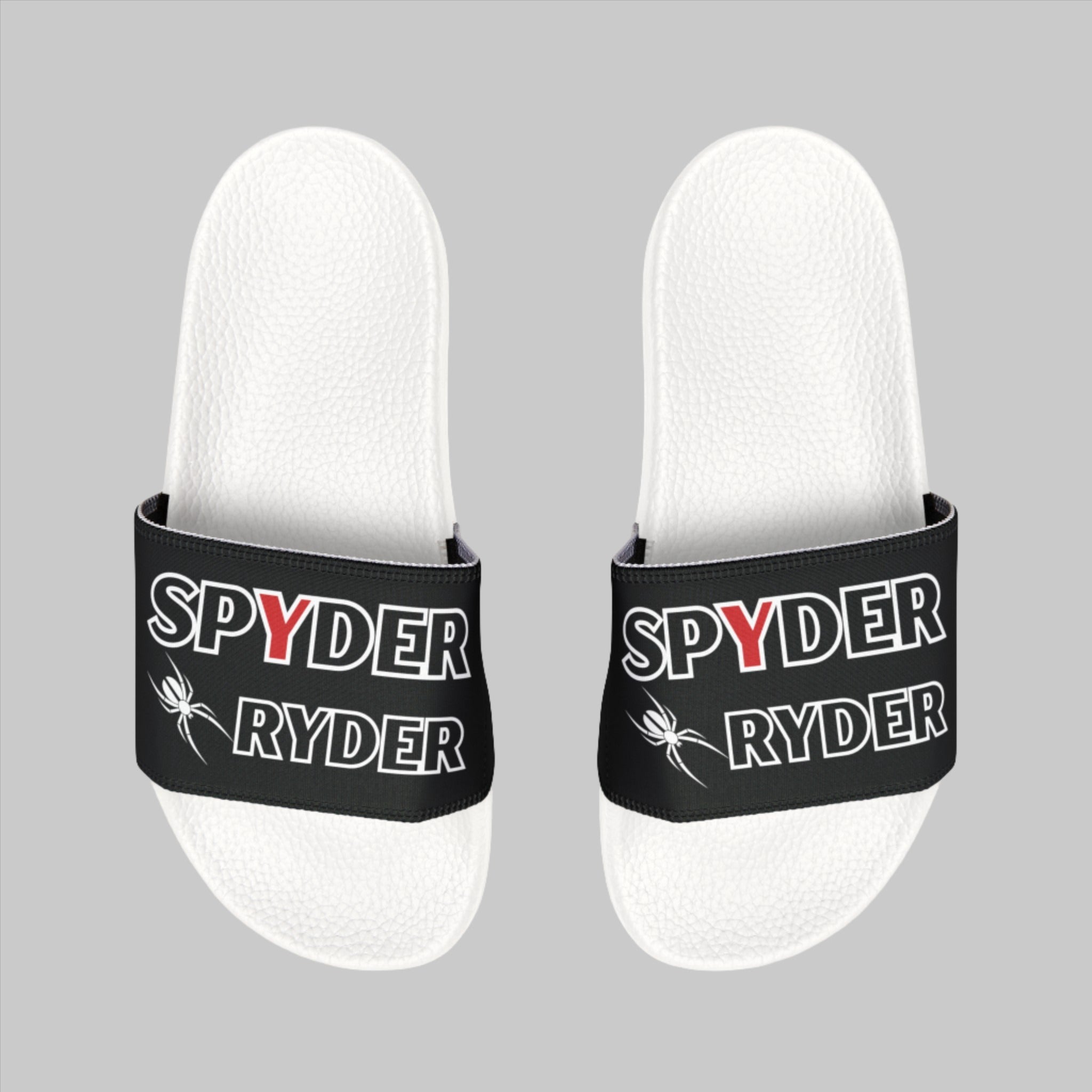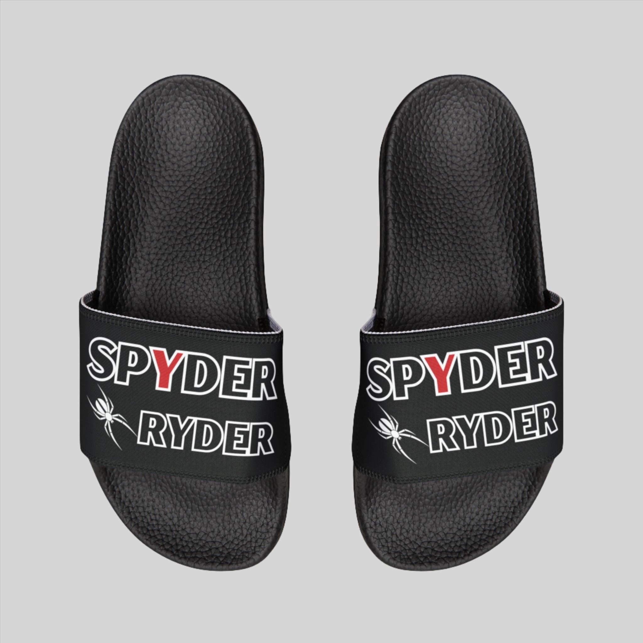 Celebrate your love for the open road with these stylish slider shoes, featuring a monochrome graphic inspired by the Can-Am Spyder including text that reads "Spyder Ryder". Designed for ultimate comfort and durability, these sliders echo the luxury of the Can-Am Spyder RT Sea-to-Sky and the rugged design of the Can-Am Ryker Rally. Perfect for enthusiasts, they symbolize the distinctive look of the Can-Am Spyder F3 Limited and F3-T.