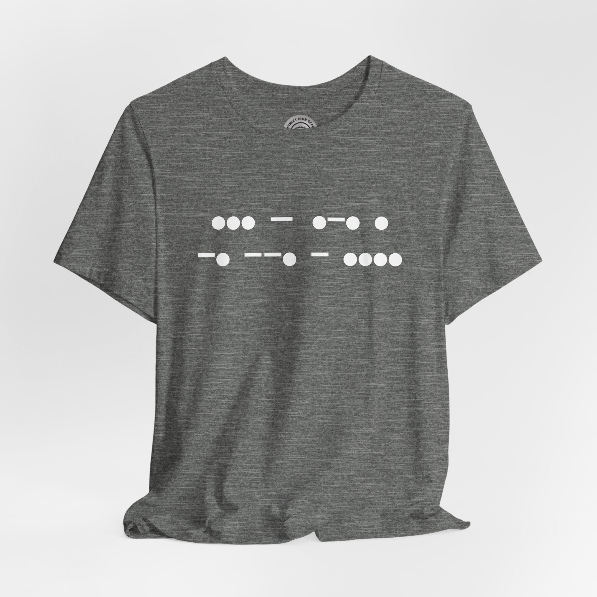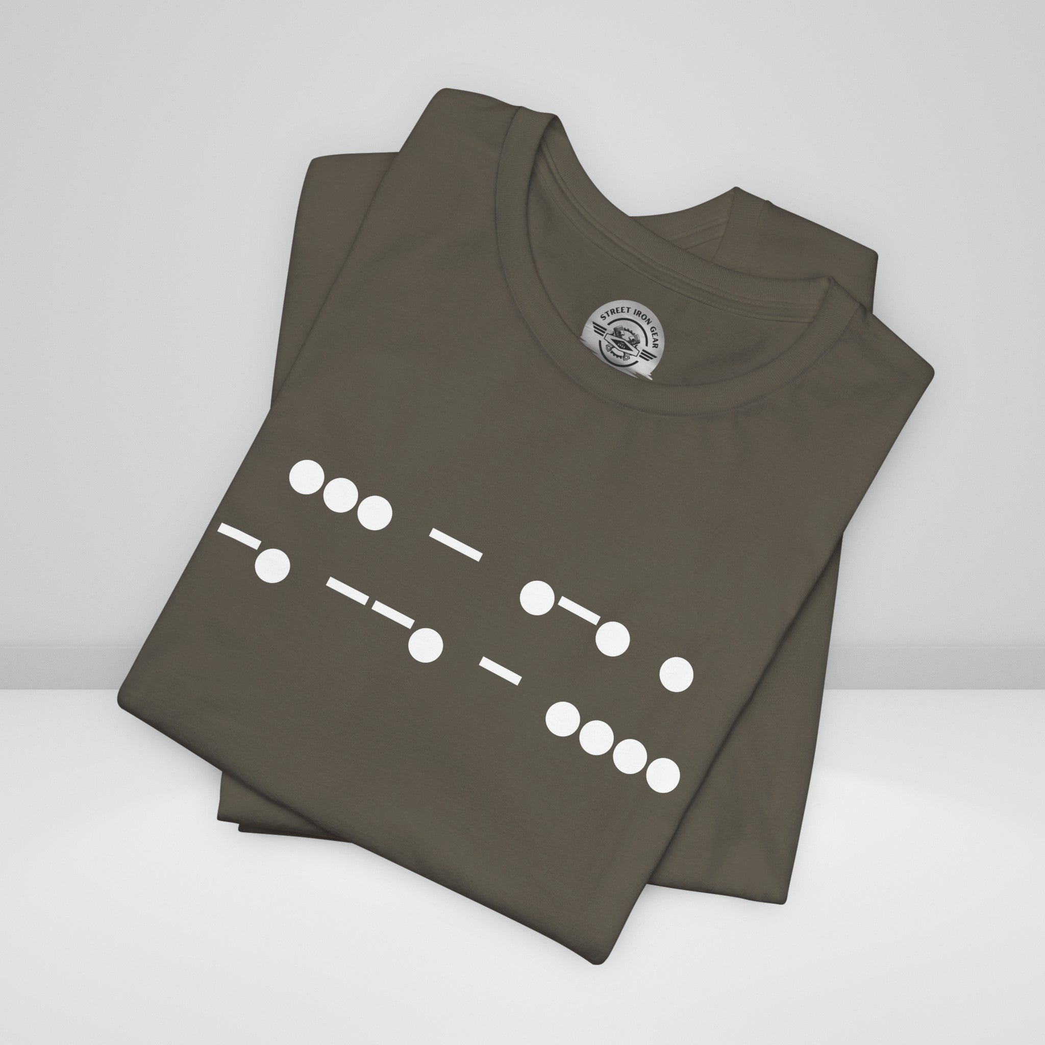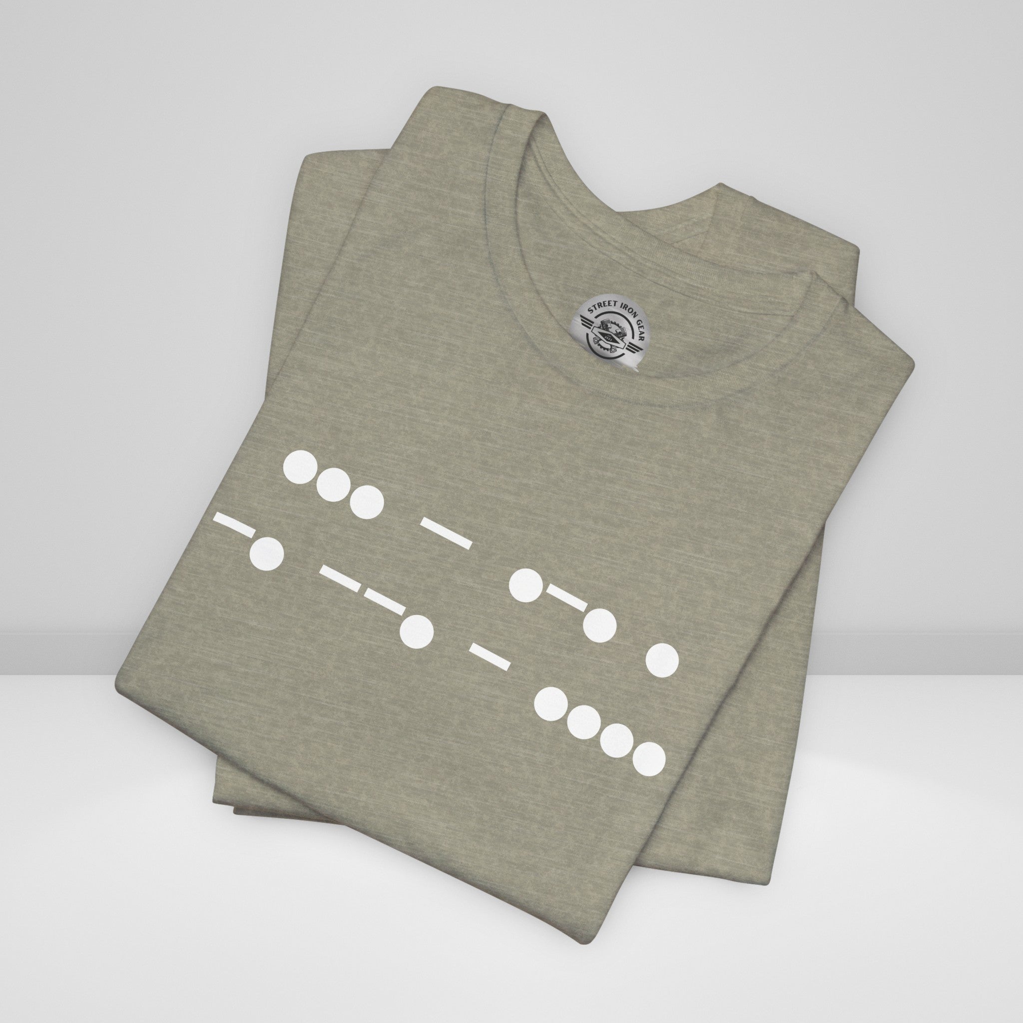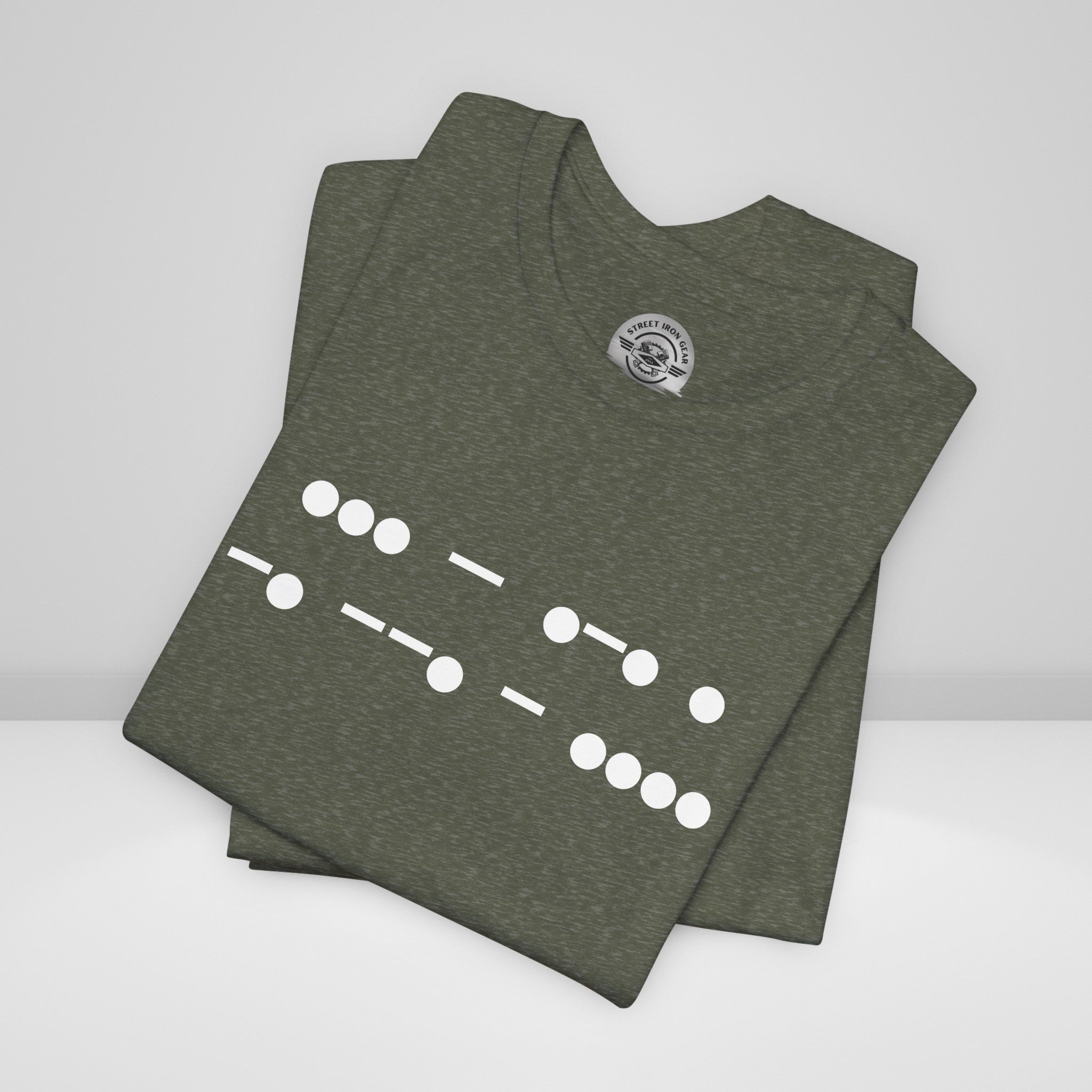 Elevate your style with our 'Strength' Morse Code T-shirt. This isn't just a shirt; it's a message of resilience and determination. Ideal for dads and husbands, this Inspirational Shirt conveys a powerful message, making it a perfect choice for military husbands and cancer survivors. Give the gift of strength and inspiration.