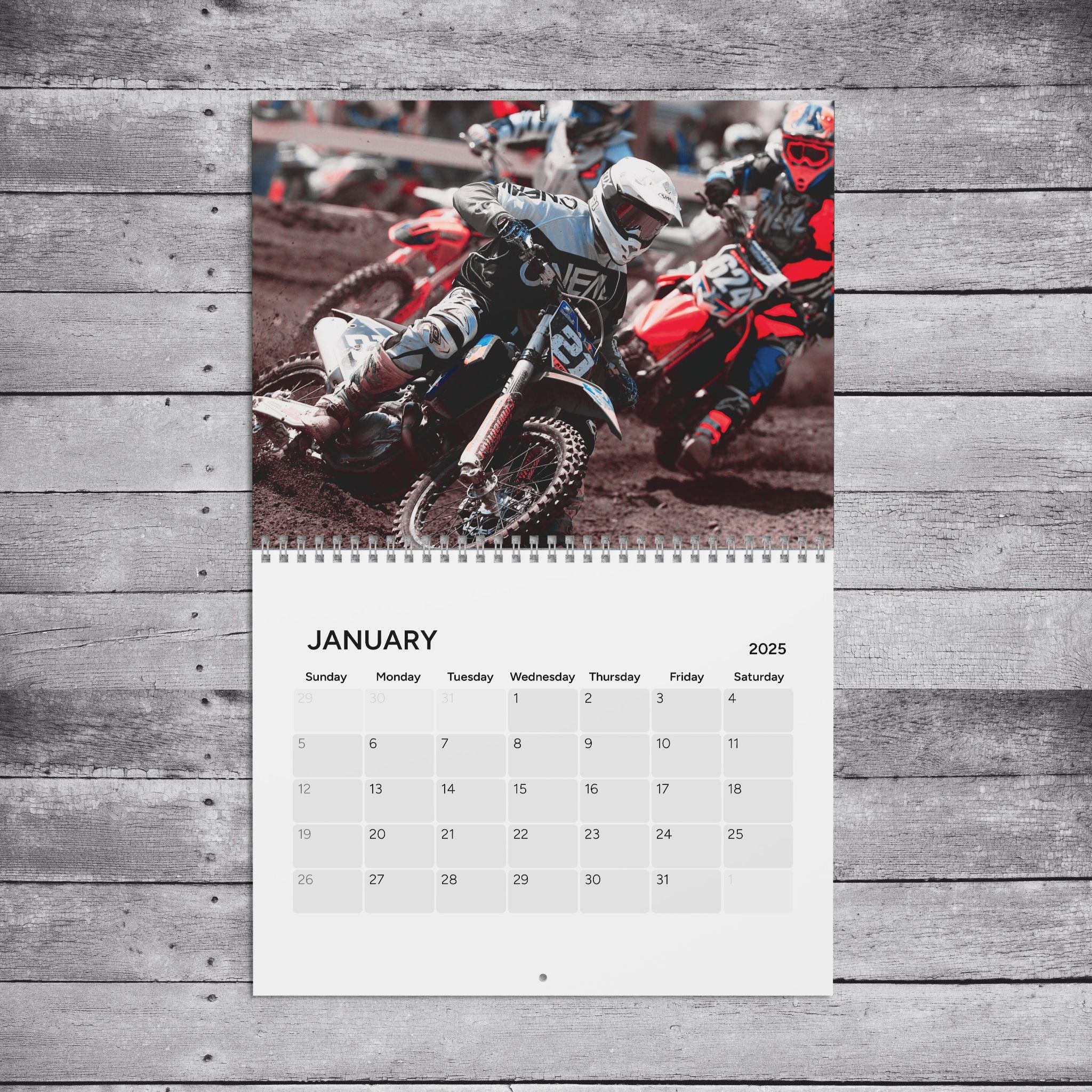 Rev up your year with our 2025 Motocross Wall Calendar, featuring action-packed images that capture the thrill and excitement of motocross racing! Perfect for motocross enthusiasts, this high-quality calendar showcases stunning photography of riders tackling jumps, dirt tracks, and high-speed turns. With ample space for notes and a sleek design, it's not just a functional calendar but also a striking piece of wall decor. Whether you’re a fan or looking for the perfect motocross gift, this calendar is a must-have for every dirt bike lover.